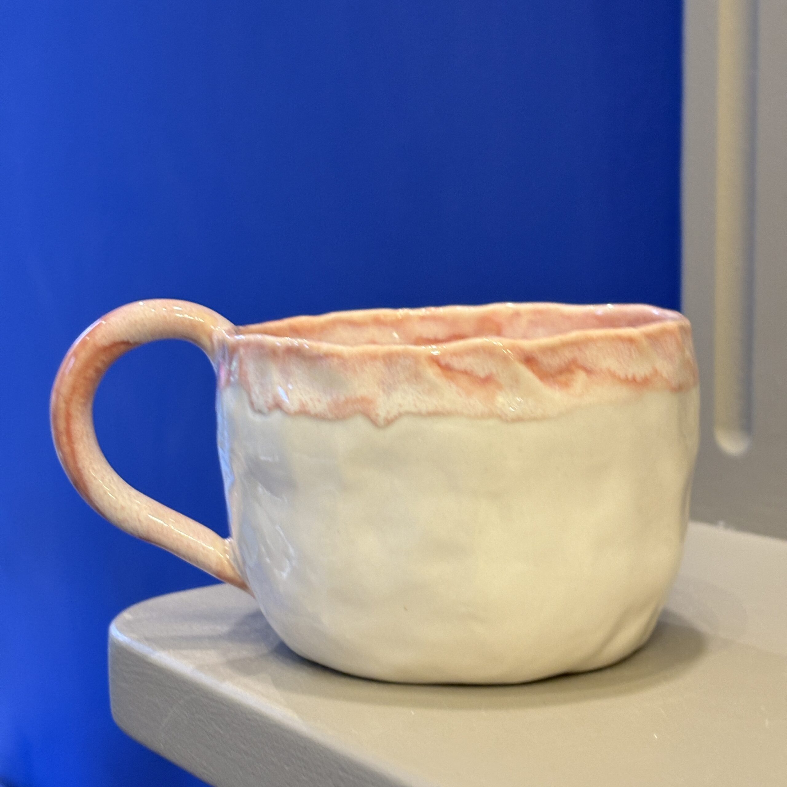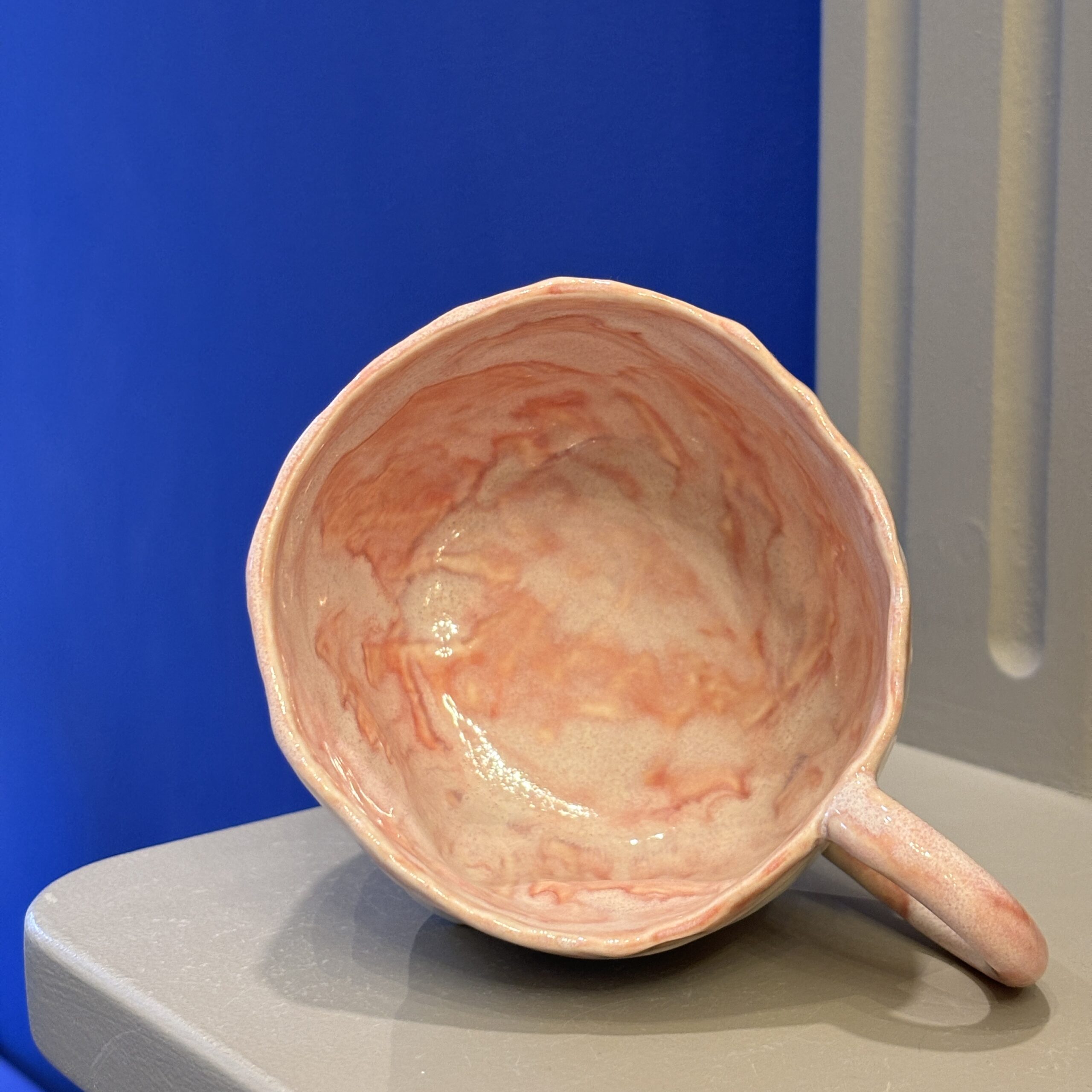 Koppen er håndlavet i porcelæn og dekoreret med glasur.