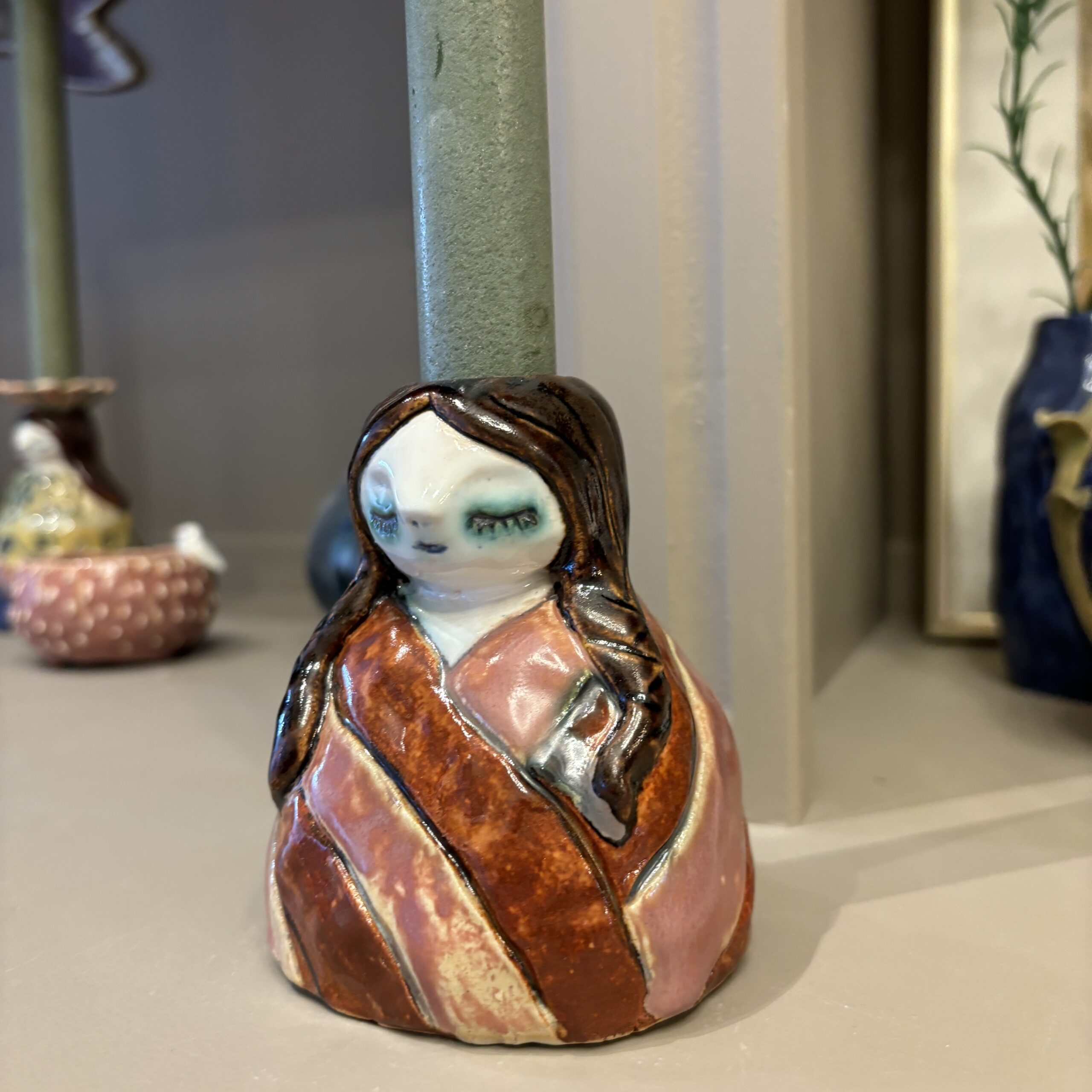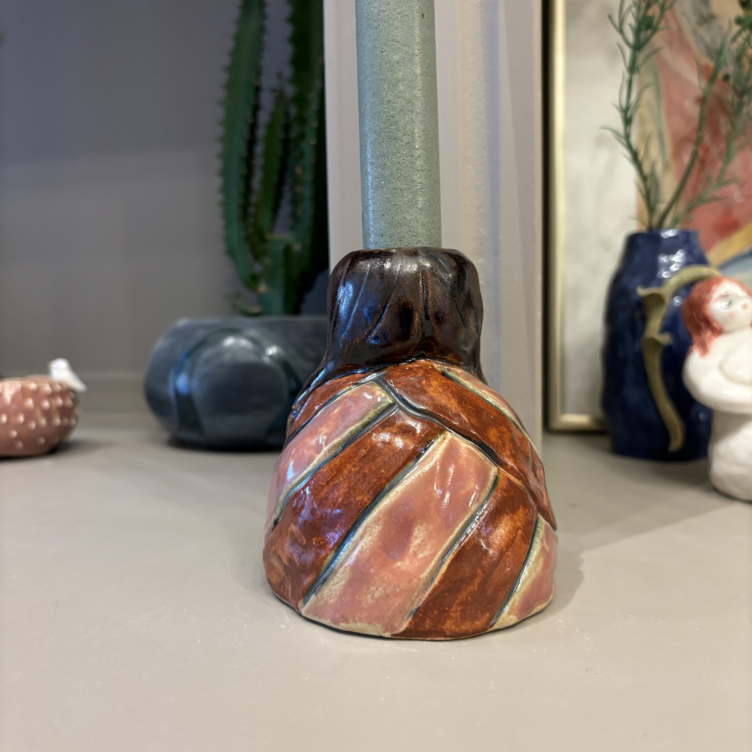 Figuren er håndmodelleret og dekoreret med glasur.