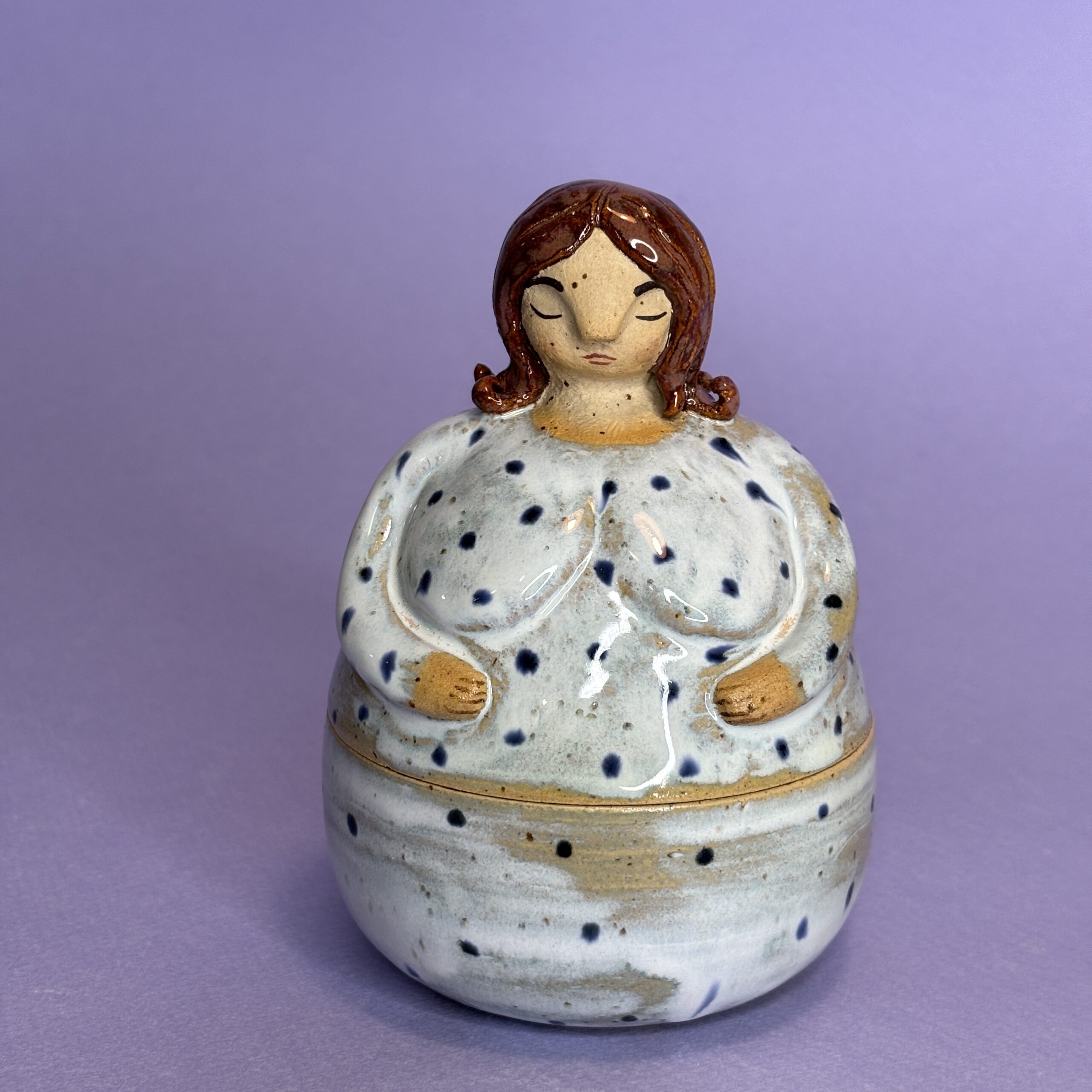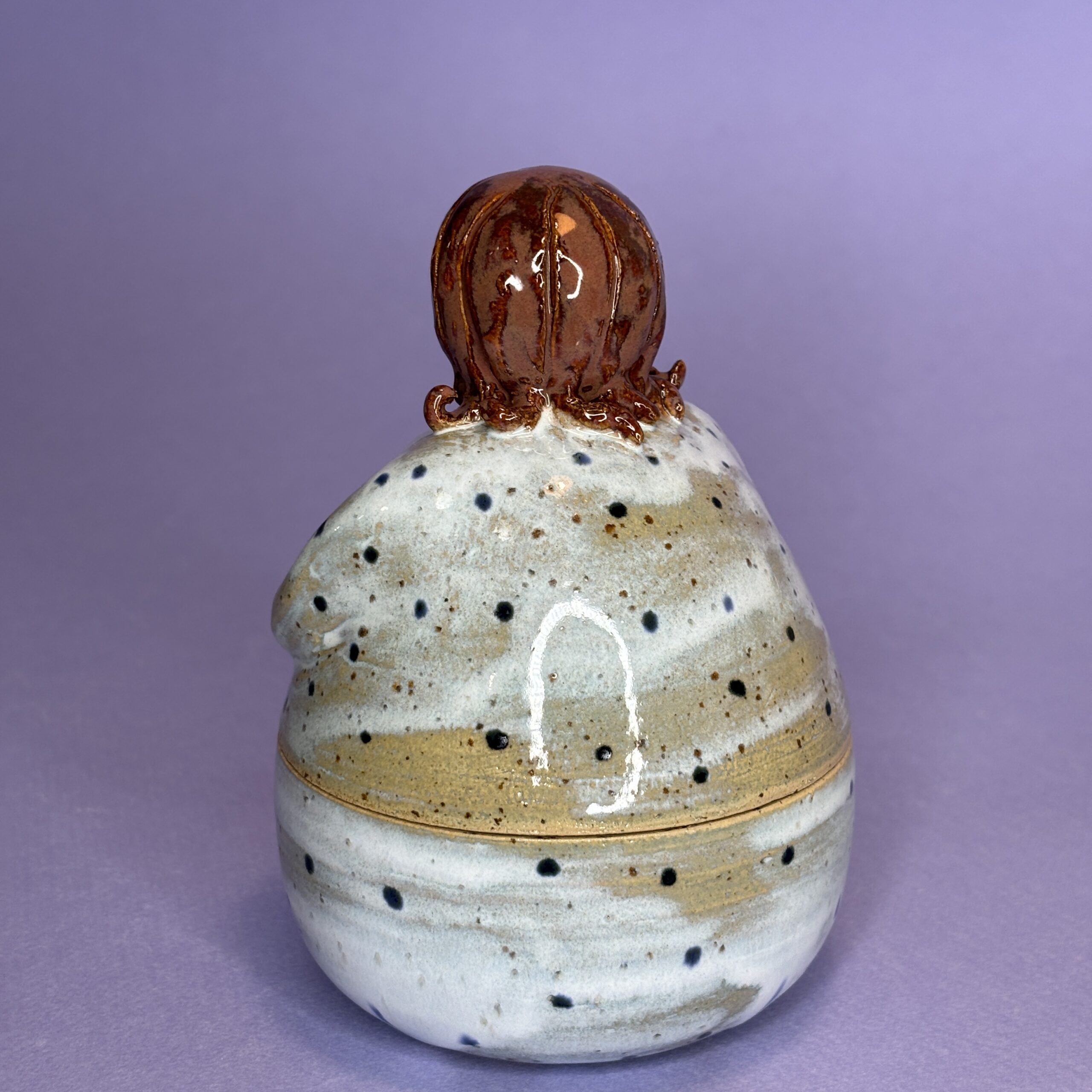 Hånddrejet lågkrukke i stentøjsler.
