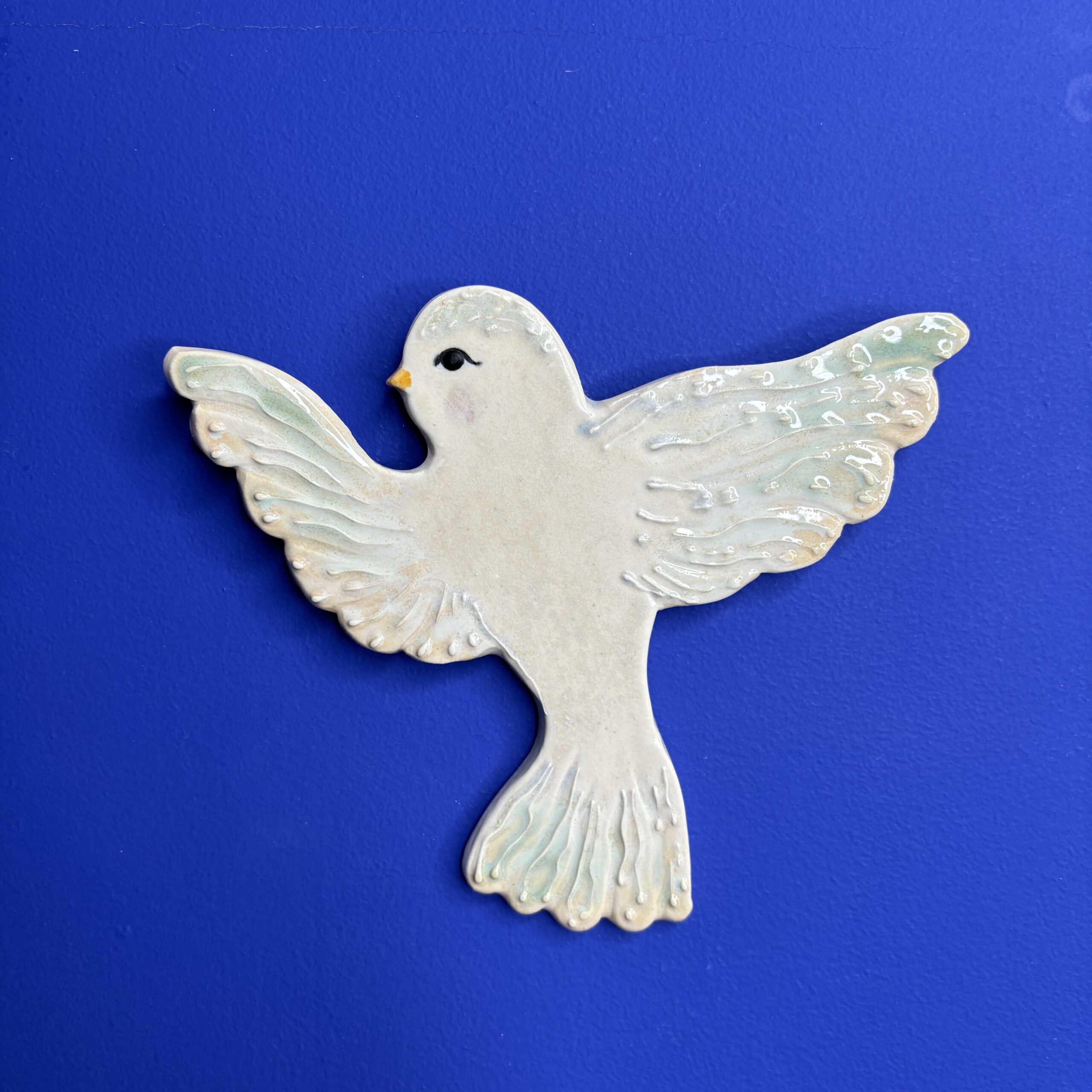 Sød keramik fugl i fine glasurer. Hæng den på væggen sammen med billeder og andet kunst.