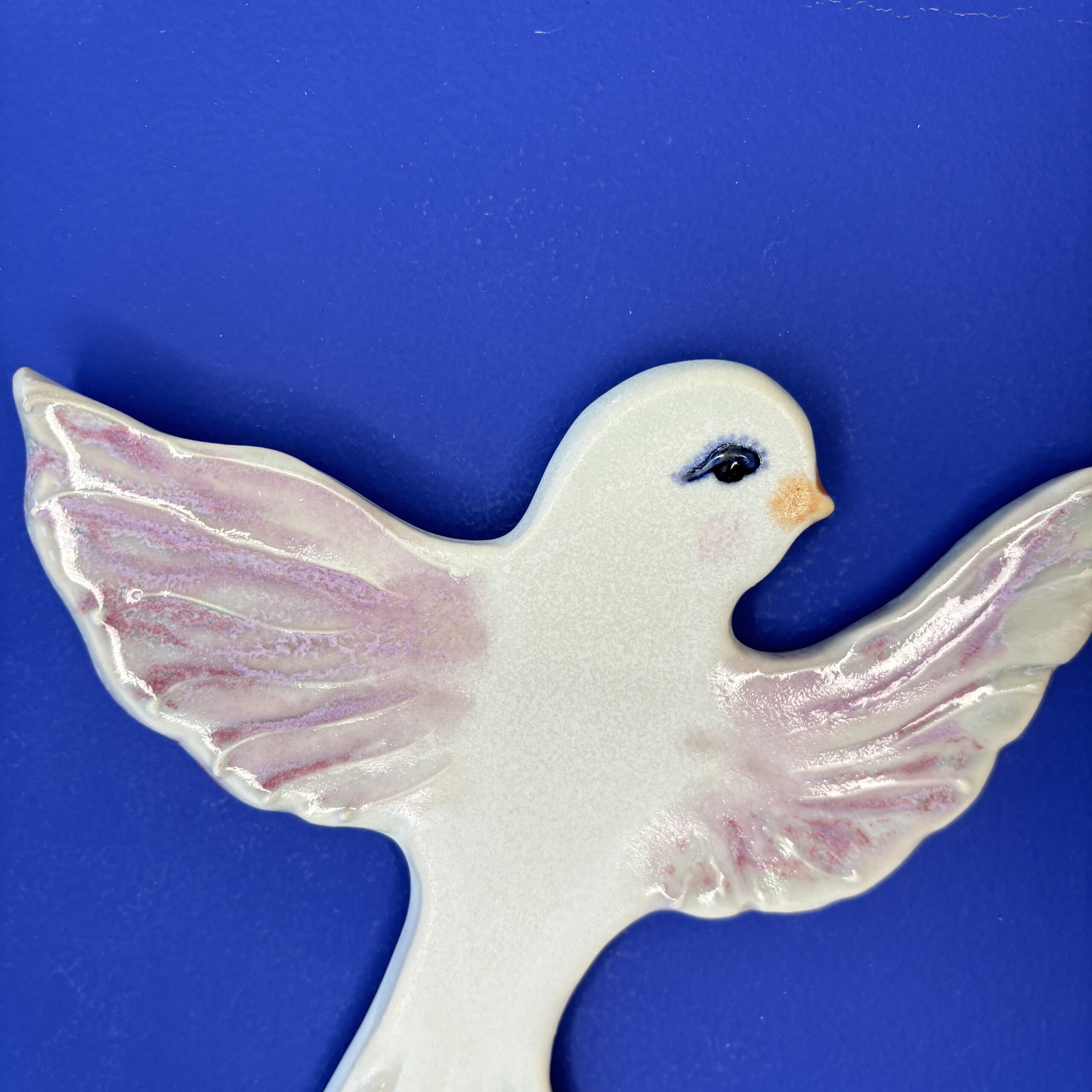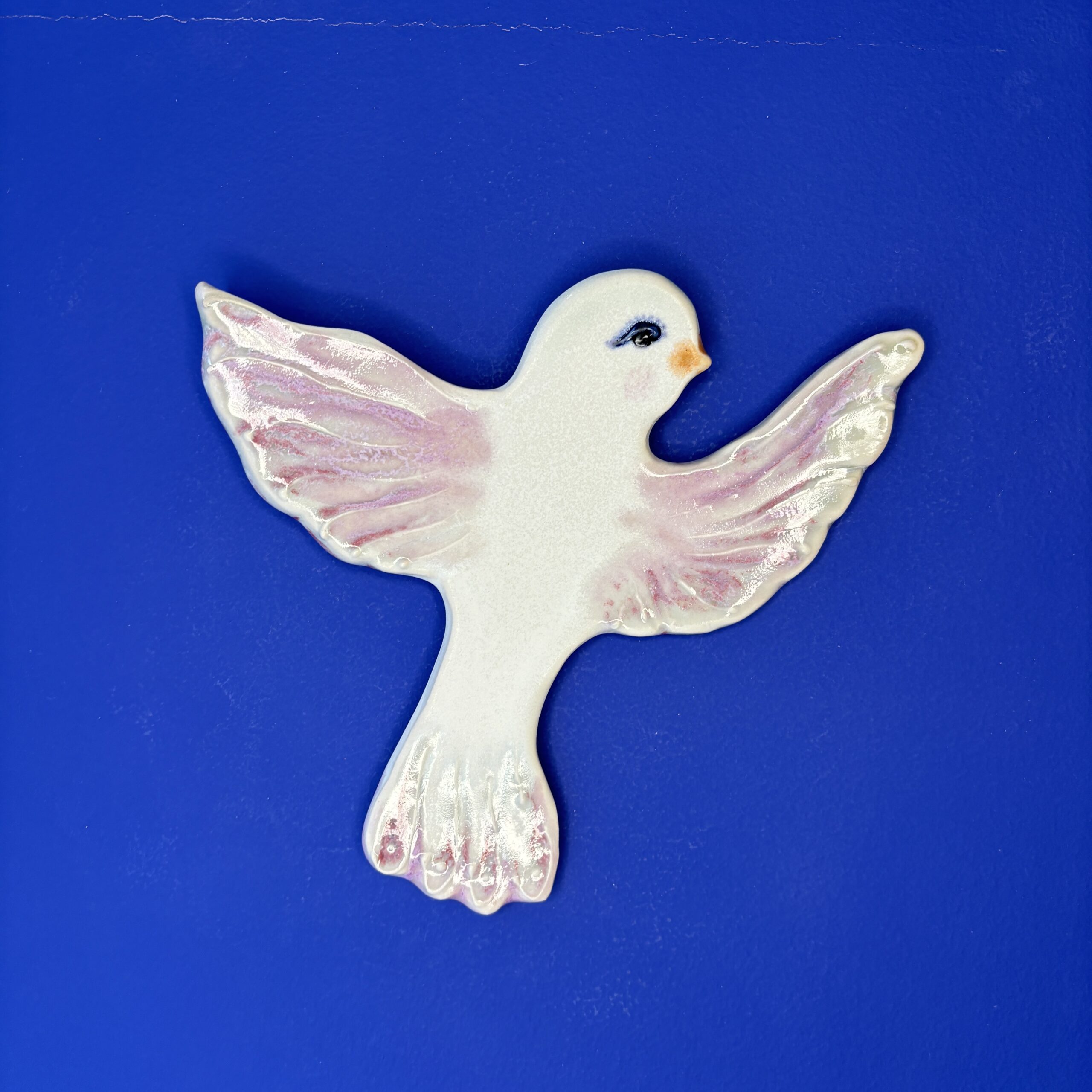 Sød keramik fugl i fine glasurer. Hæng den på væggen sammen med billeder og andet kunst.