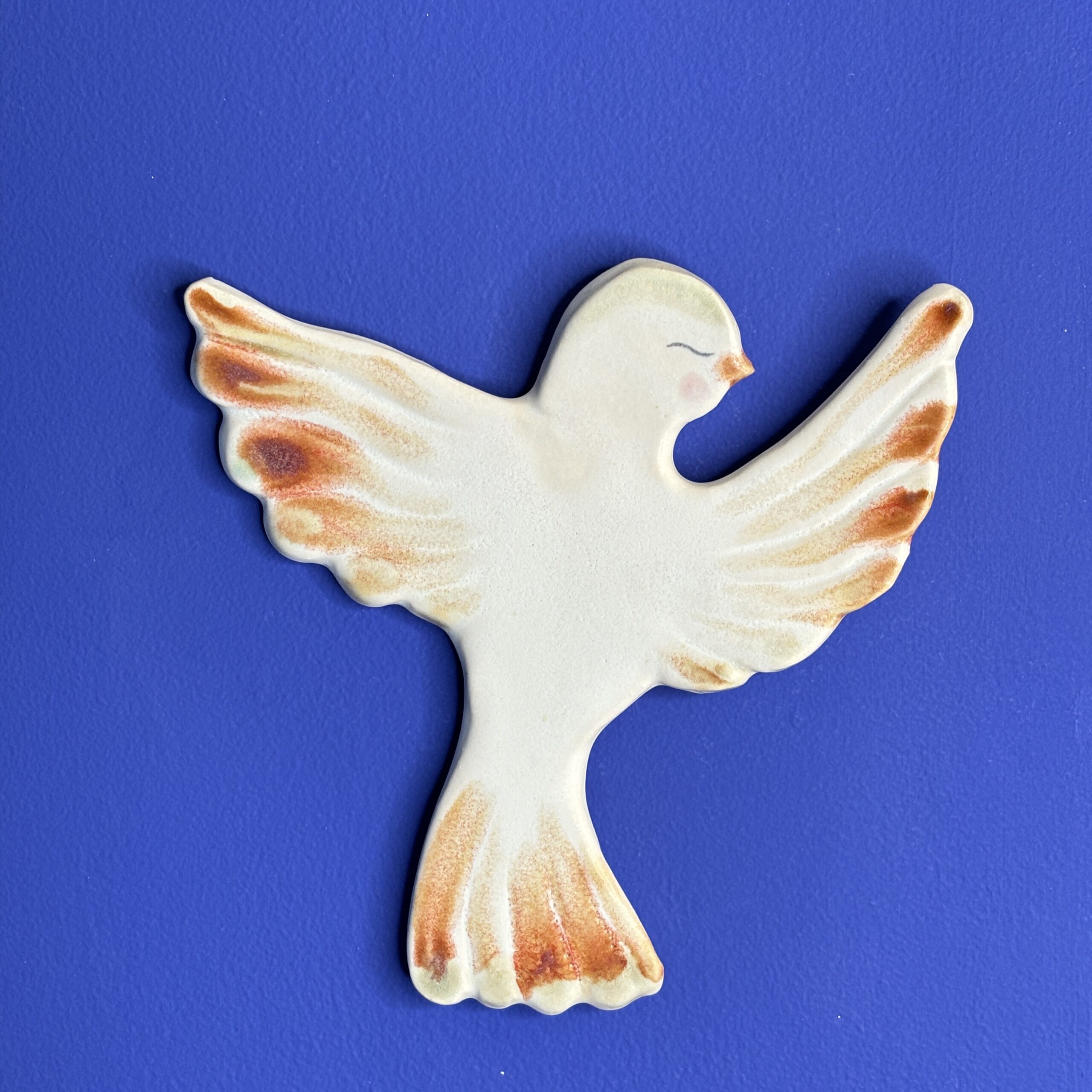 Sød keramik fugl i fine glasurer. Hæng den på væggen sammen med billeder og andet kunst.