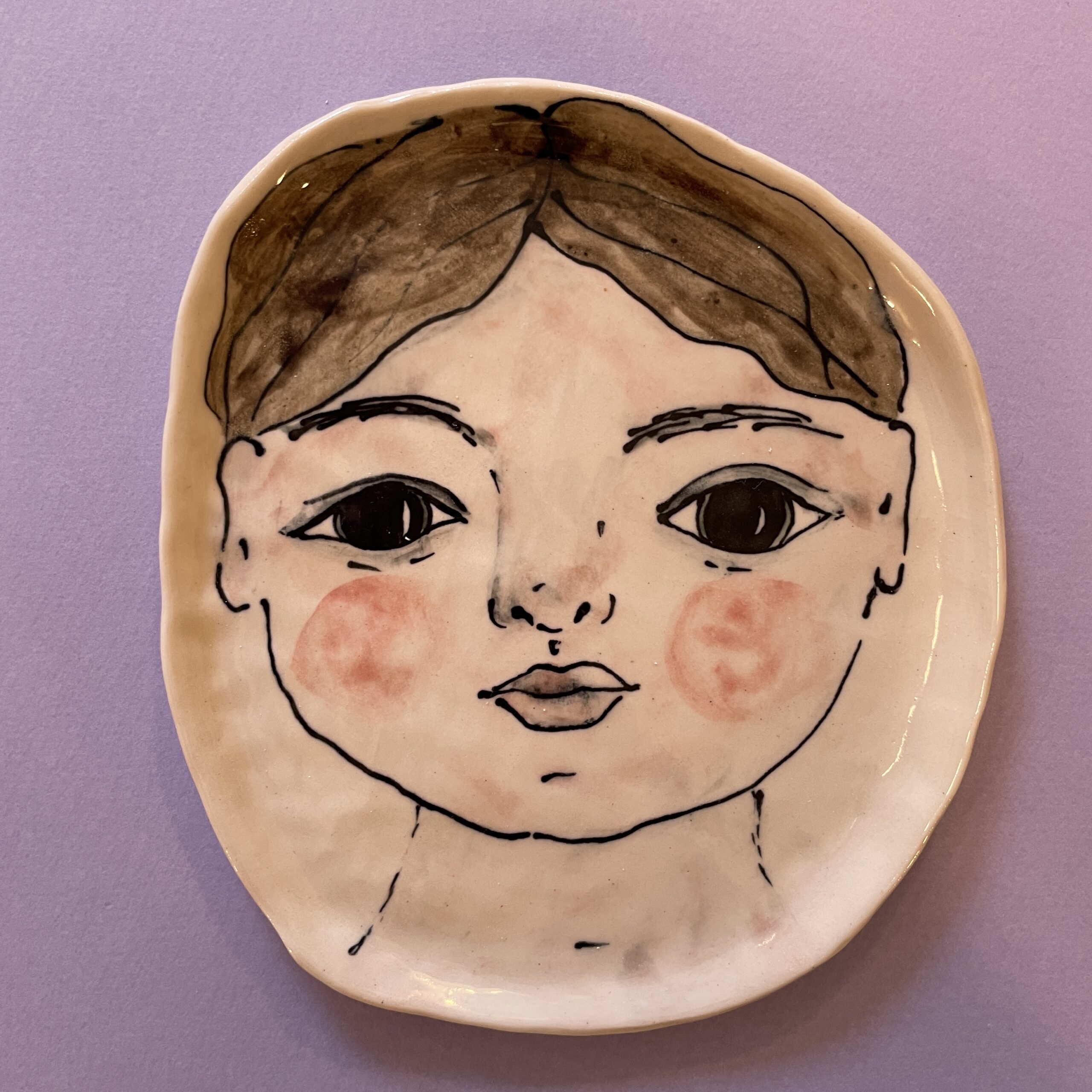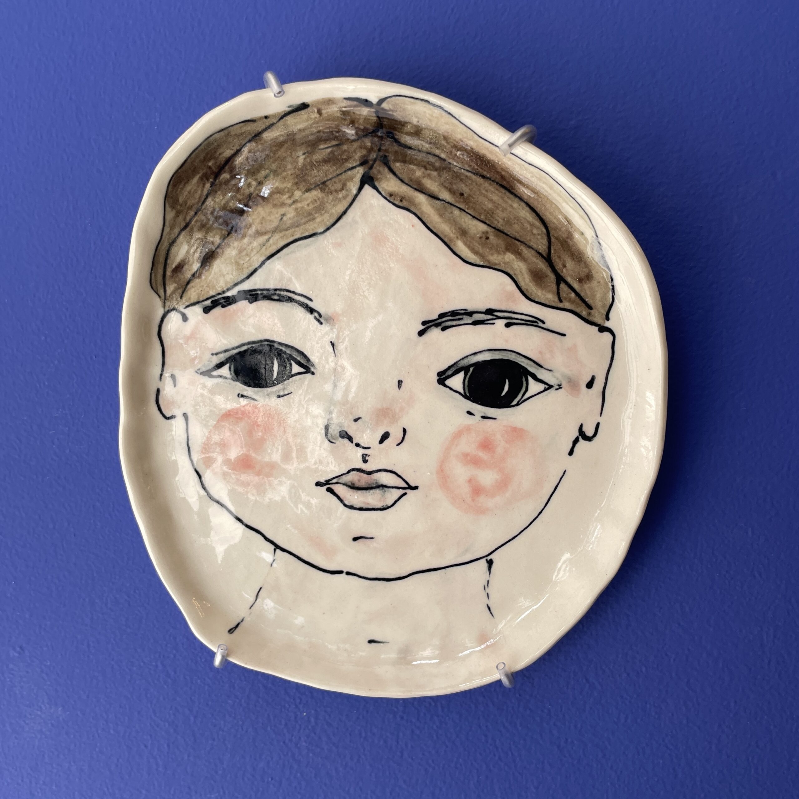 Fadet er lavet af hvid stentøjsler og håndmalet med glasur. Kan hænges op på væggen med platteophæng. der kan købes separat under varekategorien ‘væghængt keramik’.