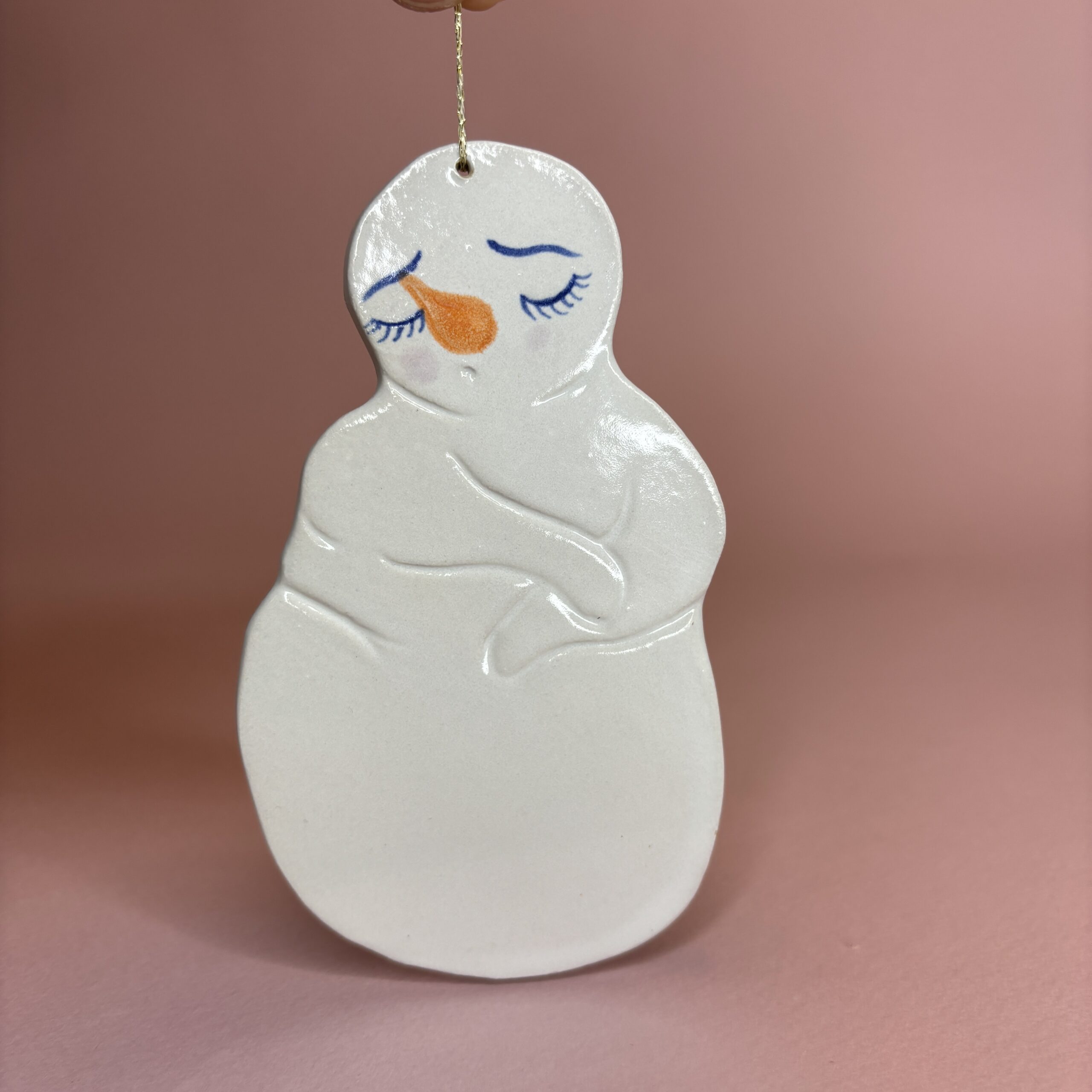 Snemanden er lavet af stentøjsler og dekoreret med glasur.