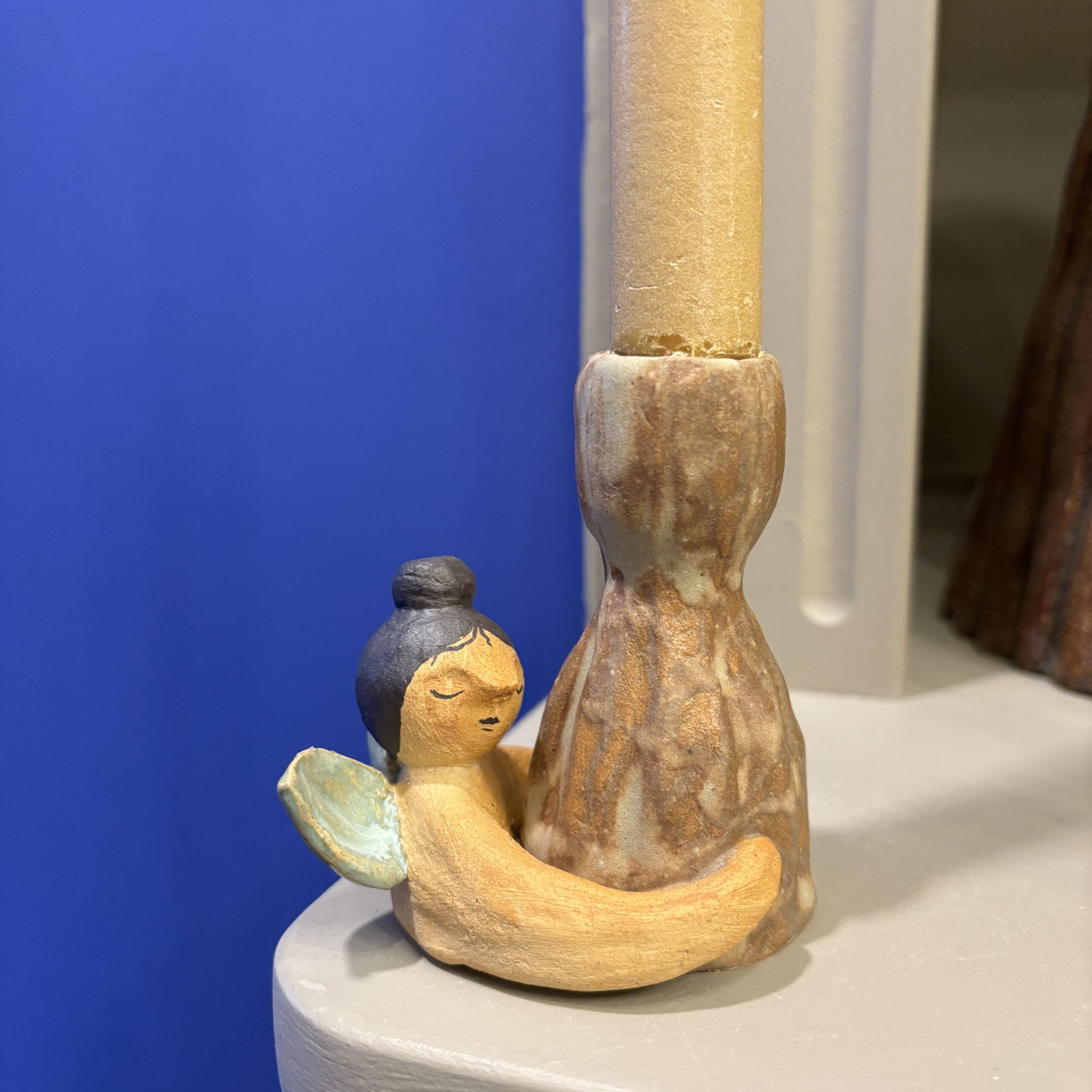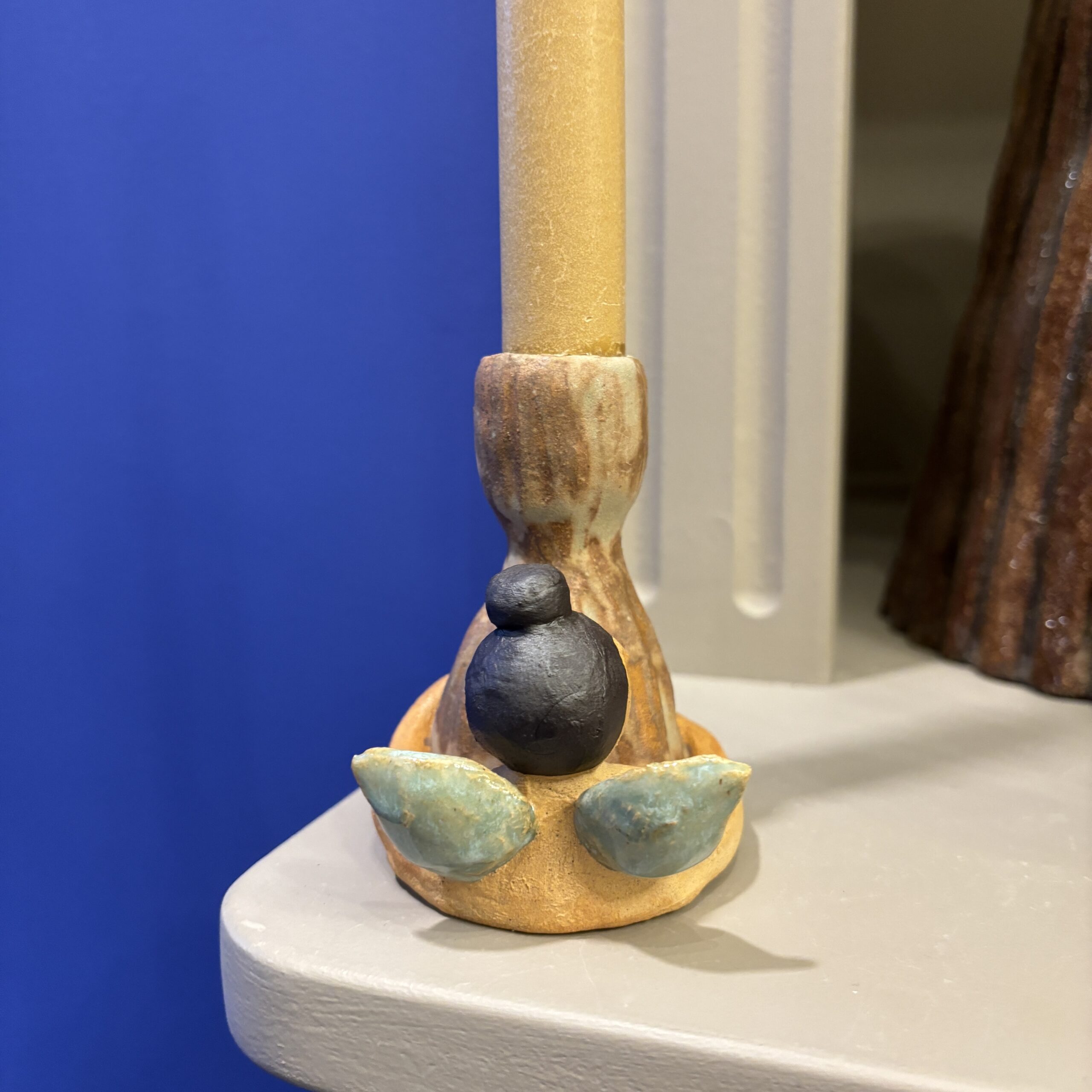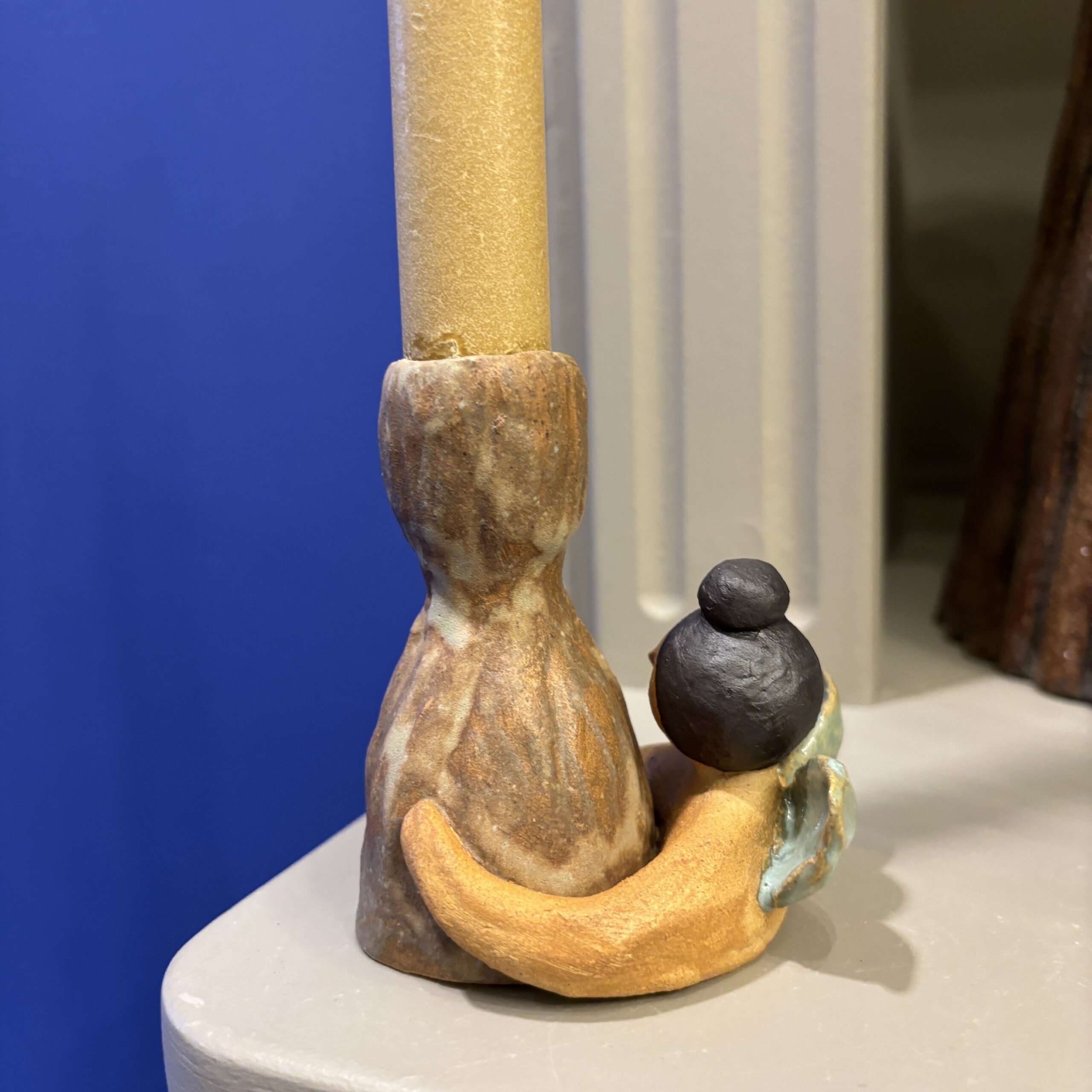 Stagen er håndlavet i stentøjsler og dekoreret med glasur.