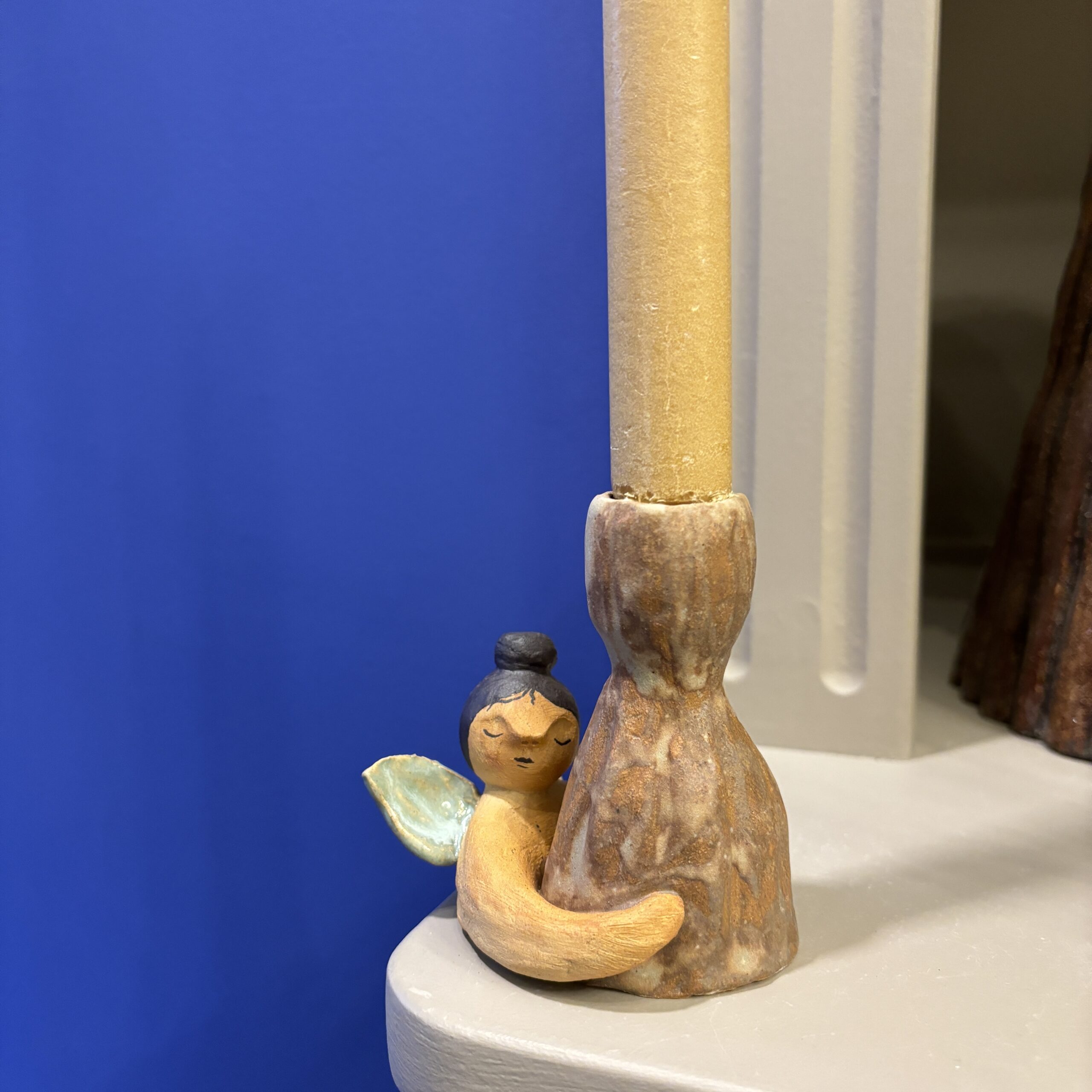 Udtryksfuld engel der krammer stage.