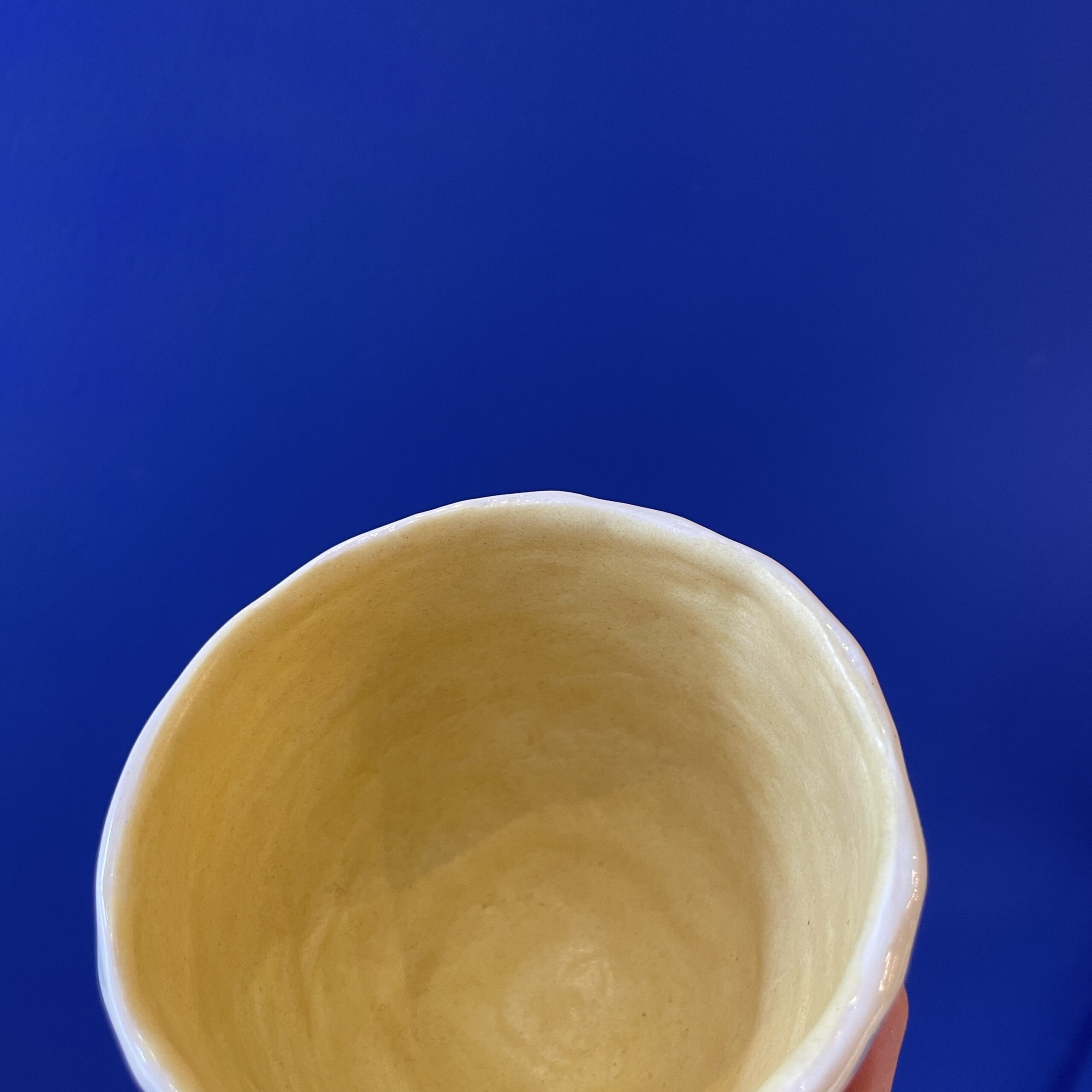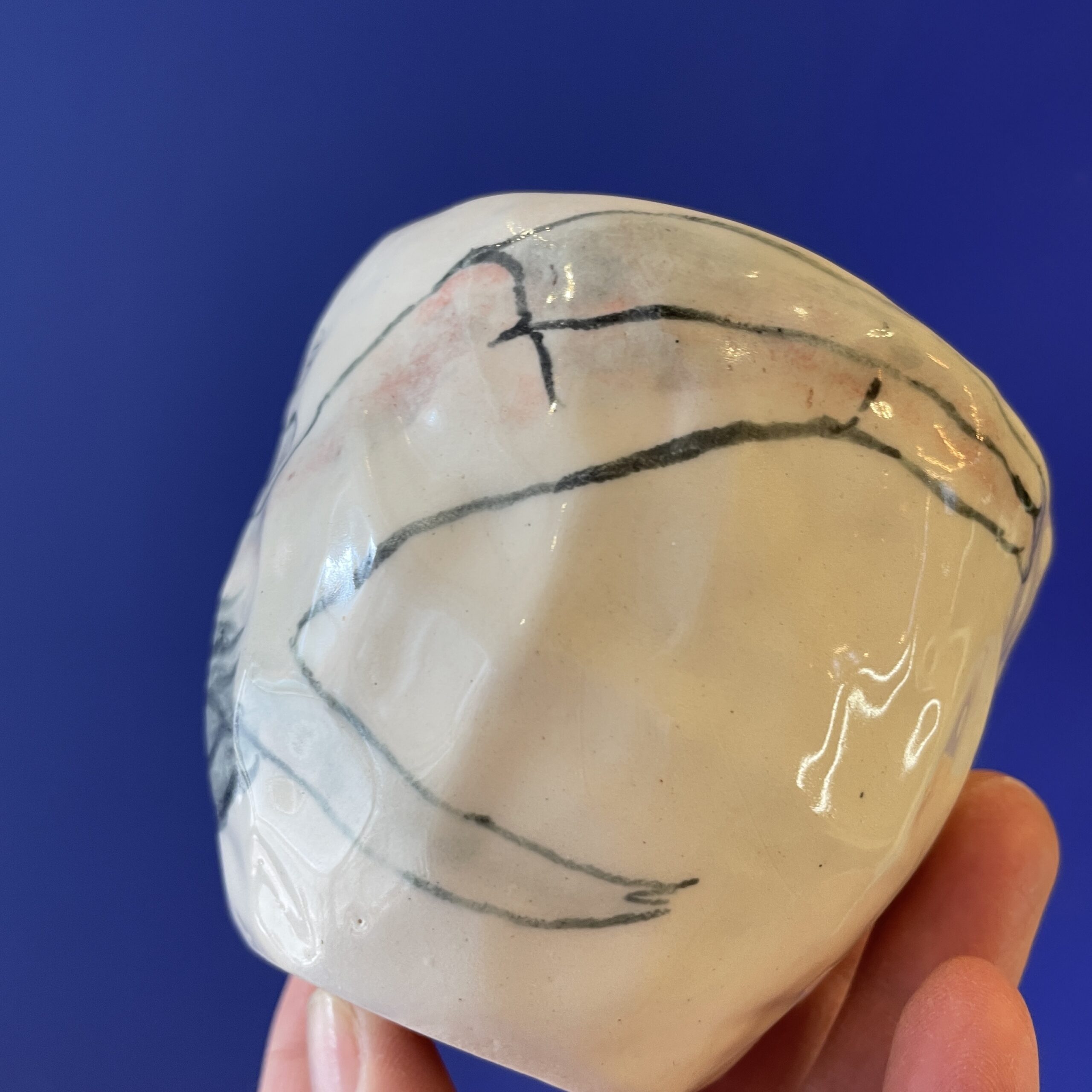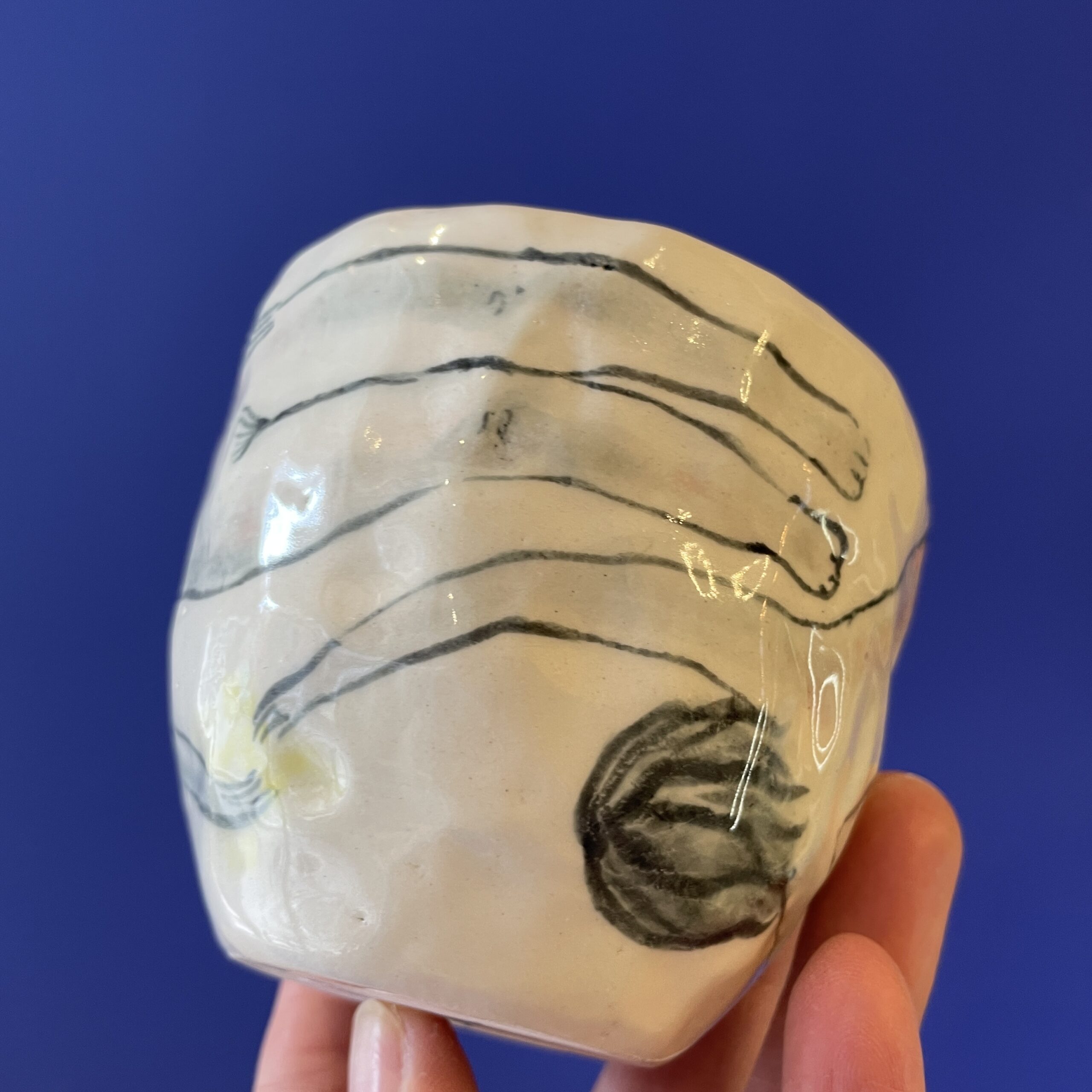 Koppen er håndlavet i stentøjsler og dekoreret med glasur.