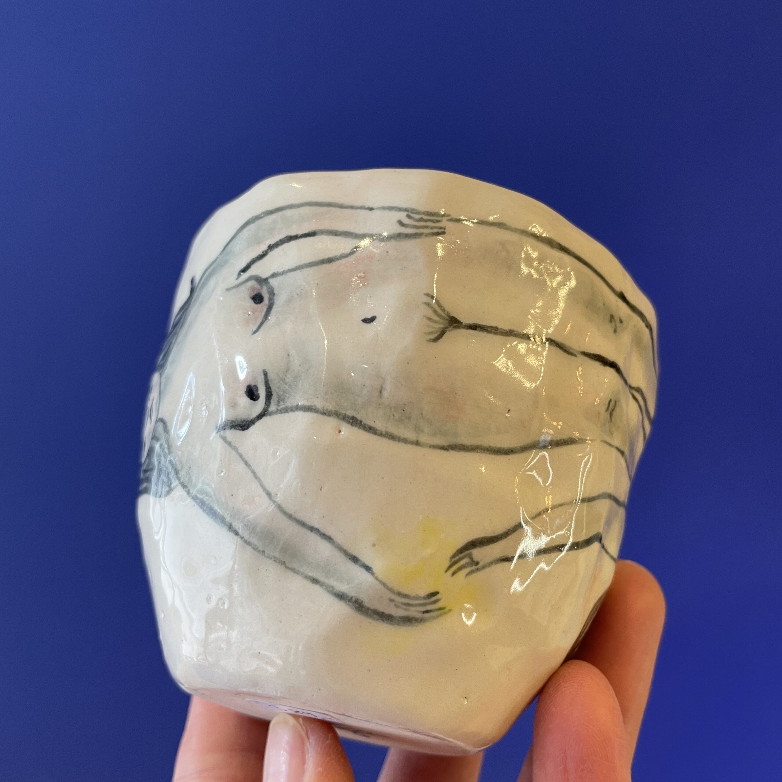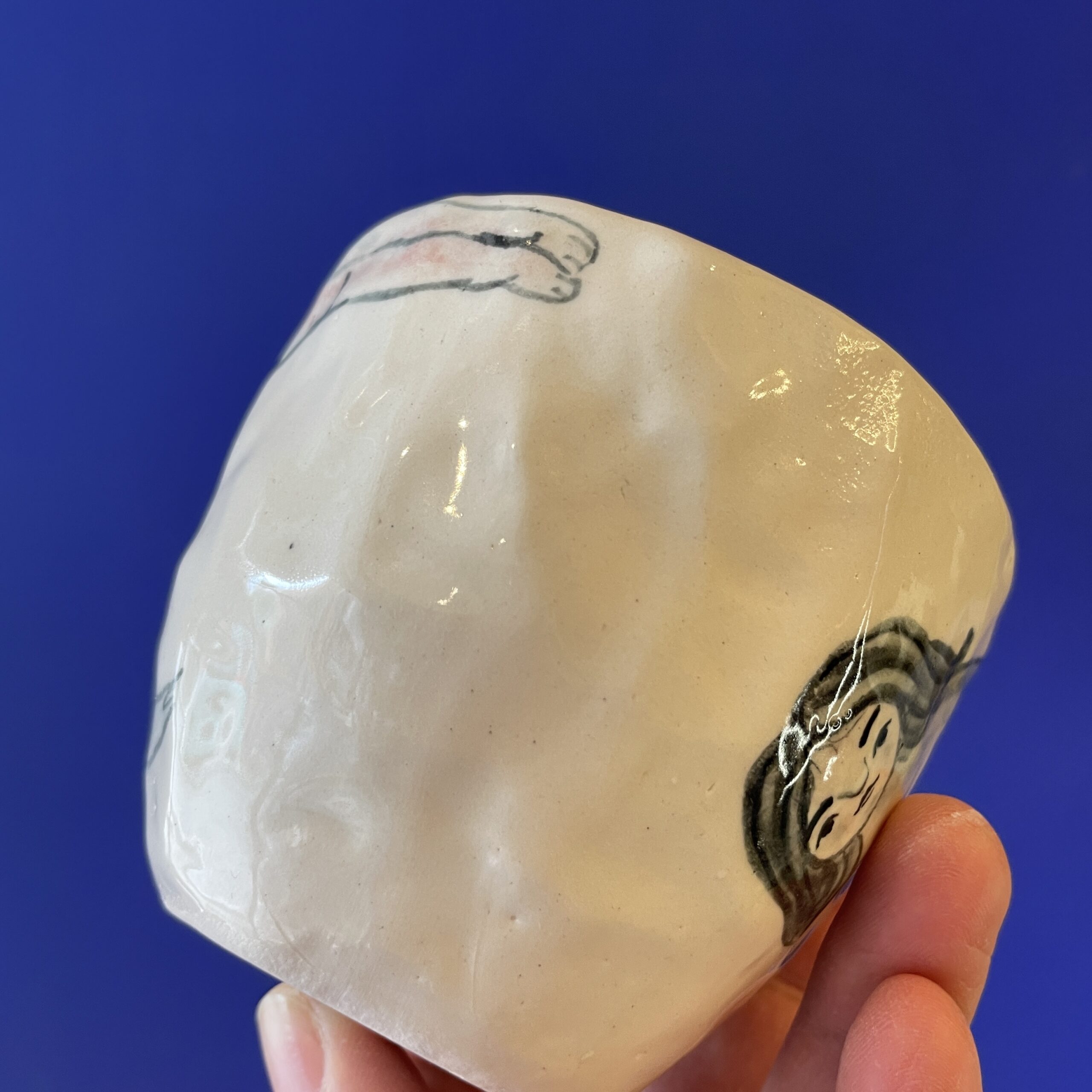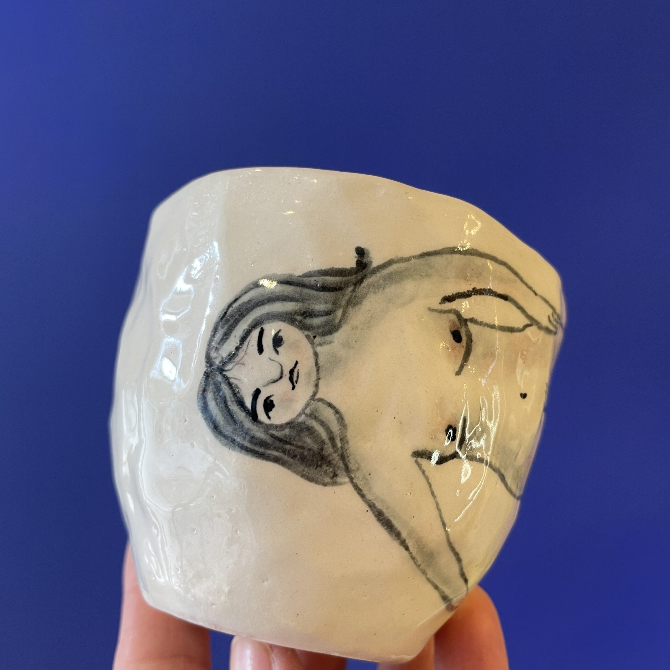 Koppen er håndlavet i stentøjsler og dekoreret med glasur.