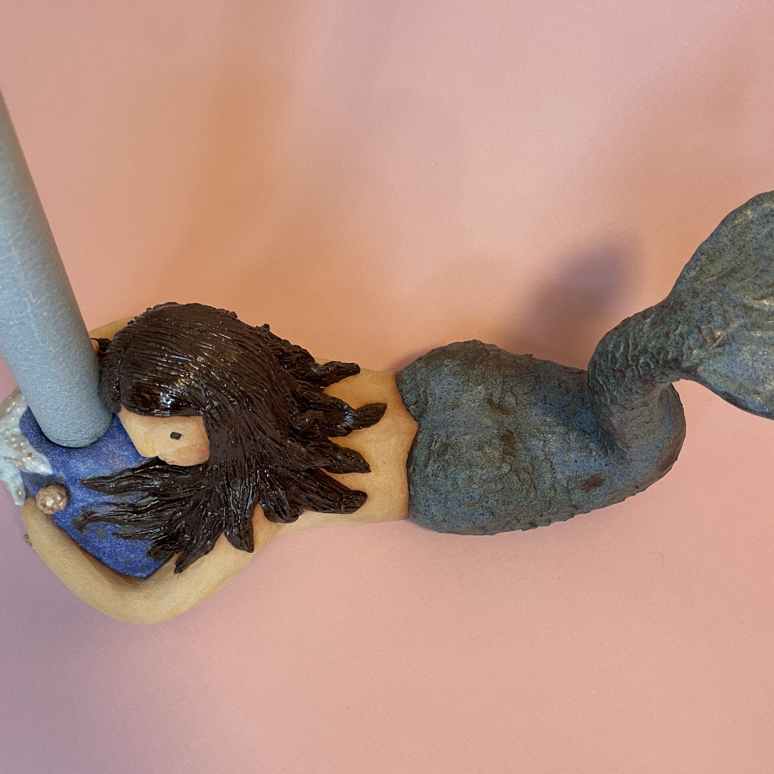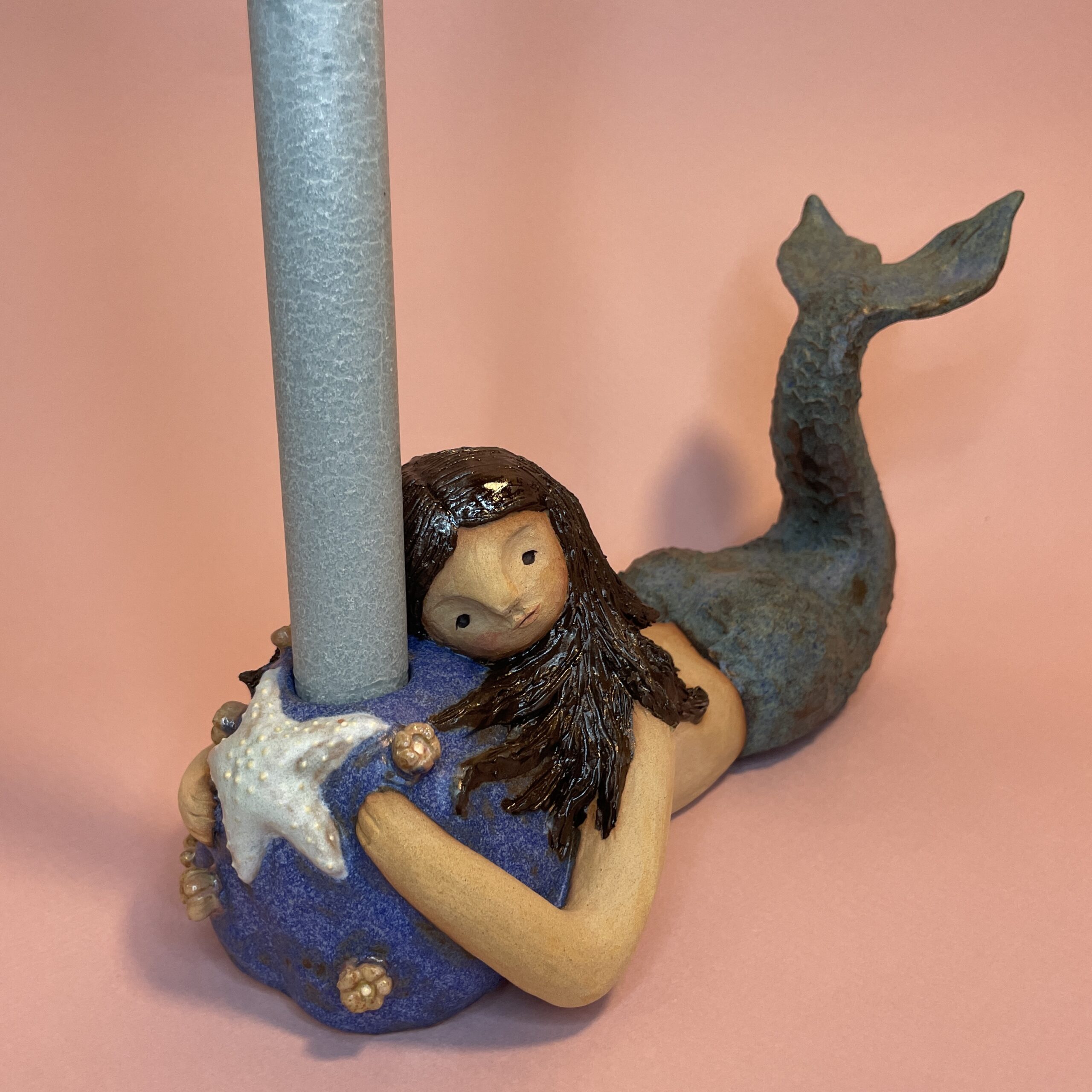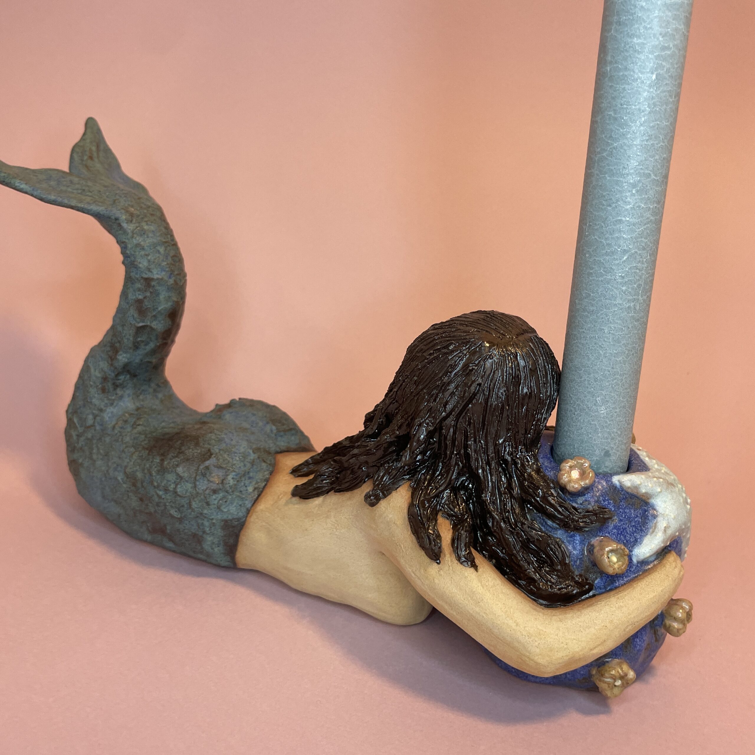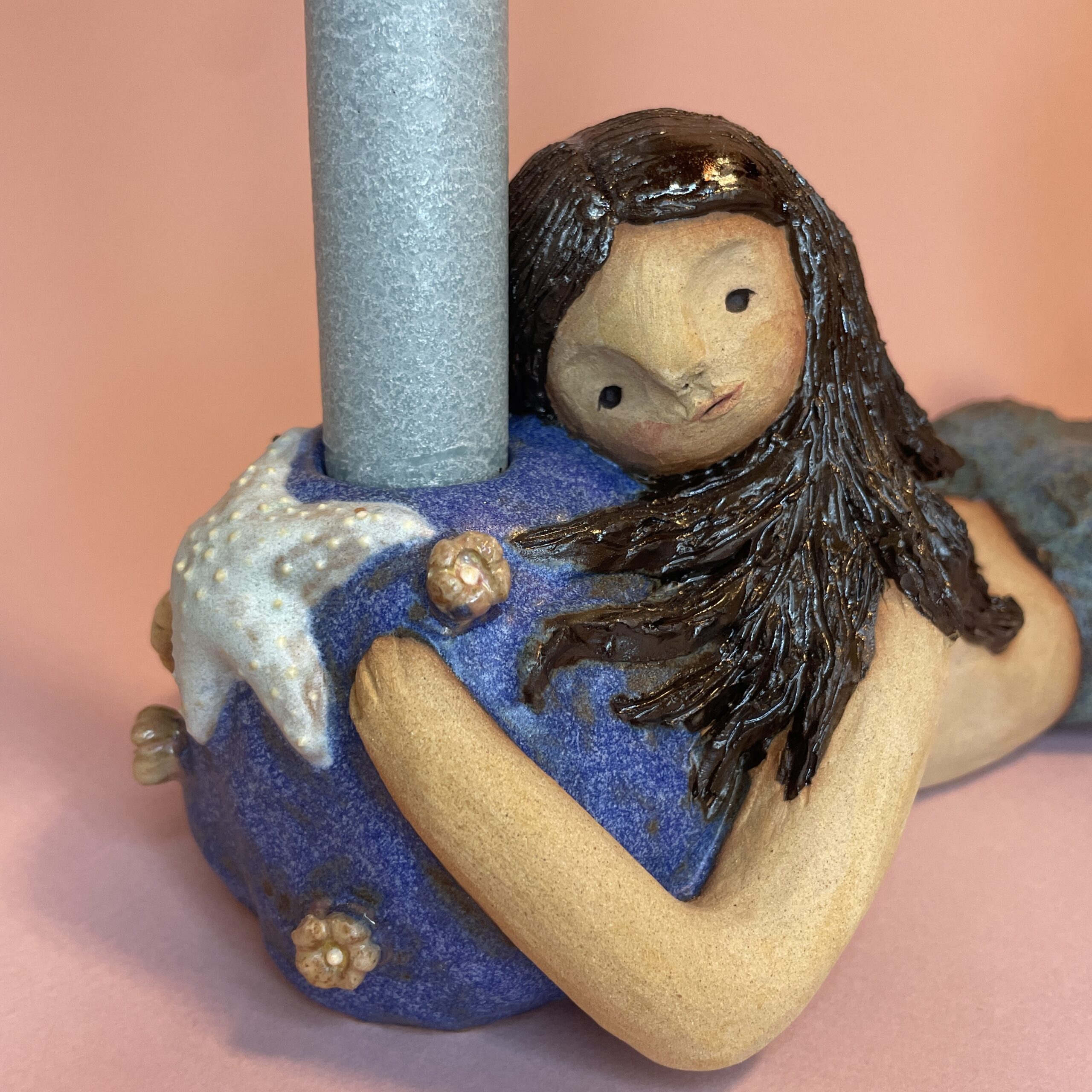 Figuren er håndmodelleret og dekoreret med glasur.