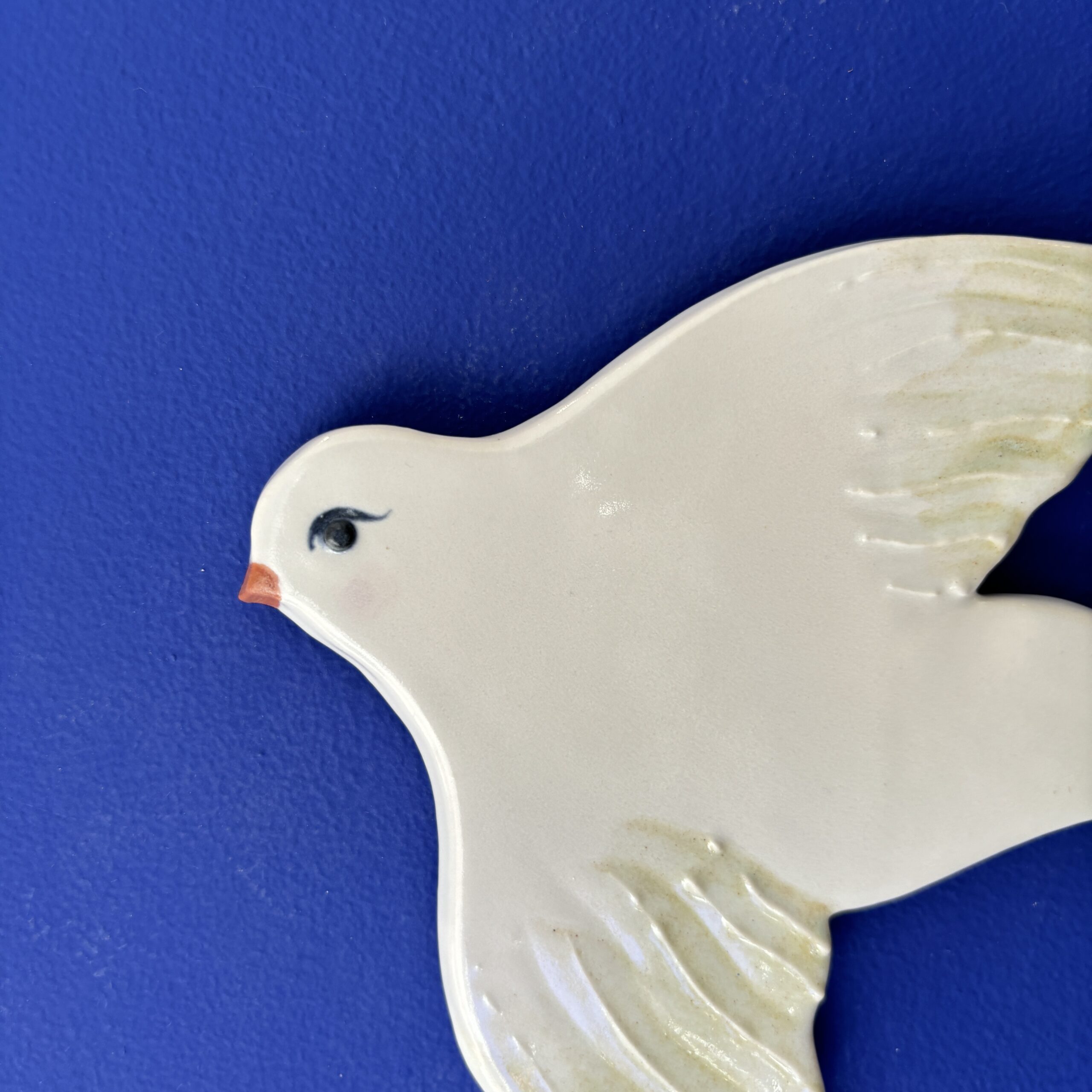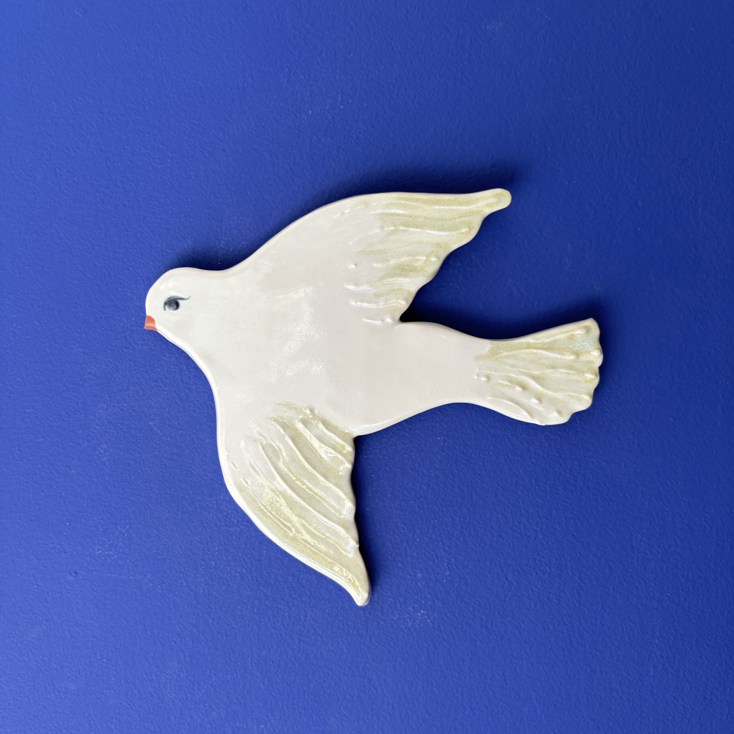 Sød keramik fugl i fine glasurer. Hæng den på væggen sammen med billeder og andet kunst.