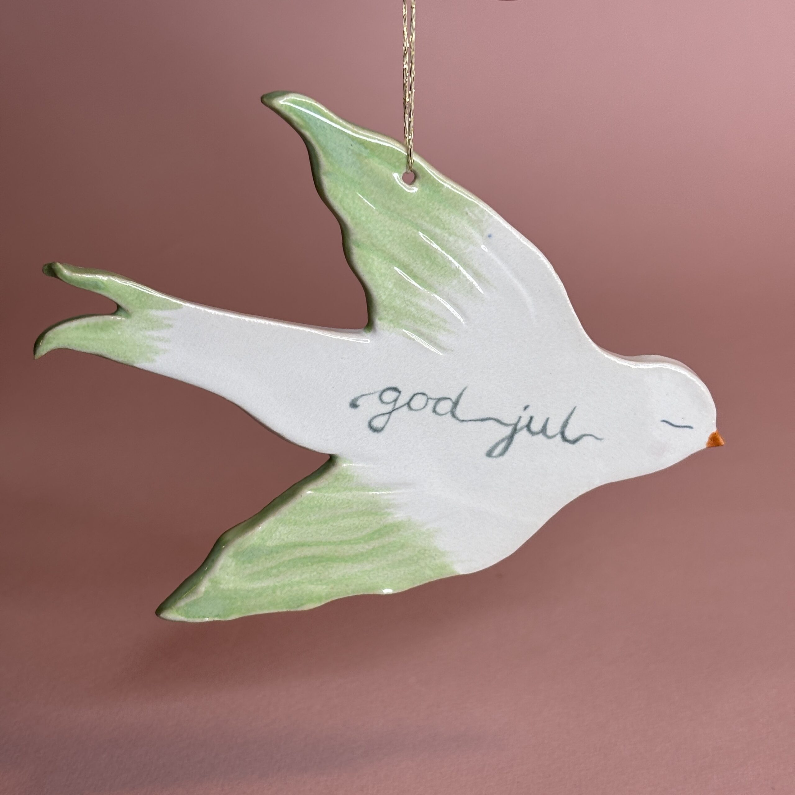 Nuttet keramikfugl med ønsket om en god jul.