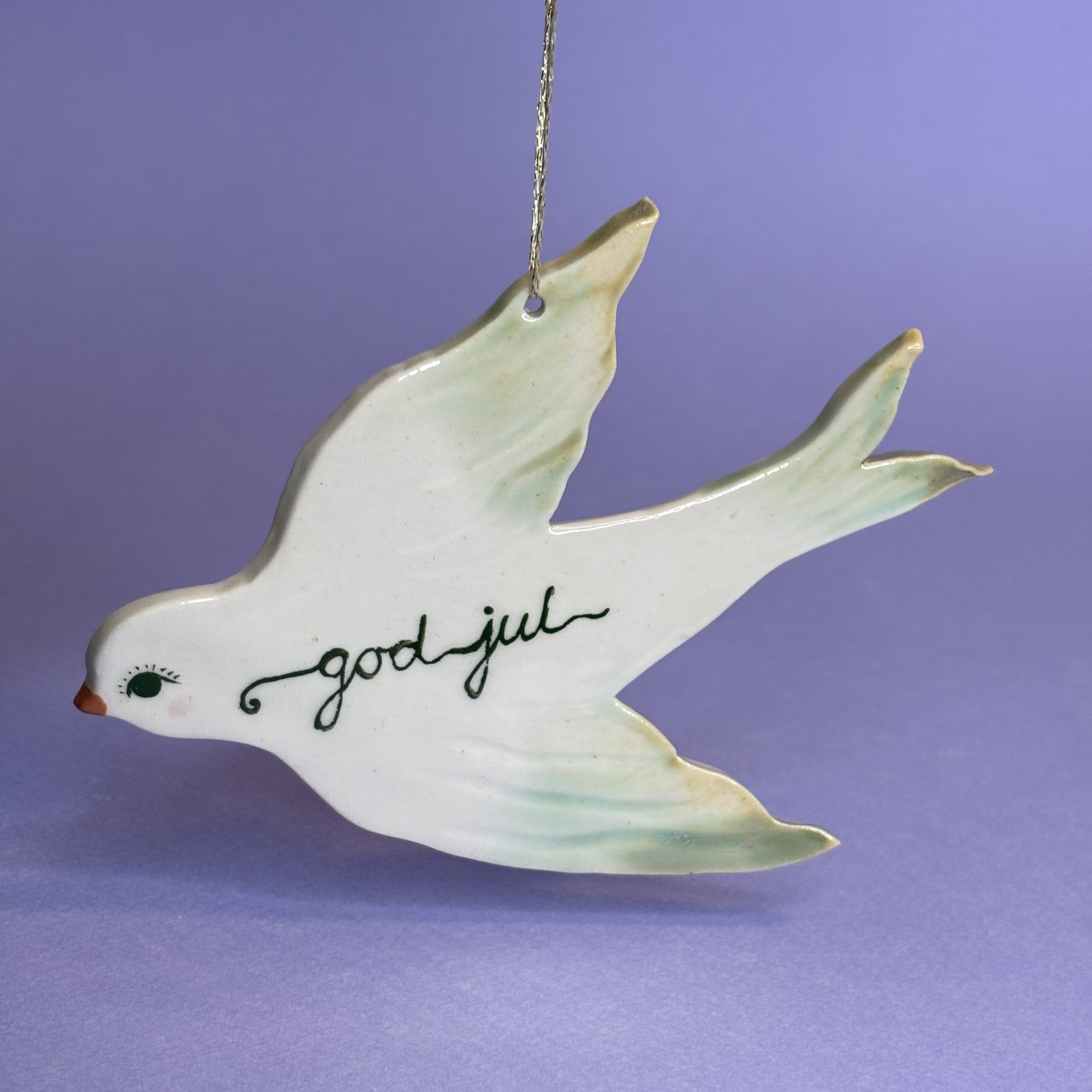 Nuttet keramikfugl med ønsket om en god jul.