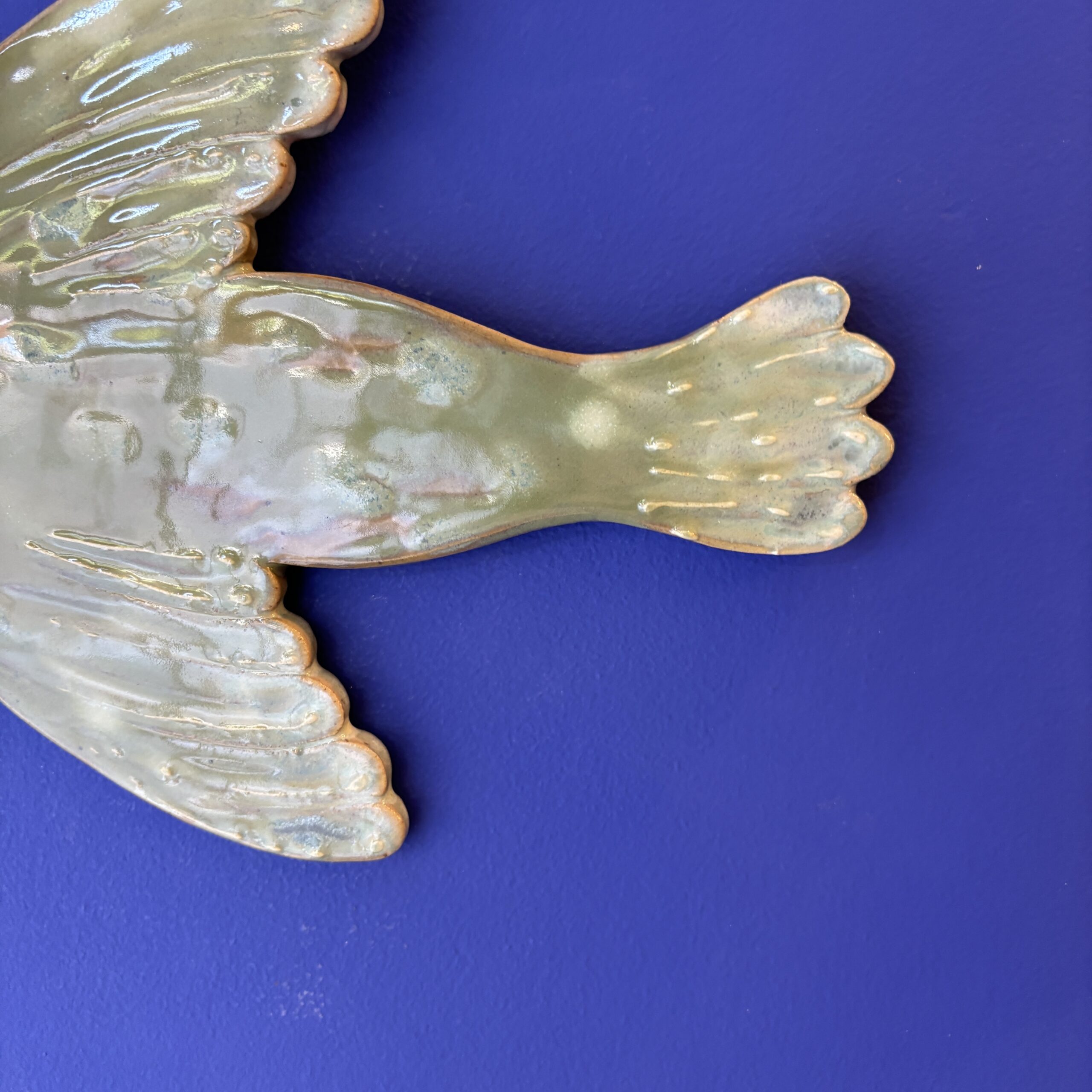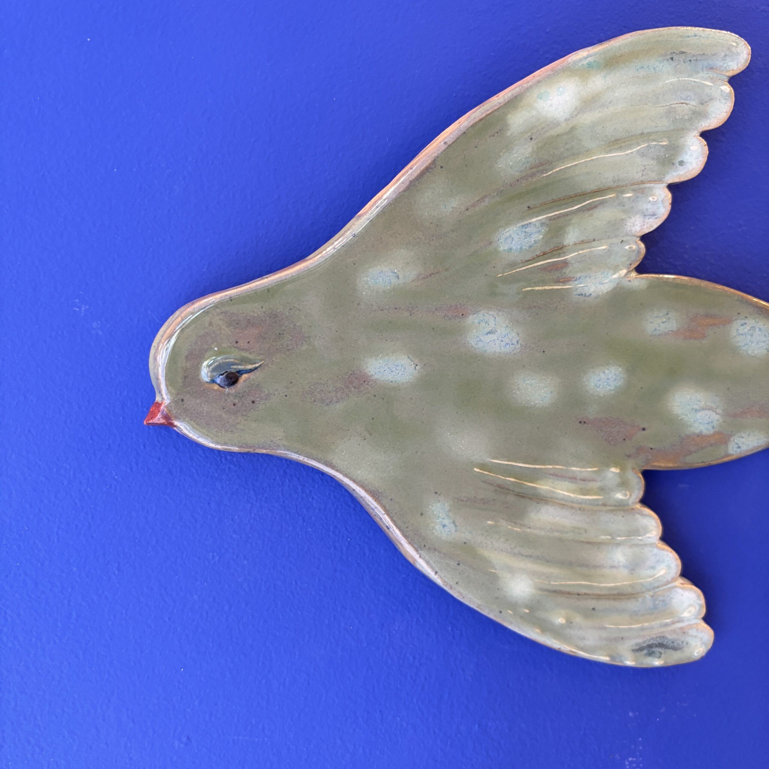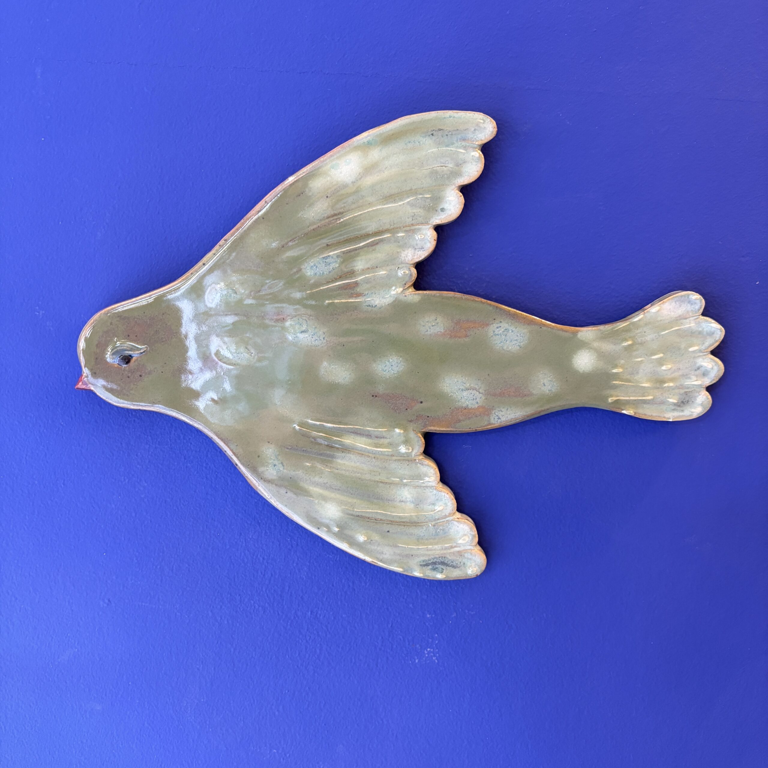 Sød keramik fugl i fine glasurer. Hæng den på væggen sammen med billeder og andet kunst.