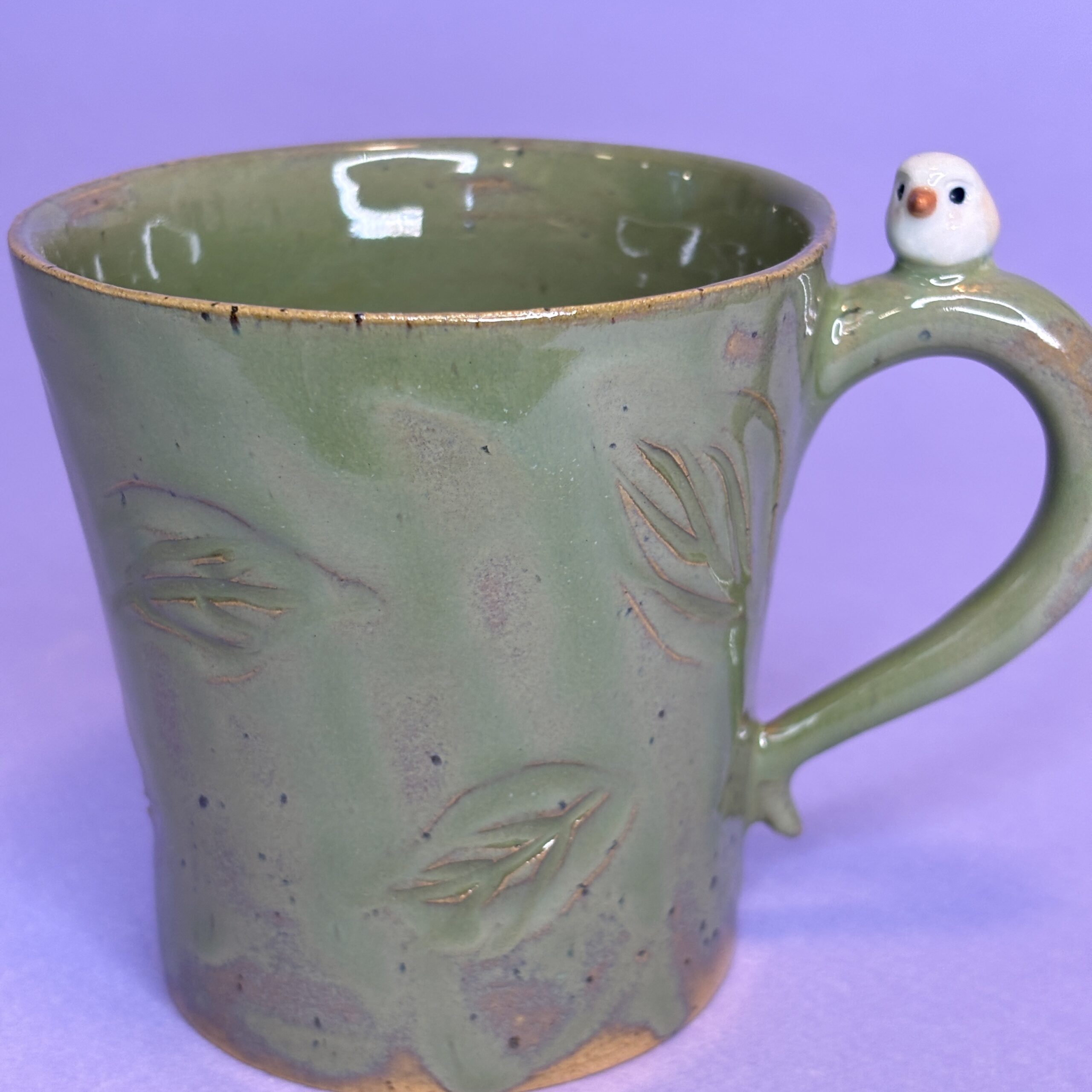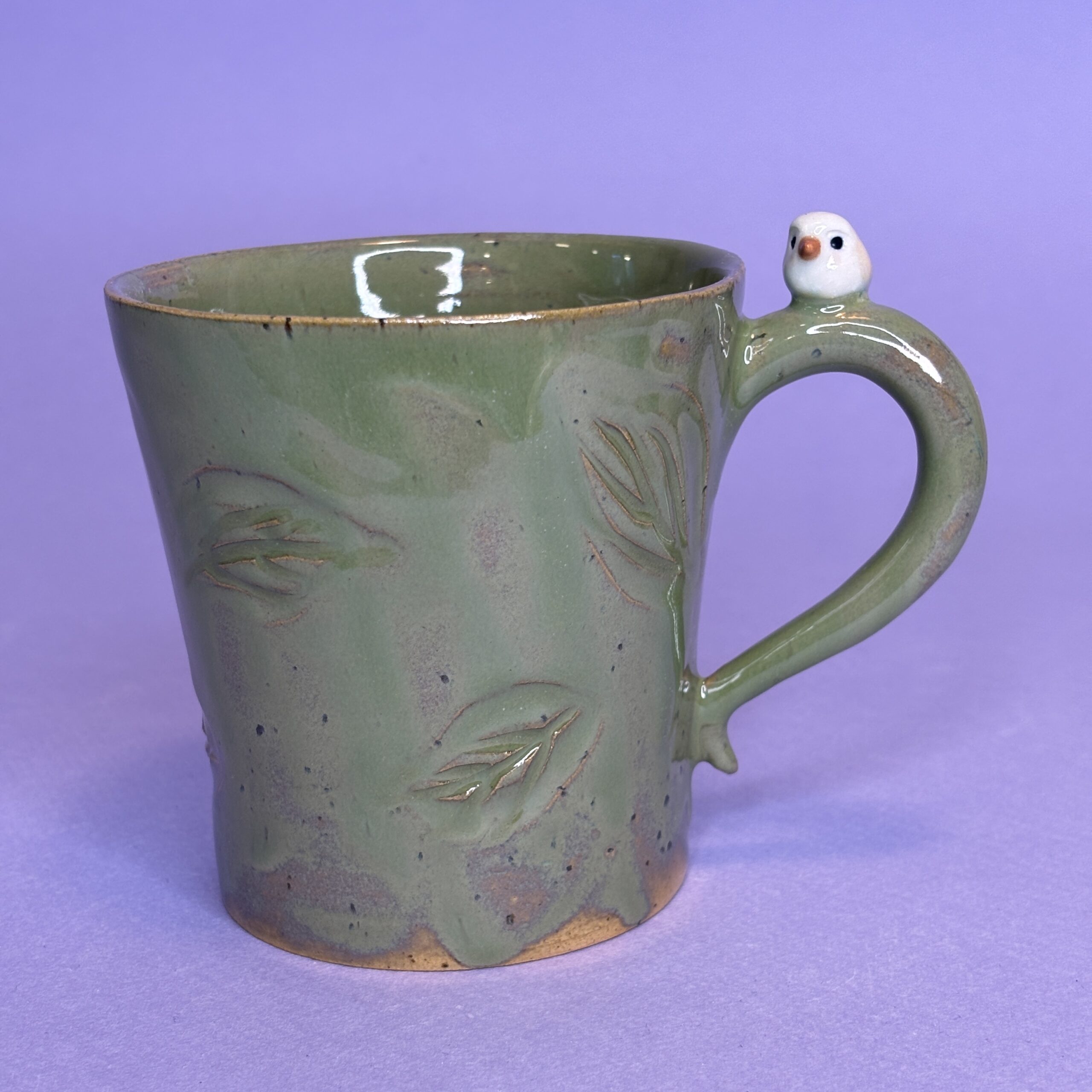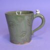 Koppen er hånddrejet i stentøjsler og dekoreret med glasur.