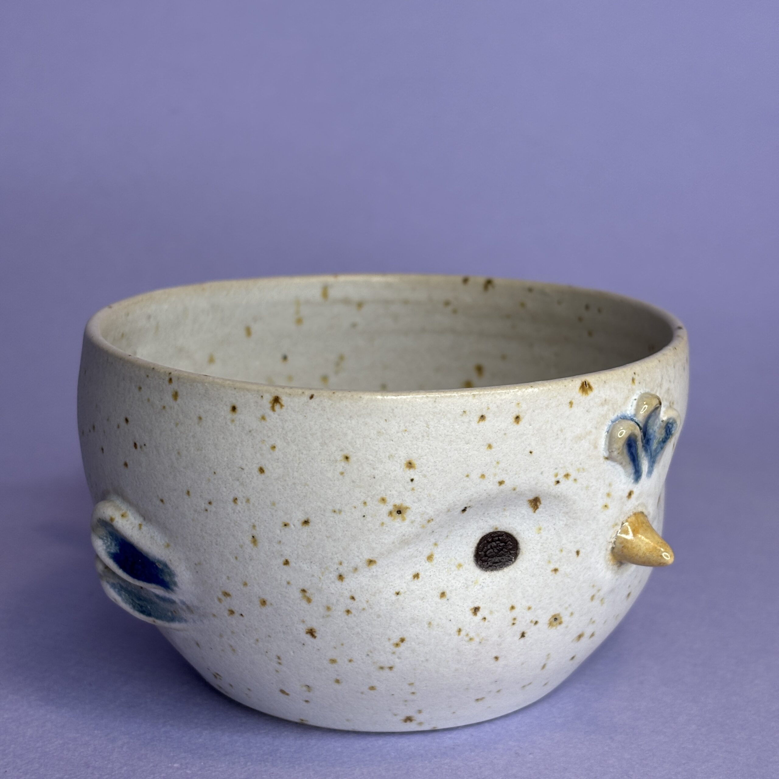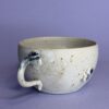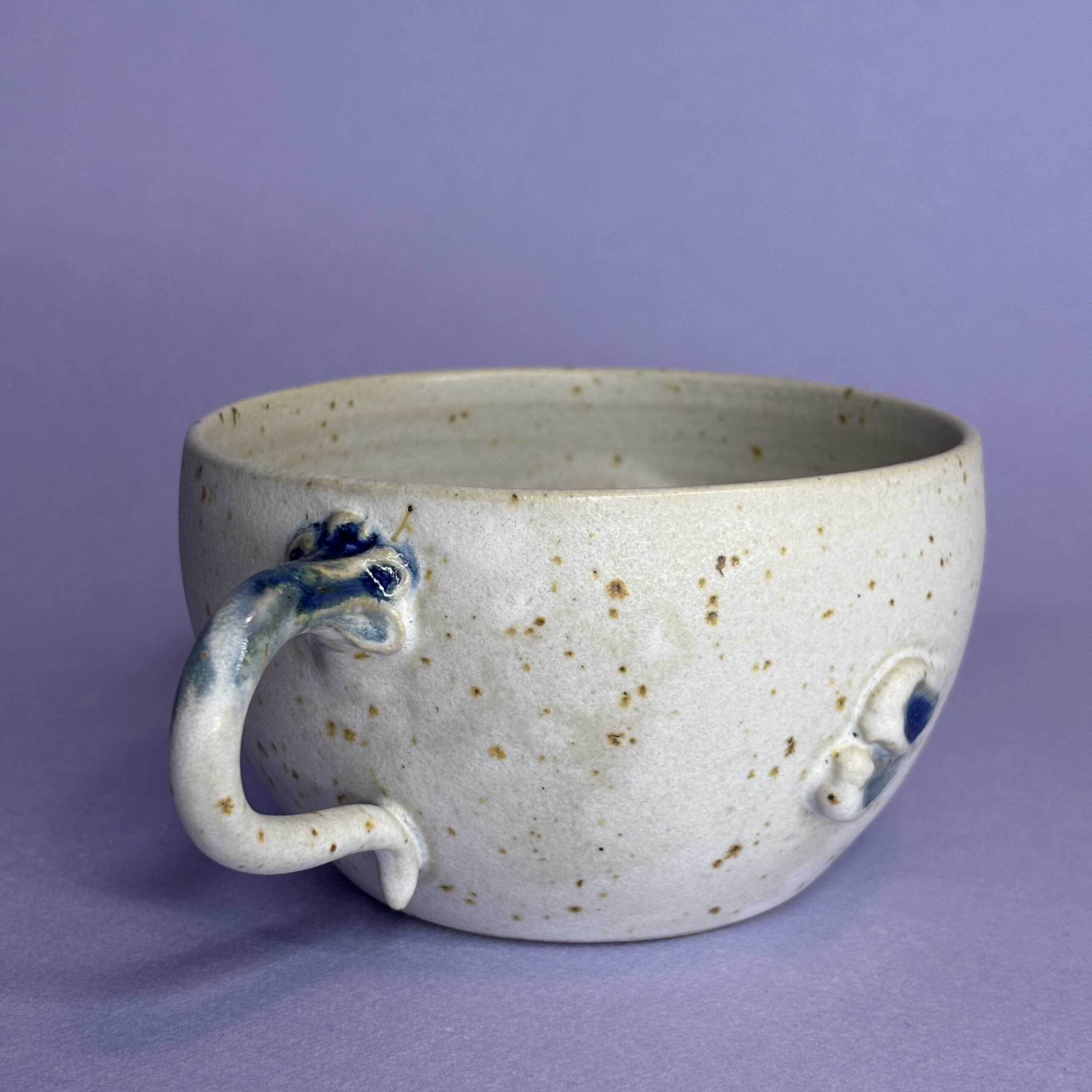 Koppen er håndlavet i stentøjsler og dekoreret med glasur.