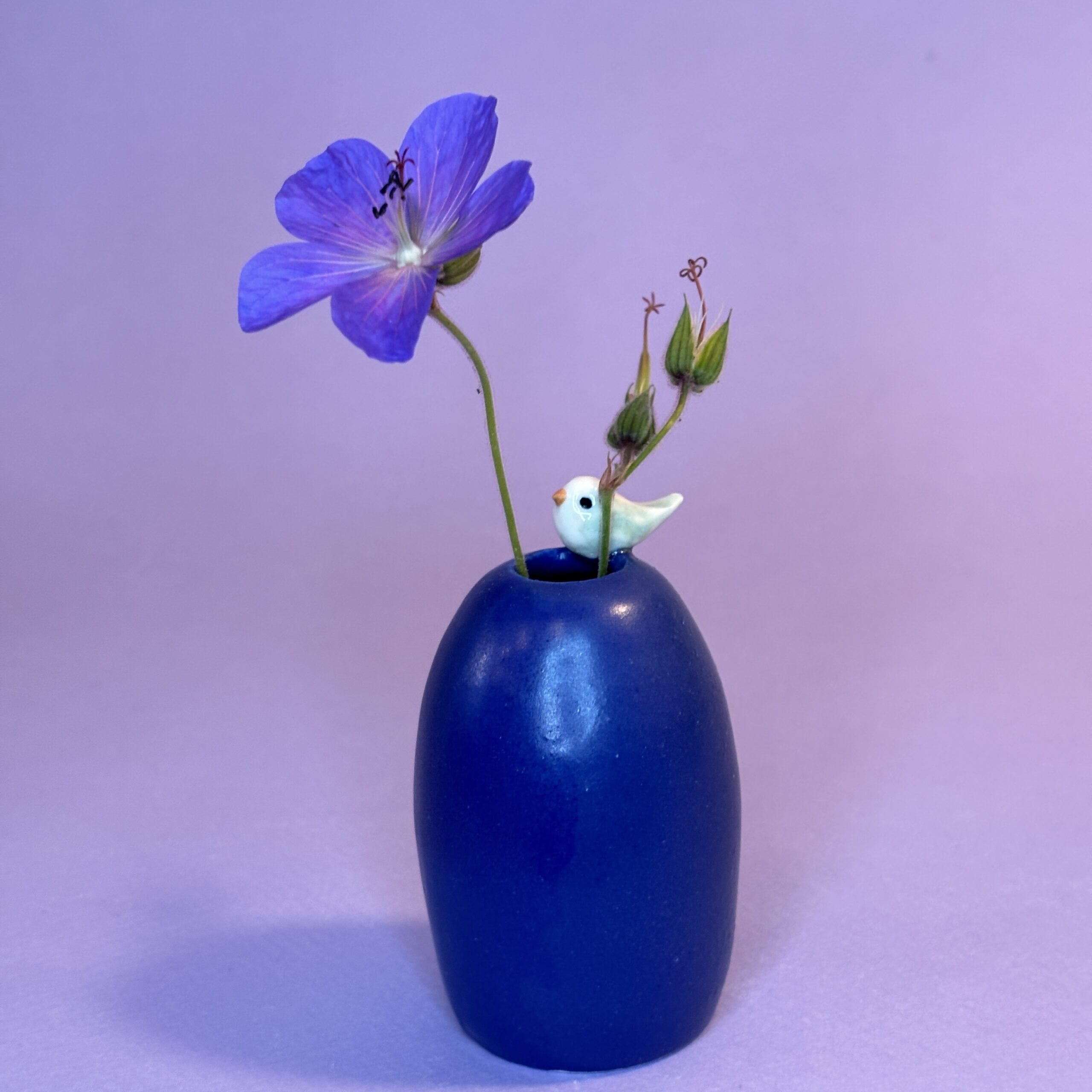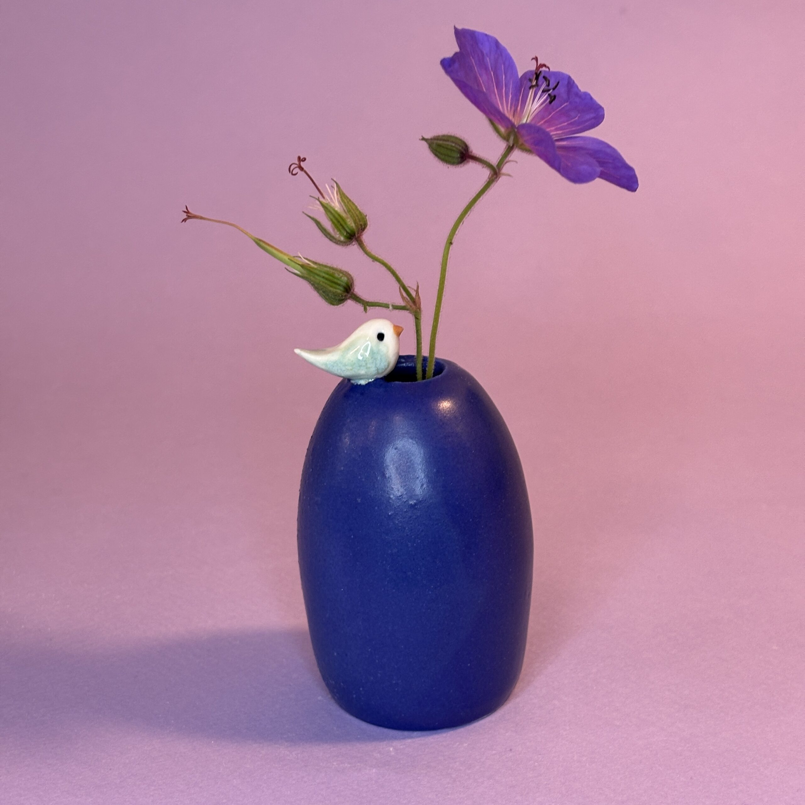 Lille vase skabt til en enkelt blomst eller lille buket, der vil pynte fint i selskab med den søde pipfugl.