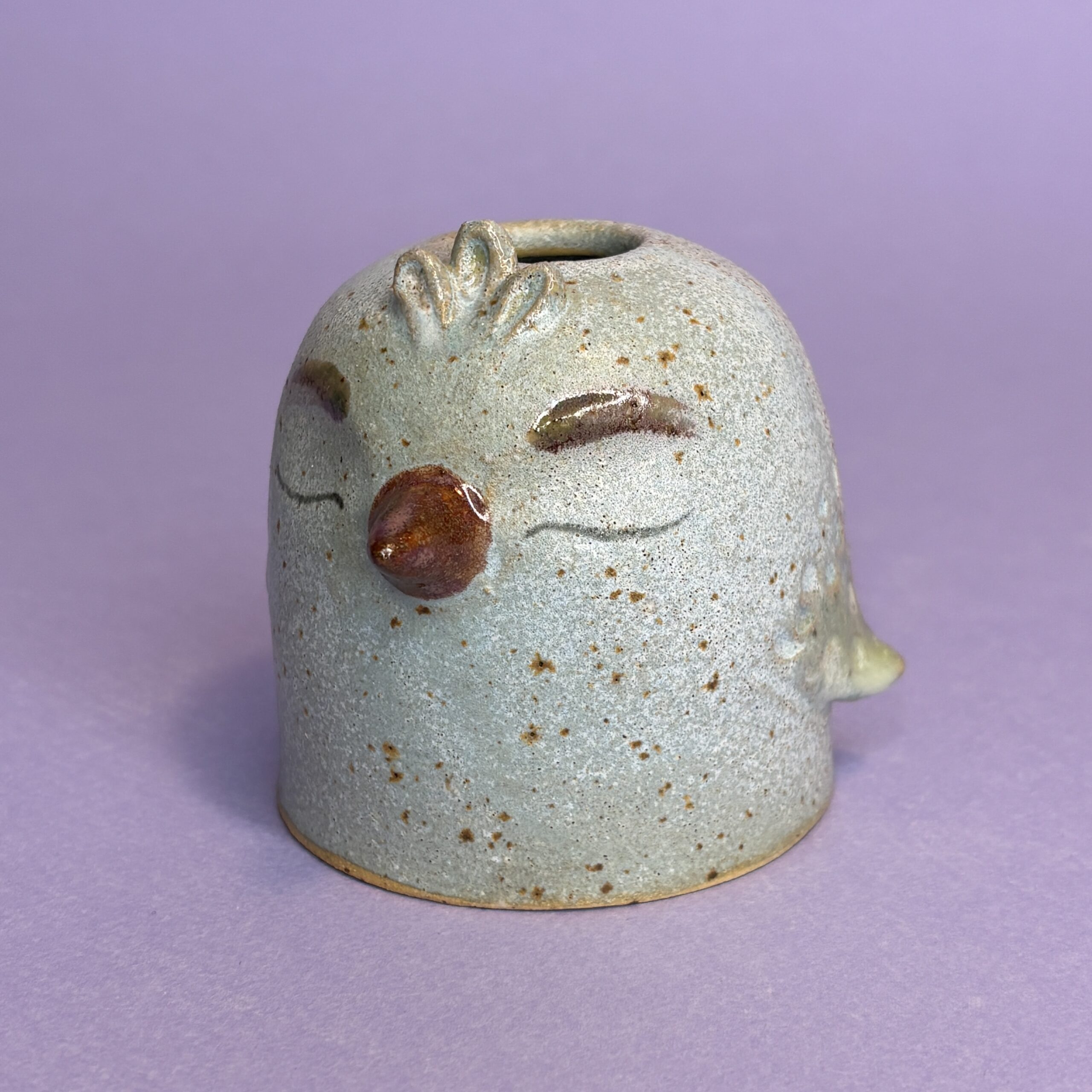Vasen /stagen er hånddrejet i stentøjsler og dekoreret med fine glasurer.