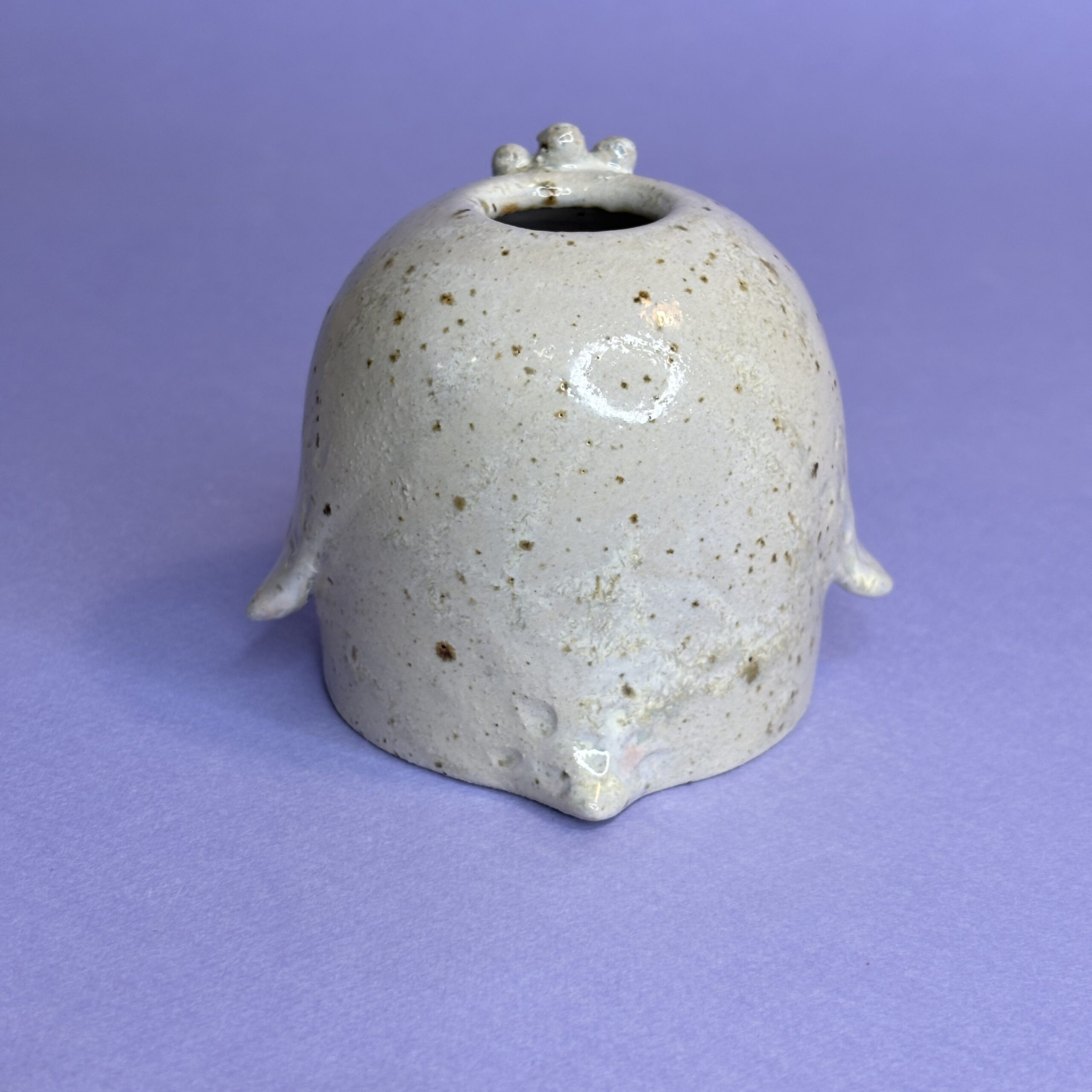 Vasen /stagen er hånddrejet i stentøjsler og dekoreret med fine glasurer.
