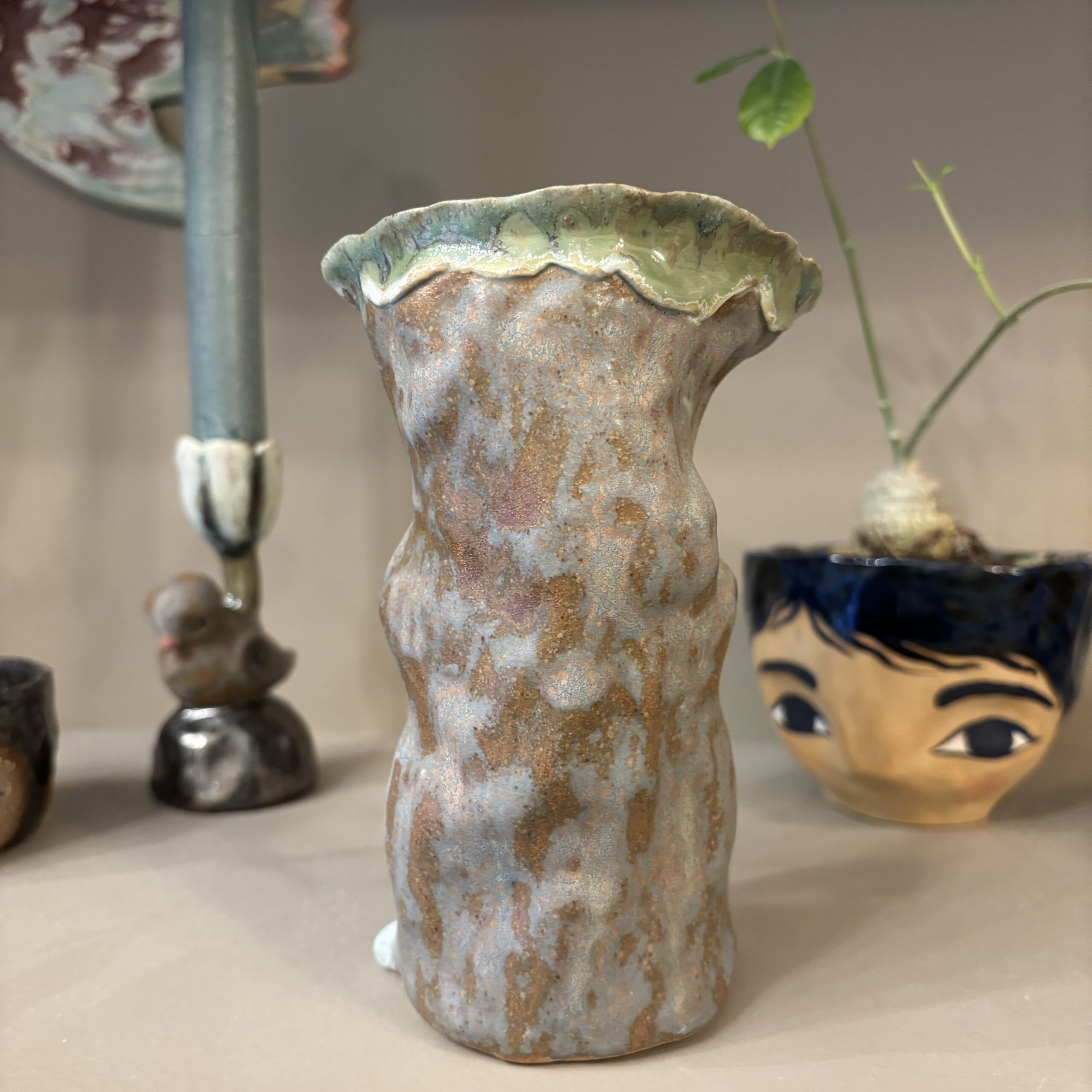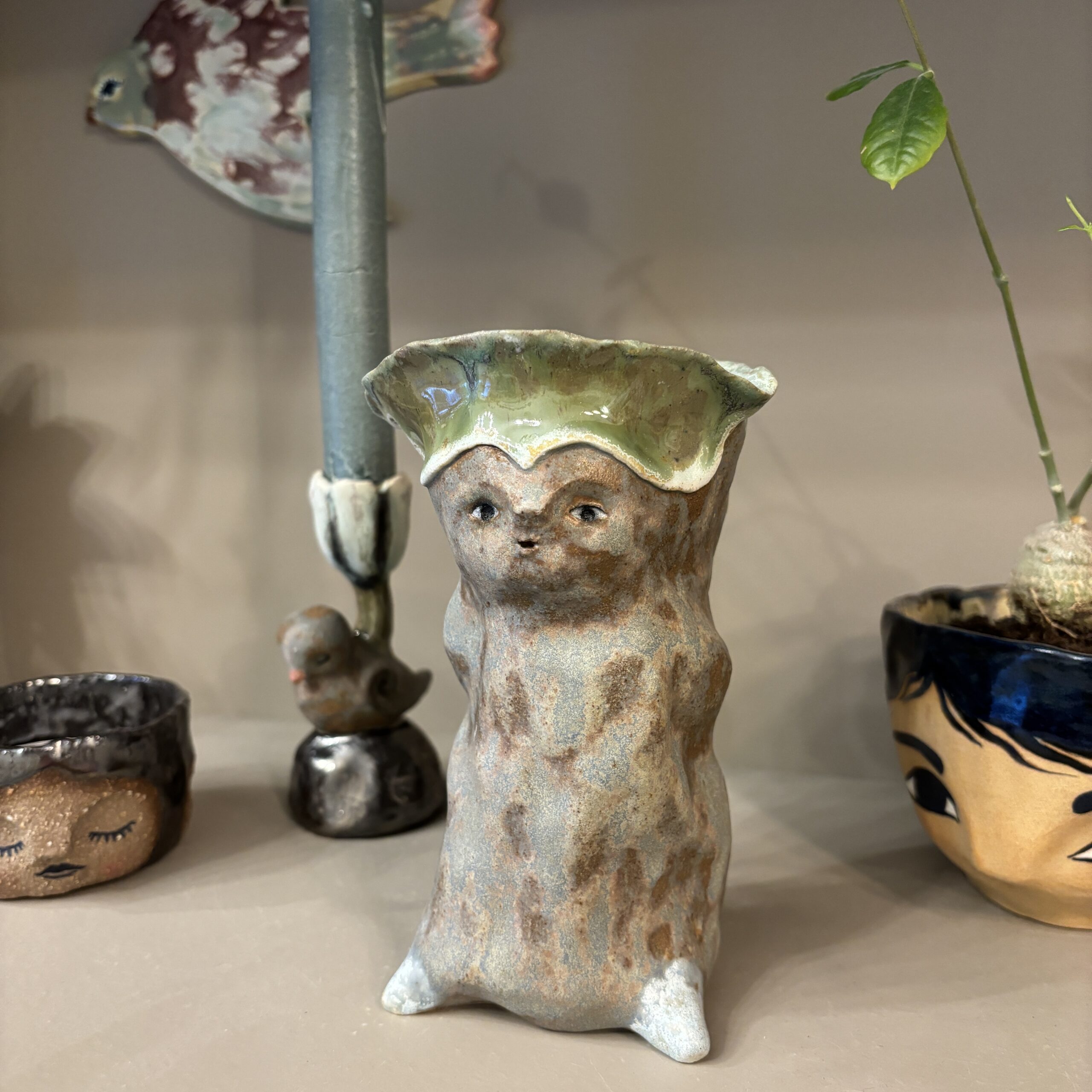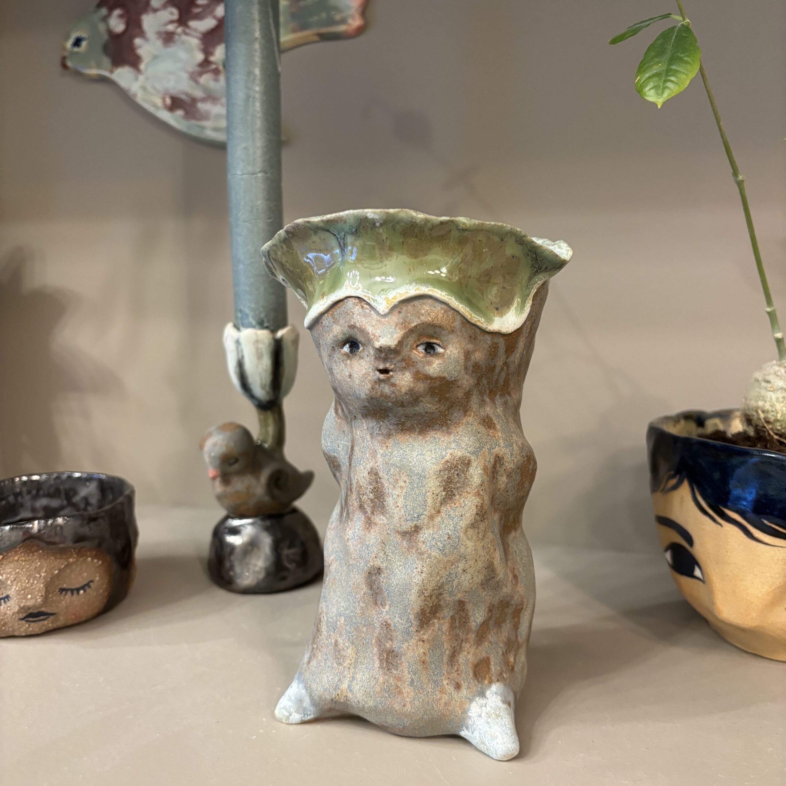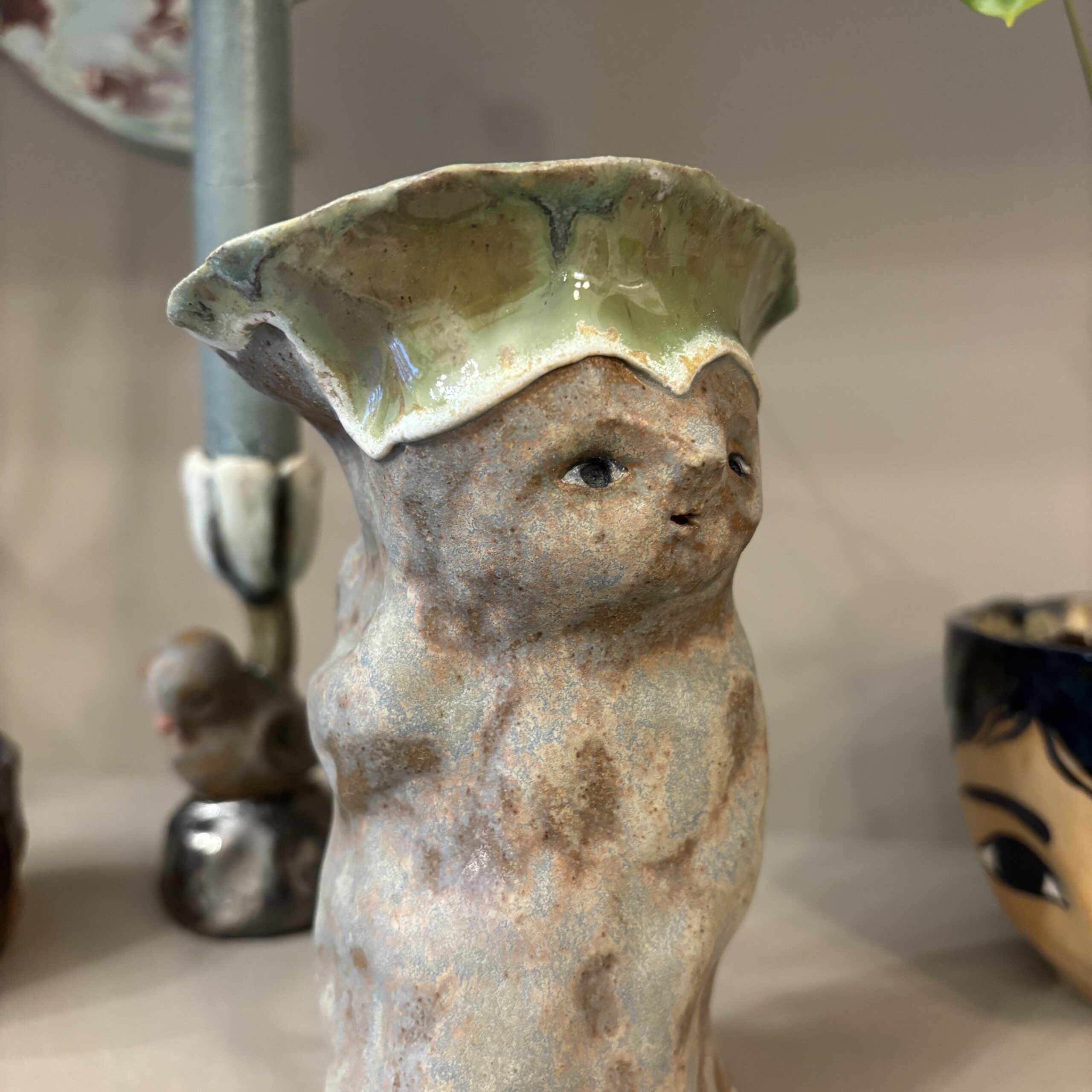 Figuren er håndmodelleret og dekoreret med glasur.