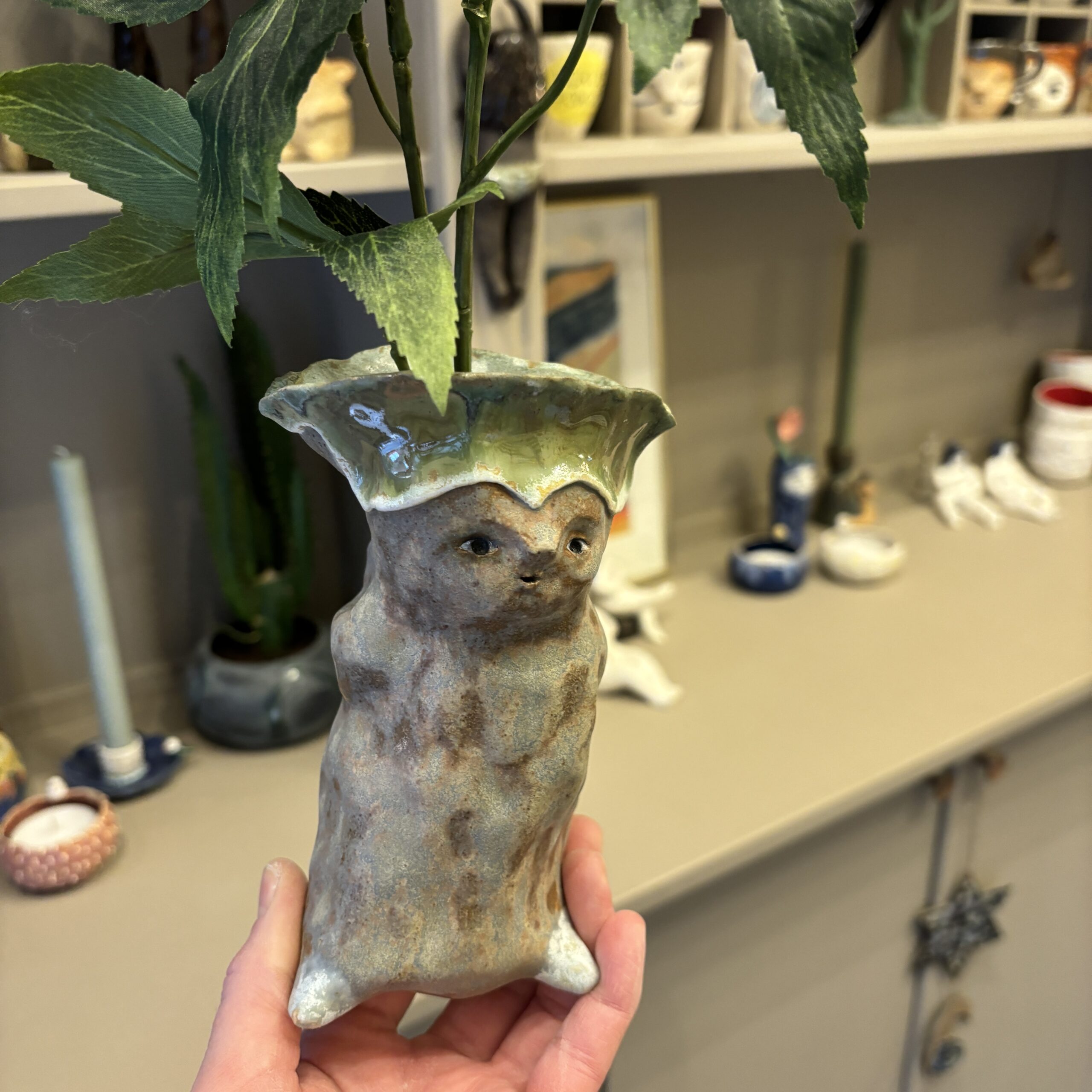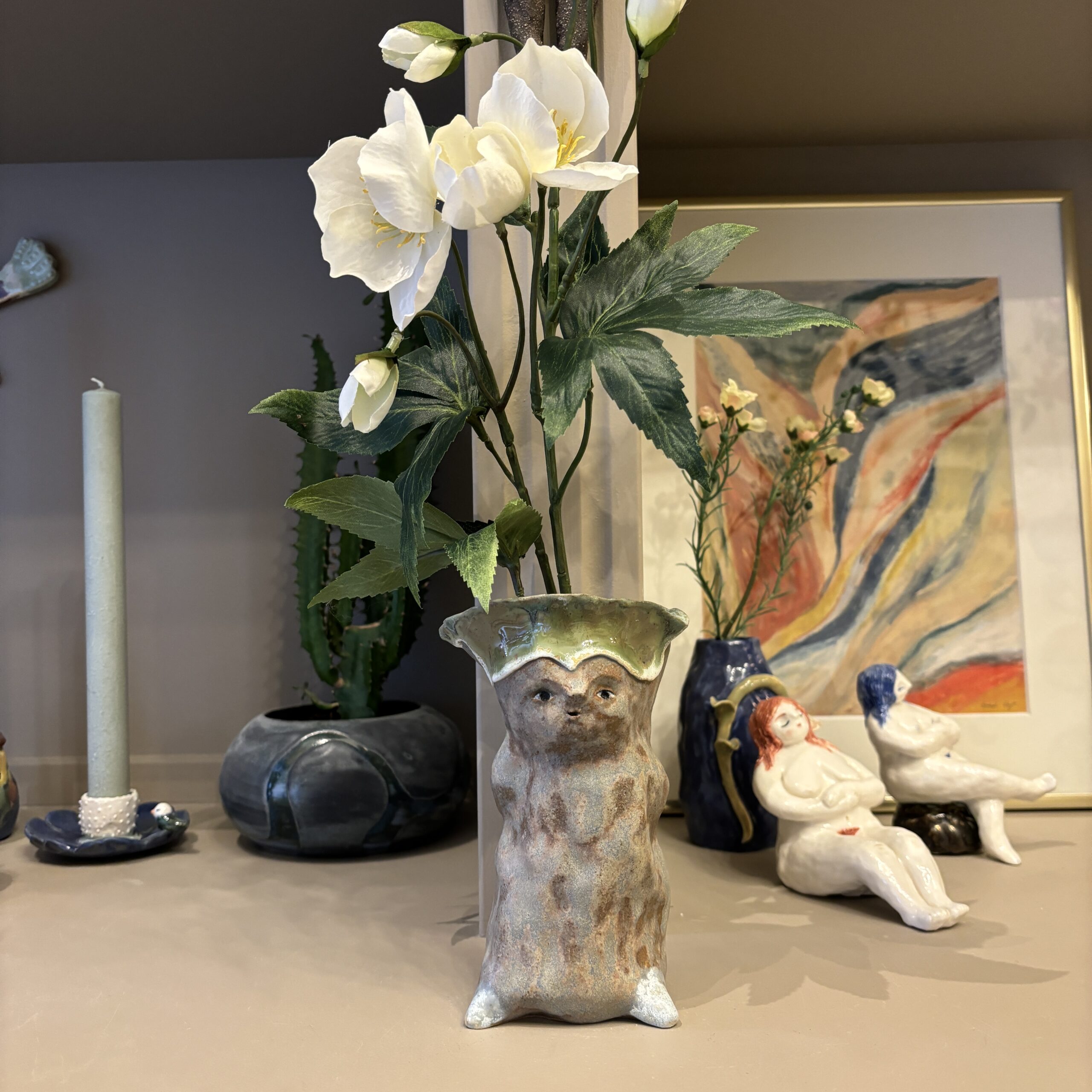En hemmelighedsfuld og fræk gavtyv af en vase – kan også stå uden blomster som figur.