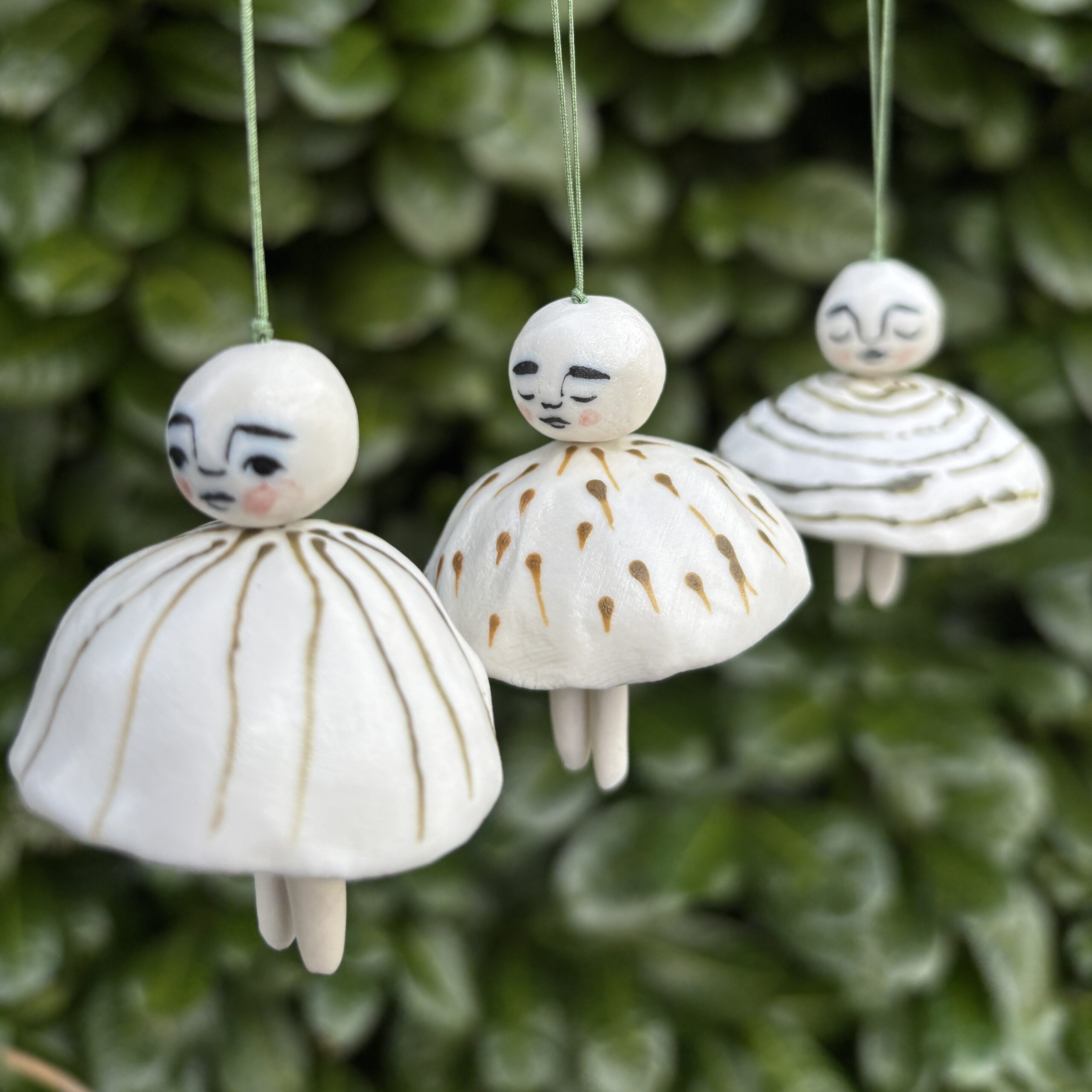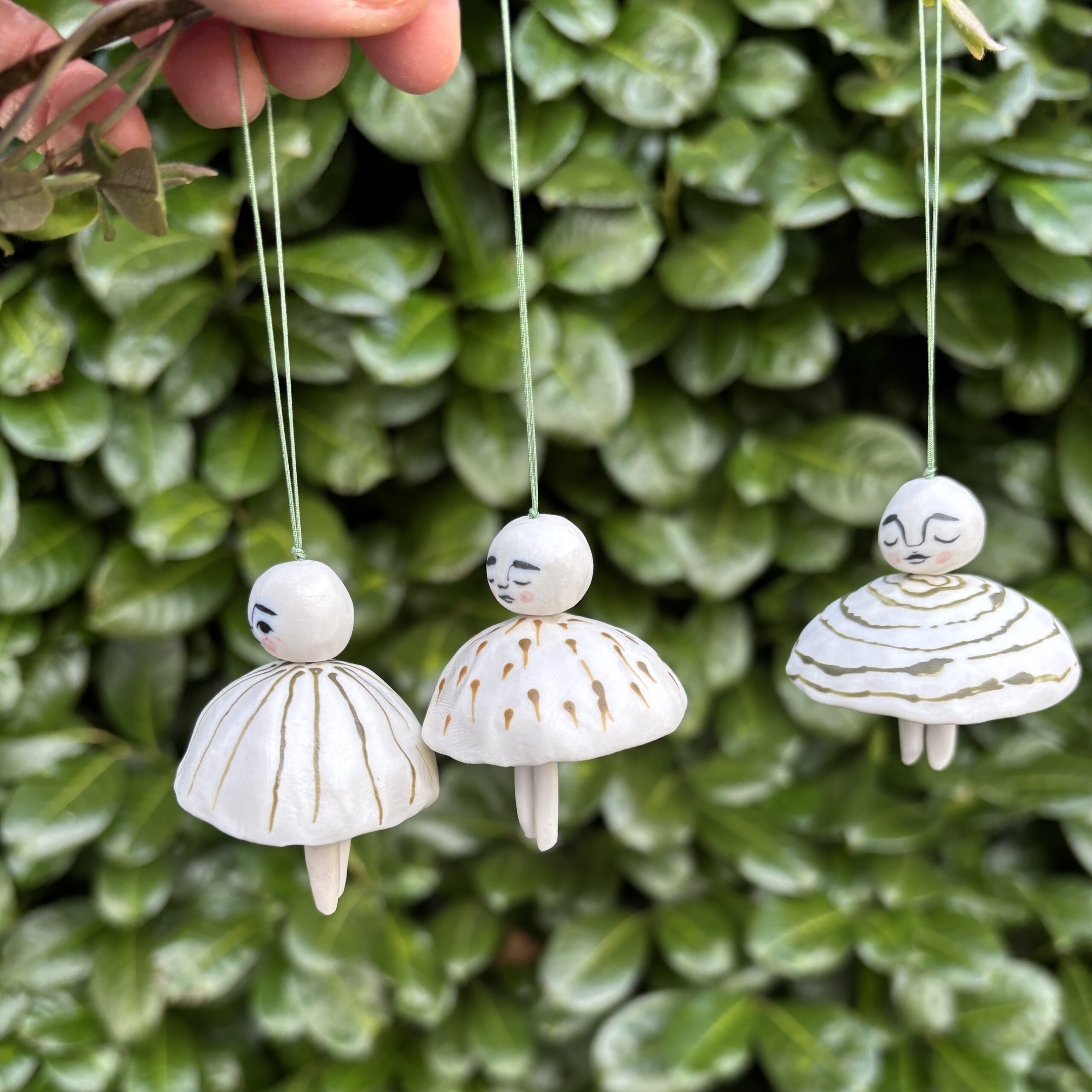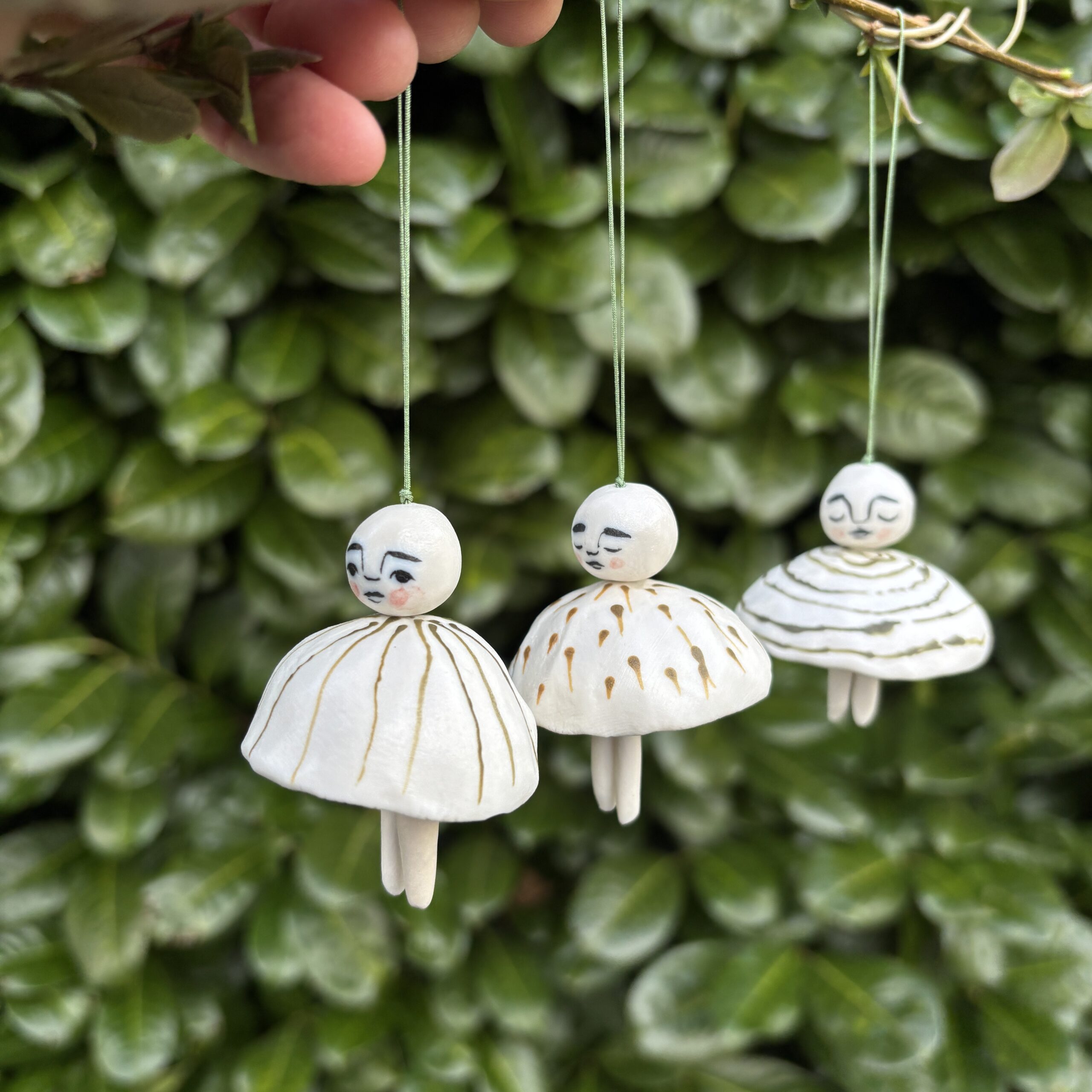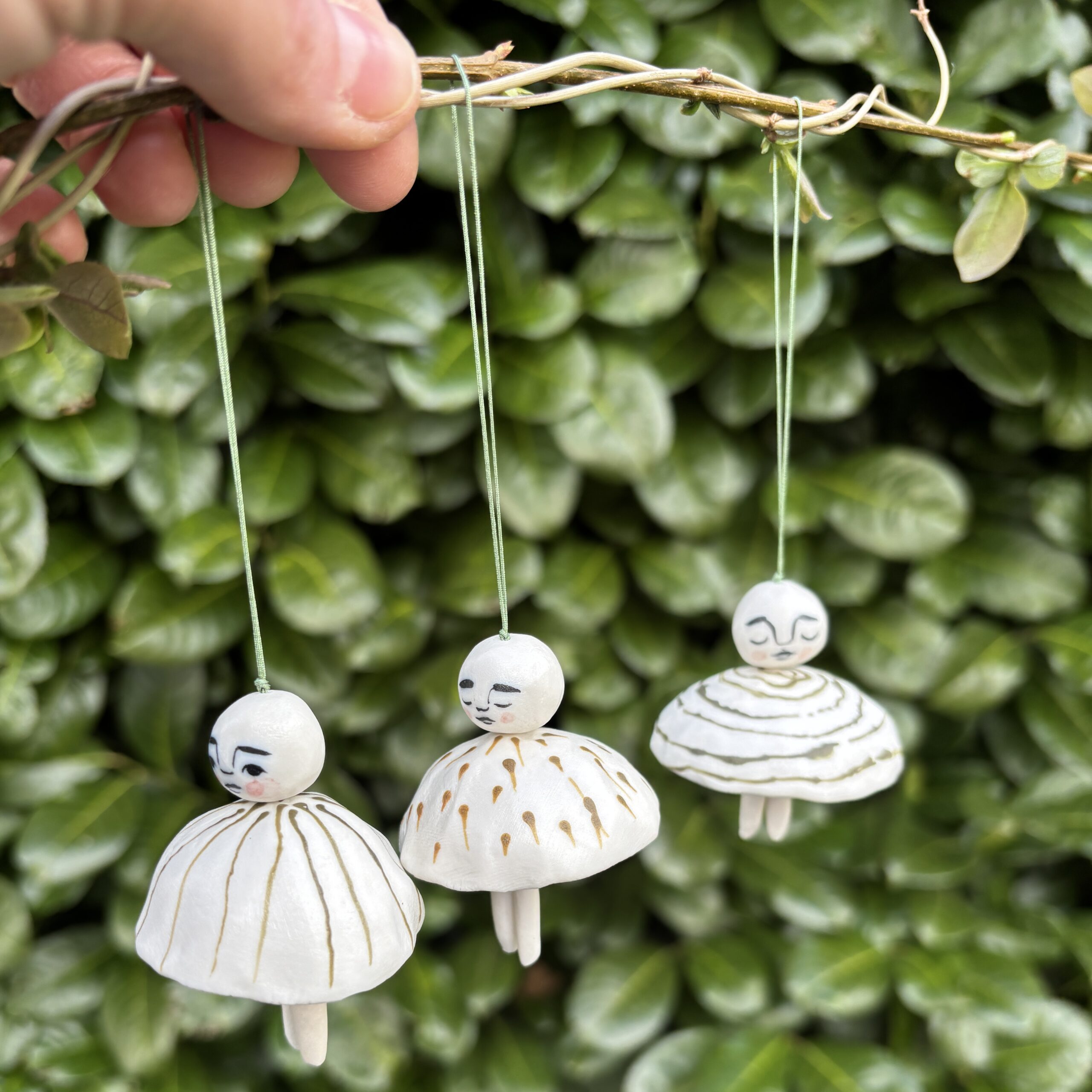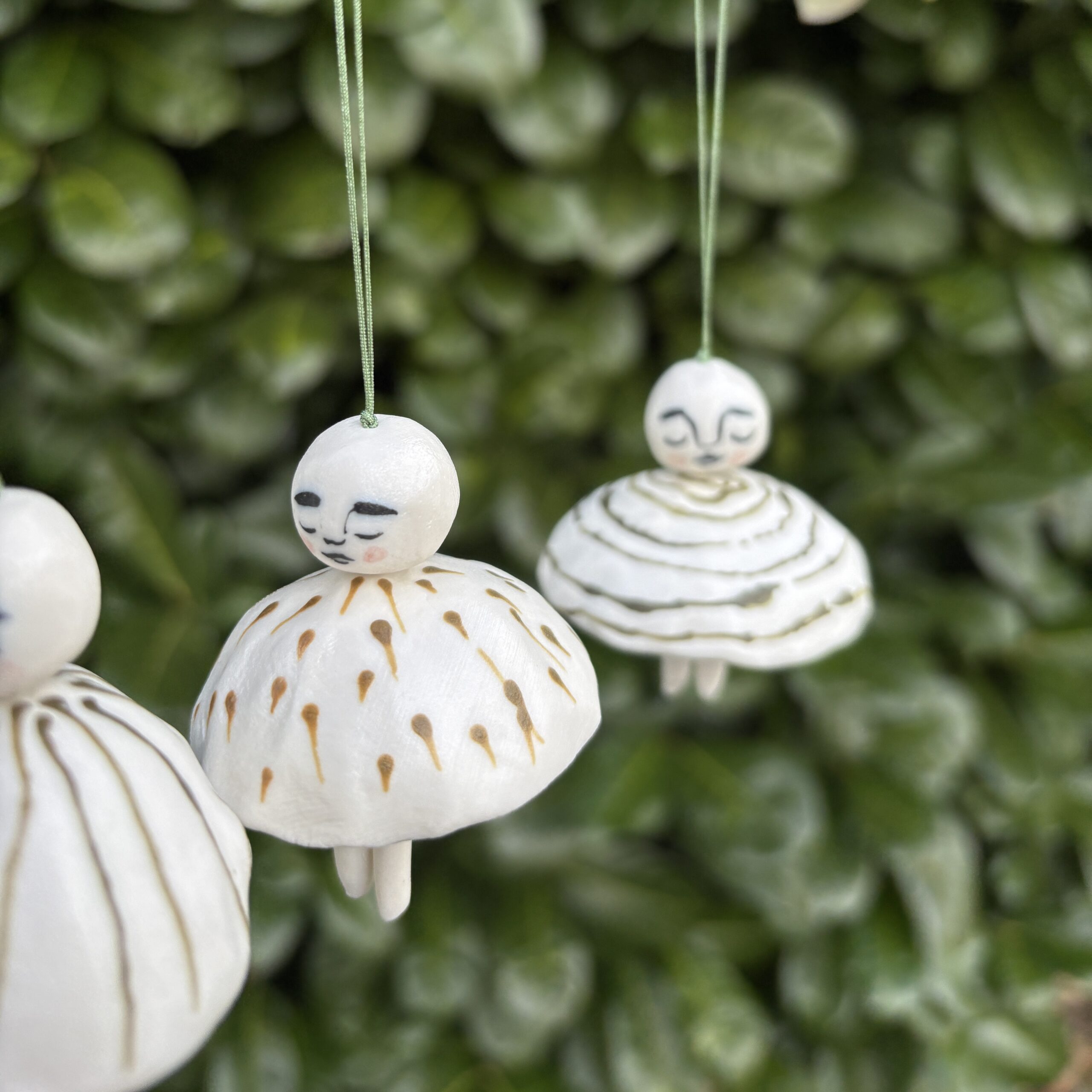 Klokkerne er lavet af porcelæn og dekoreret med glasur.