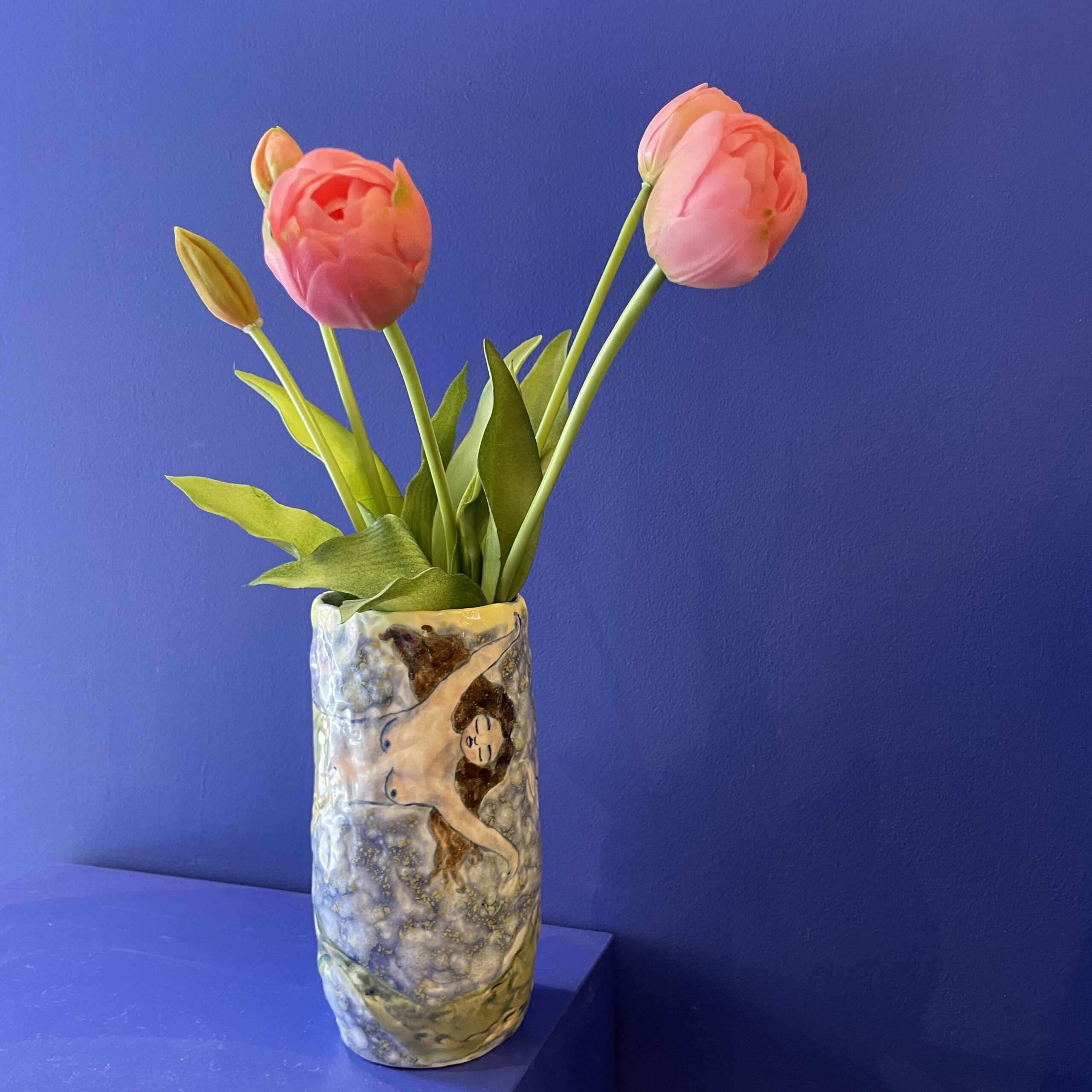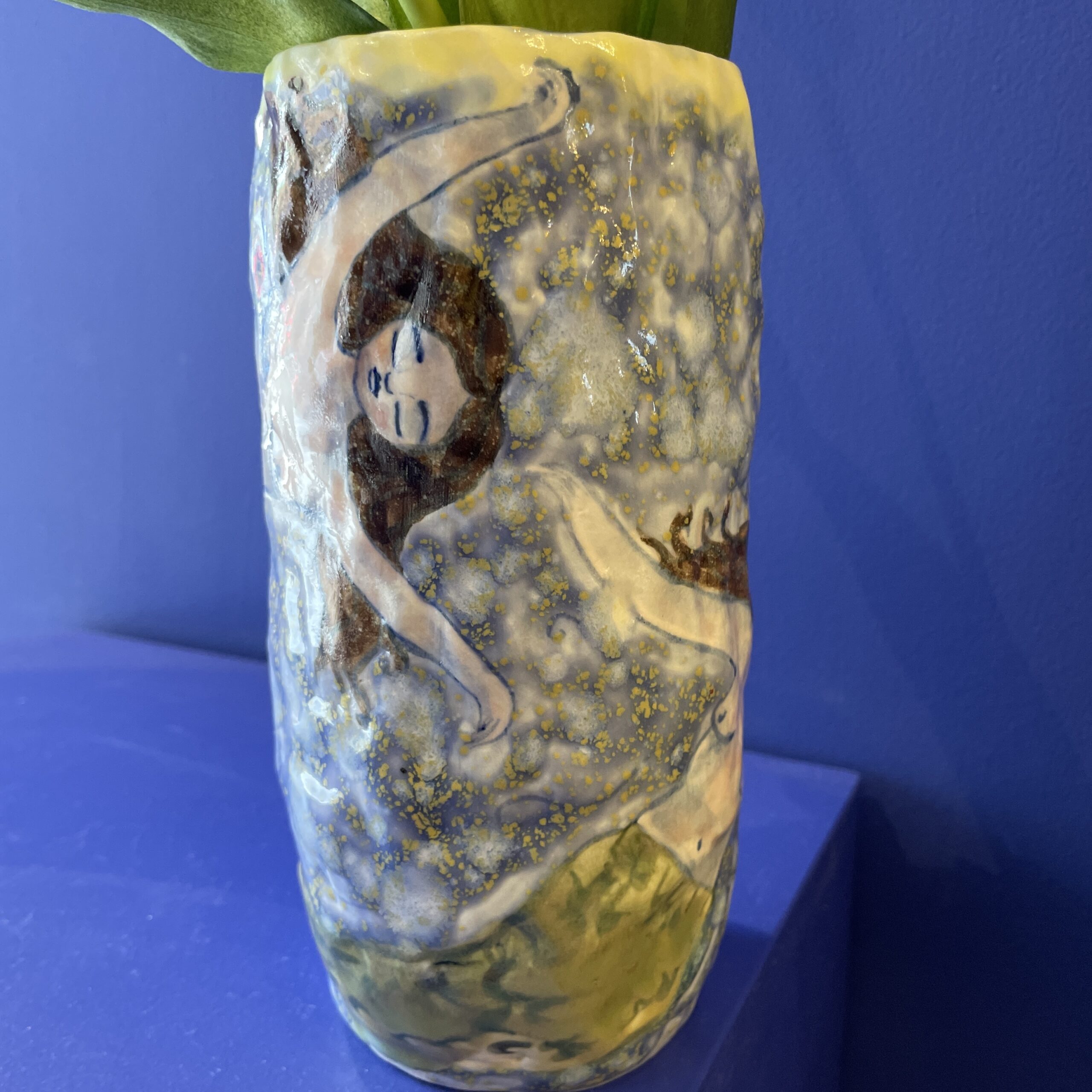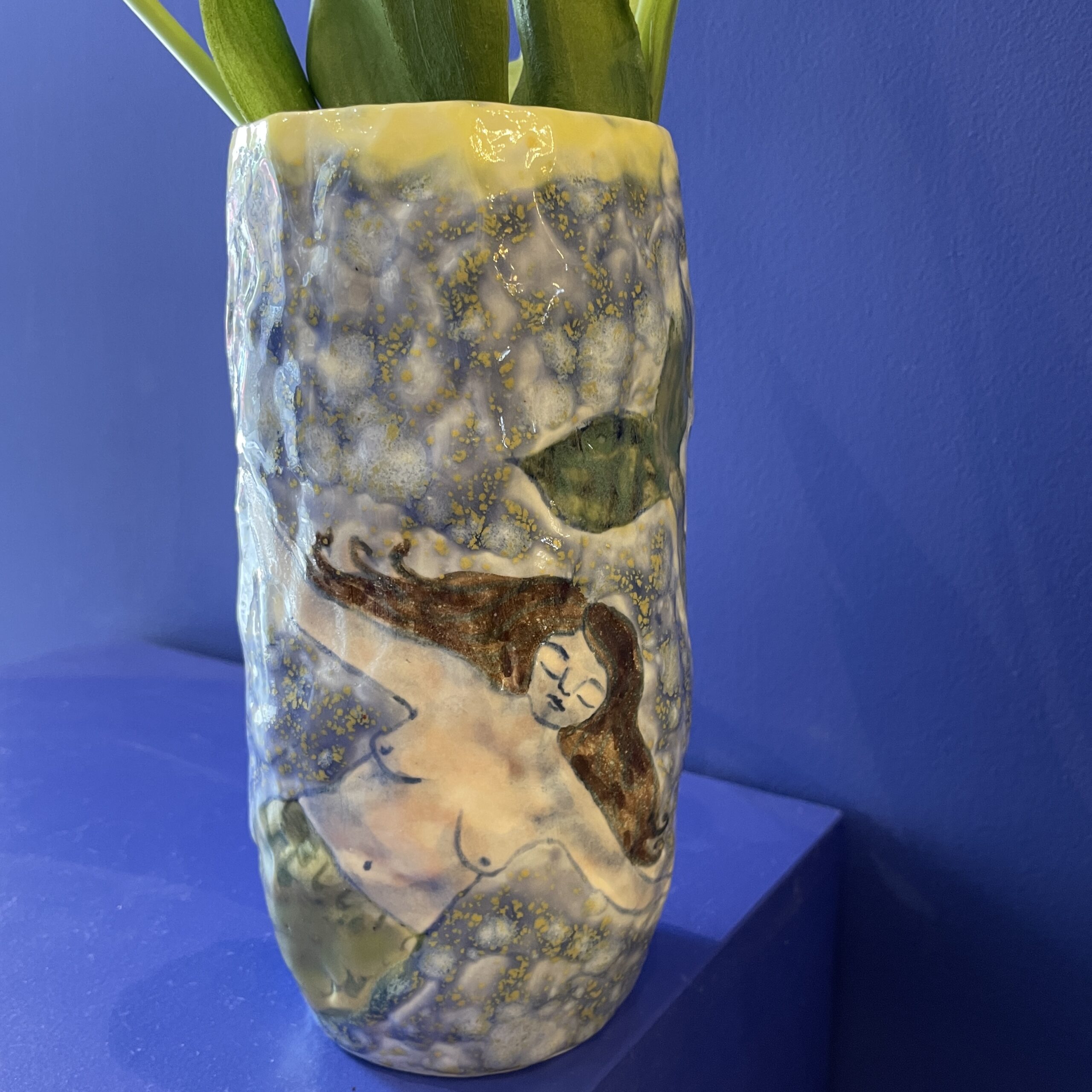 Vasen er lavet i porcelæn og dekoreret med glasur.