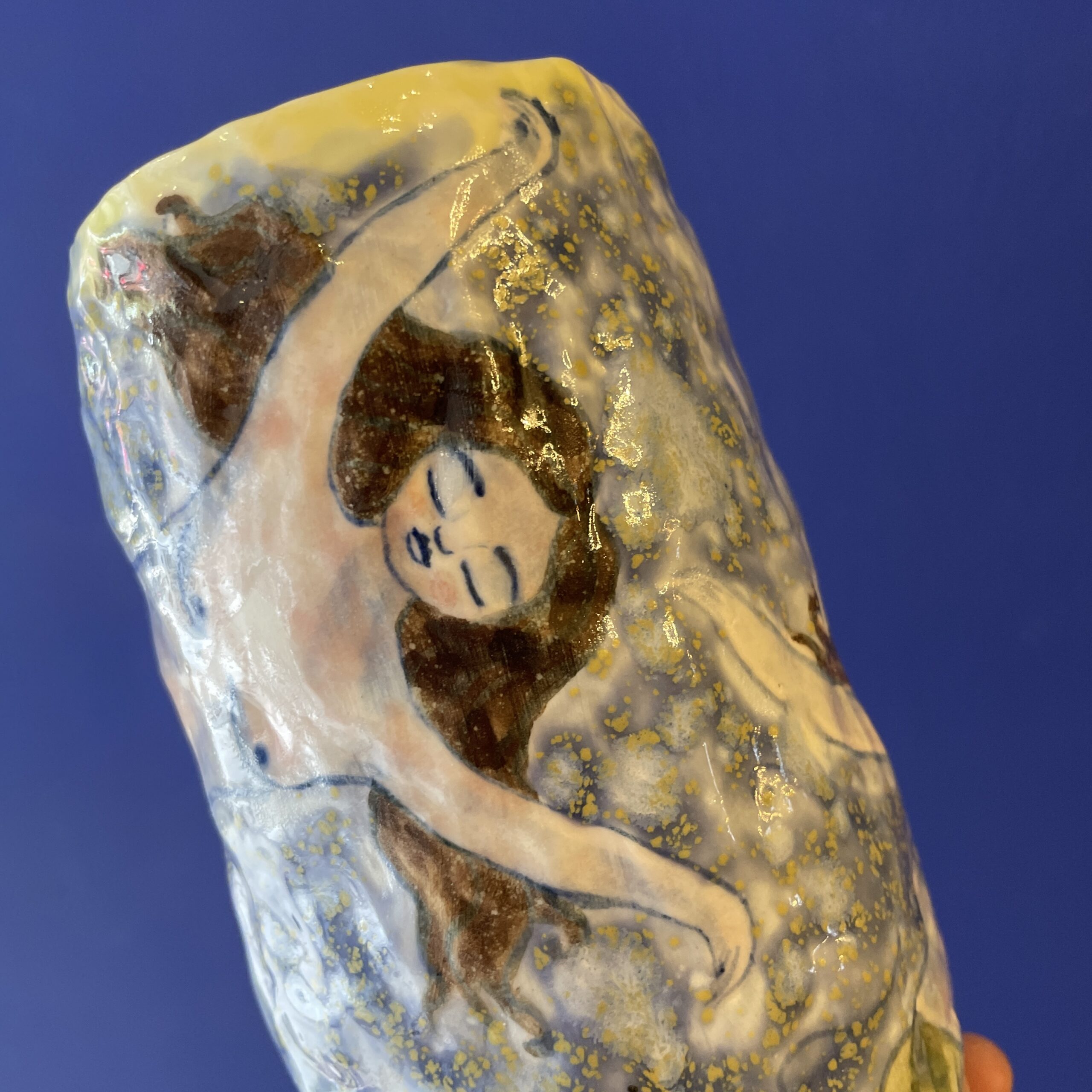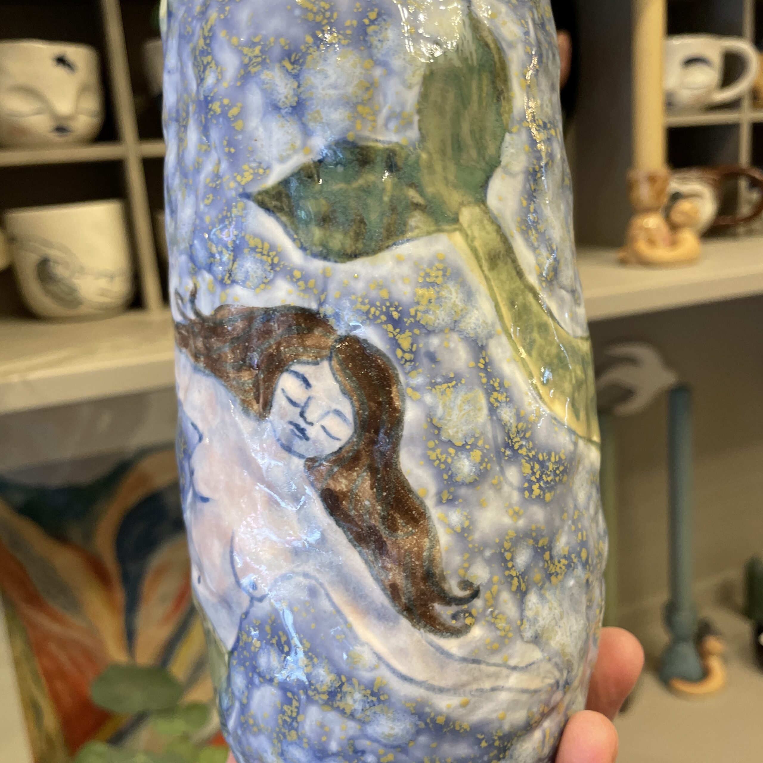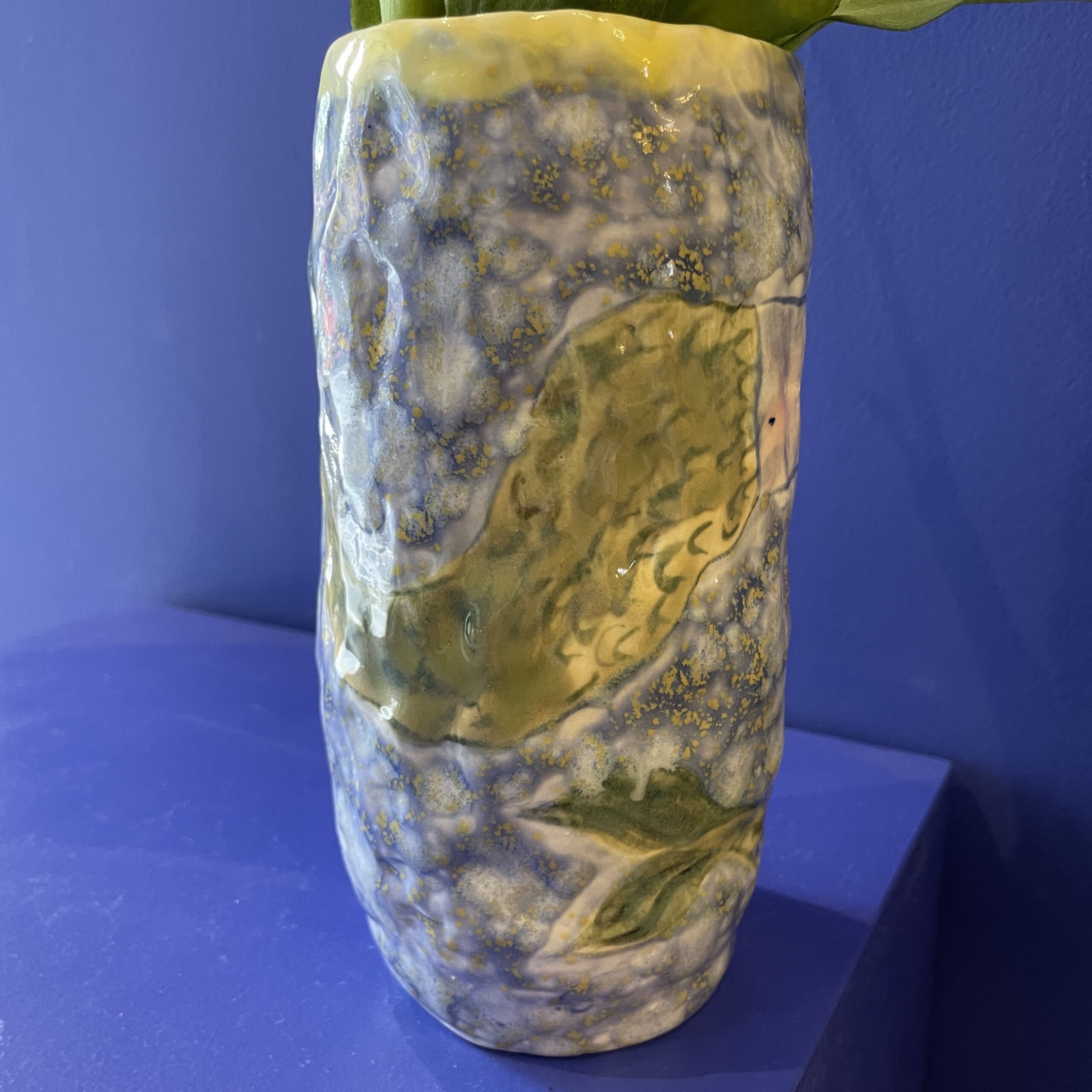 Vasen er lavet i porcelæn og dekoreret med glasur.
