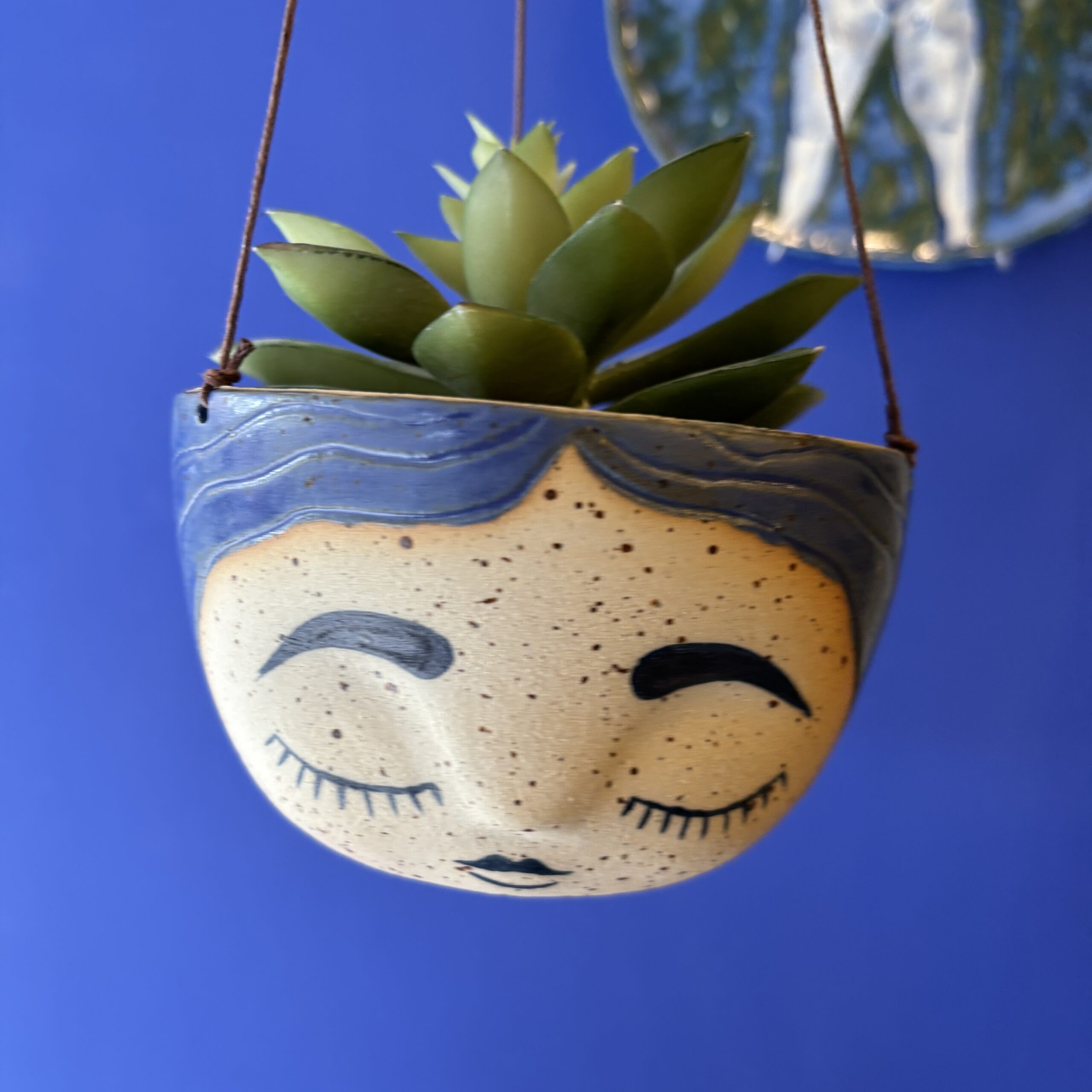 Hængepotte med yndigt ansigt – hæng potten i vinduet eller fra loftet i en krog. En potte der skaber hygge og stemning i hjemmet.