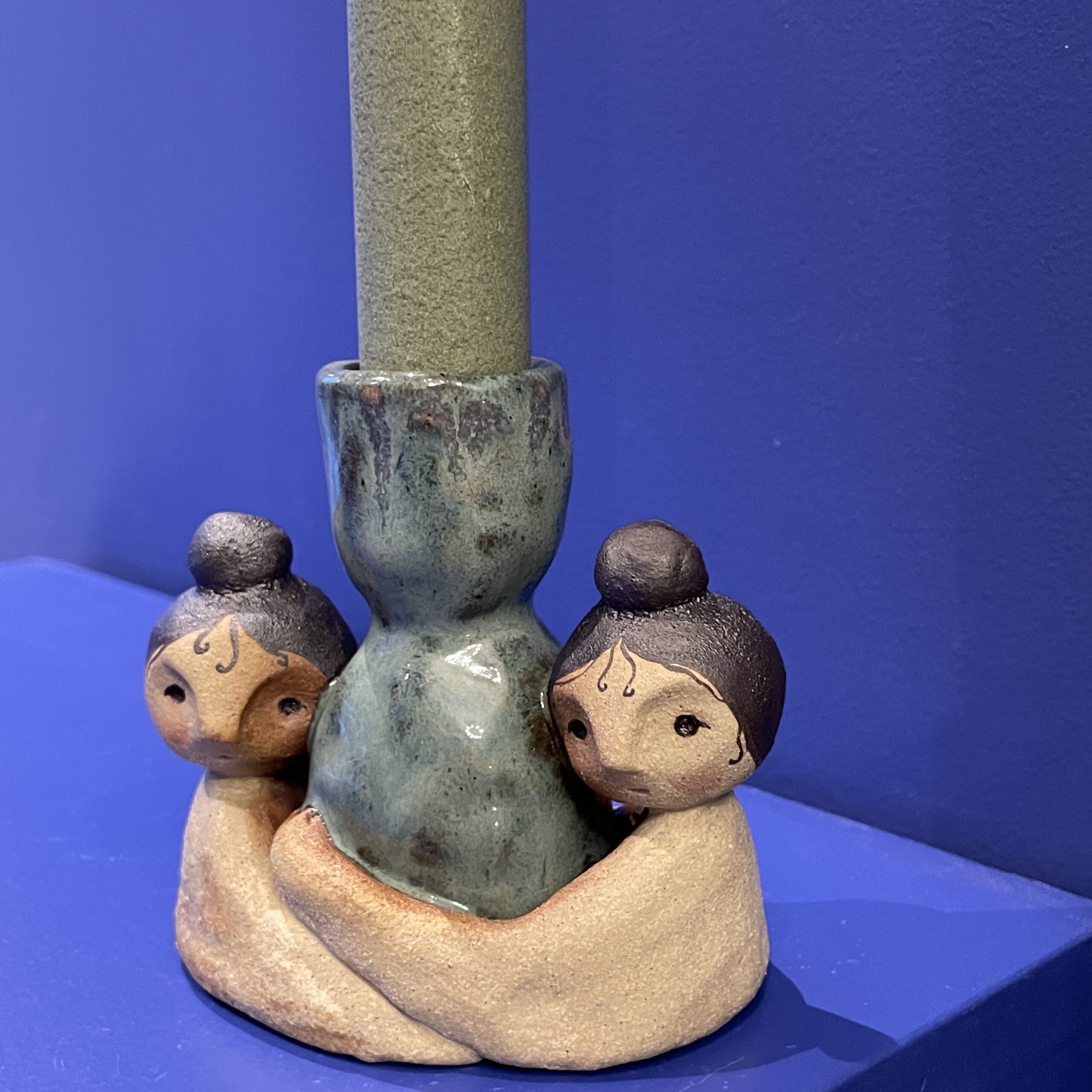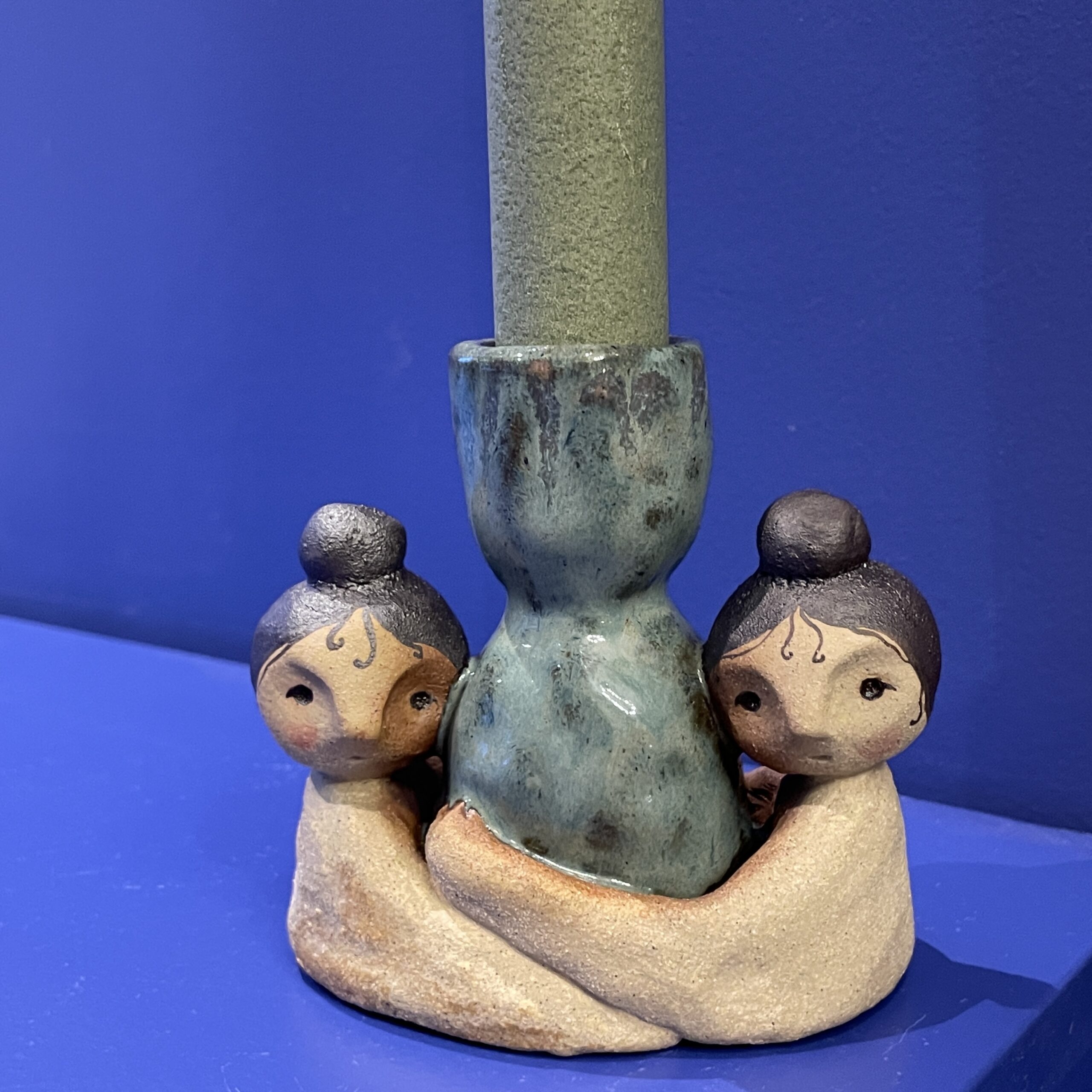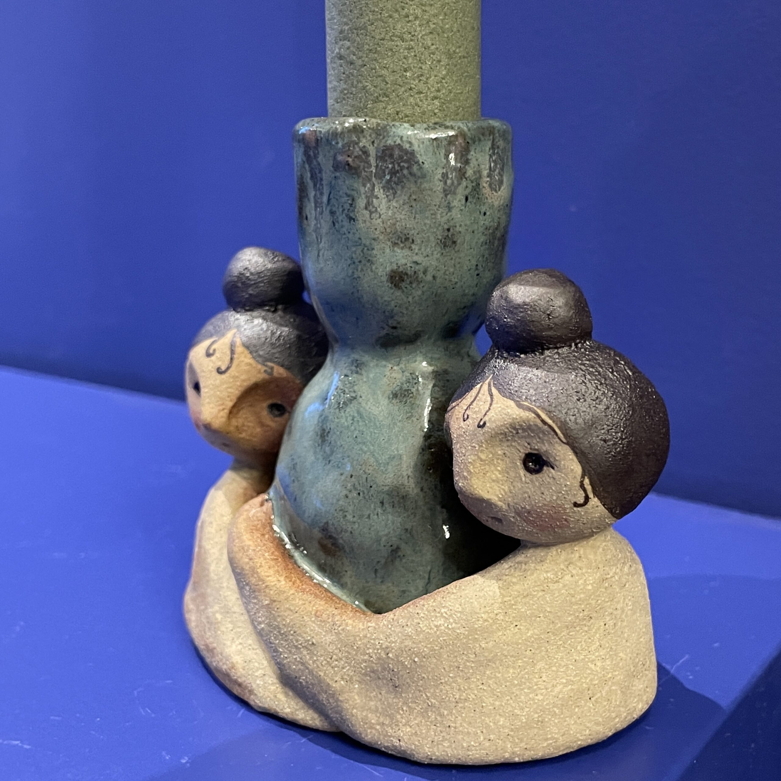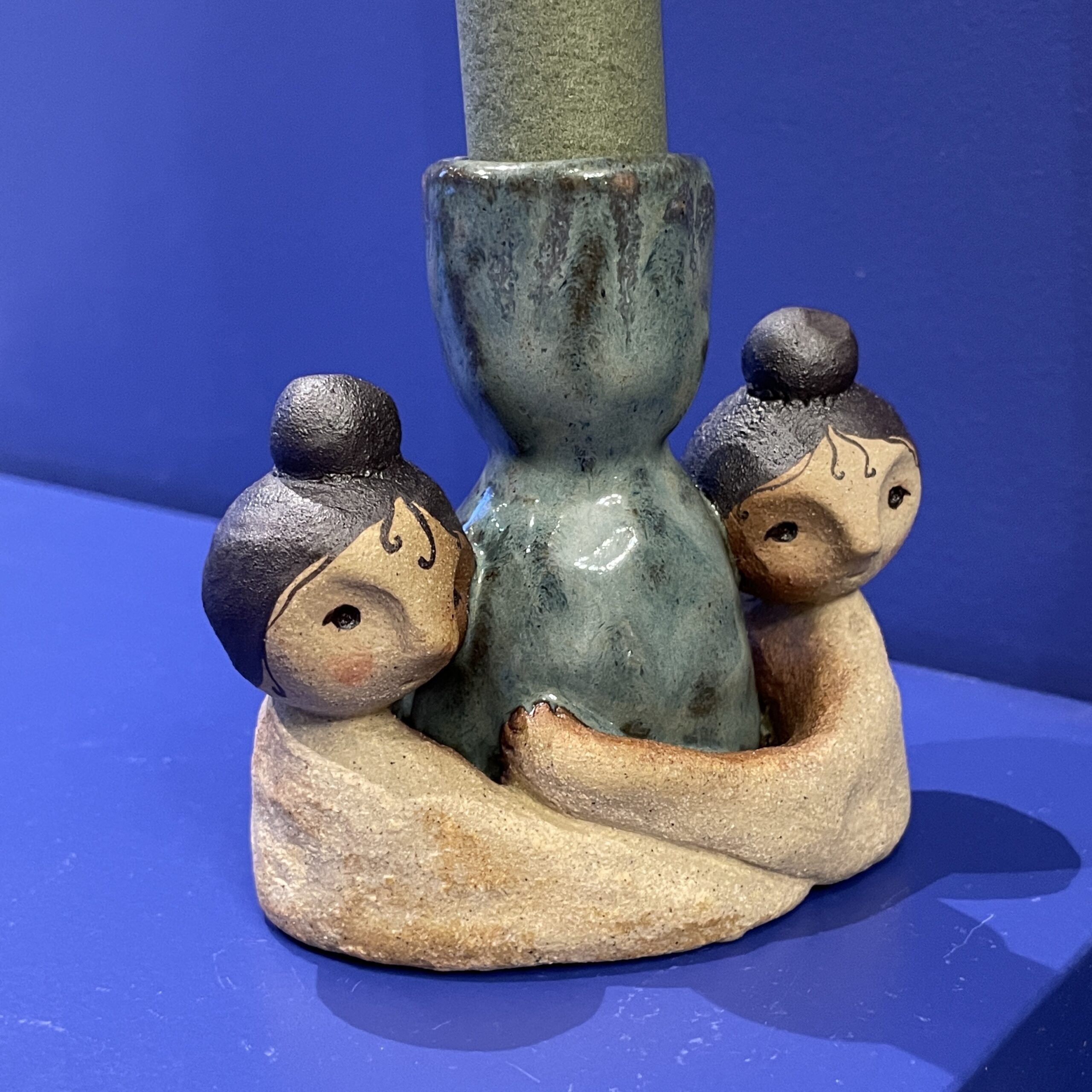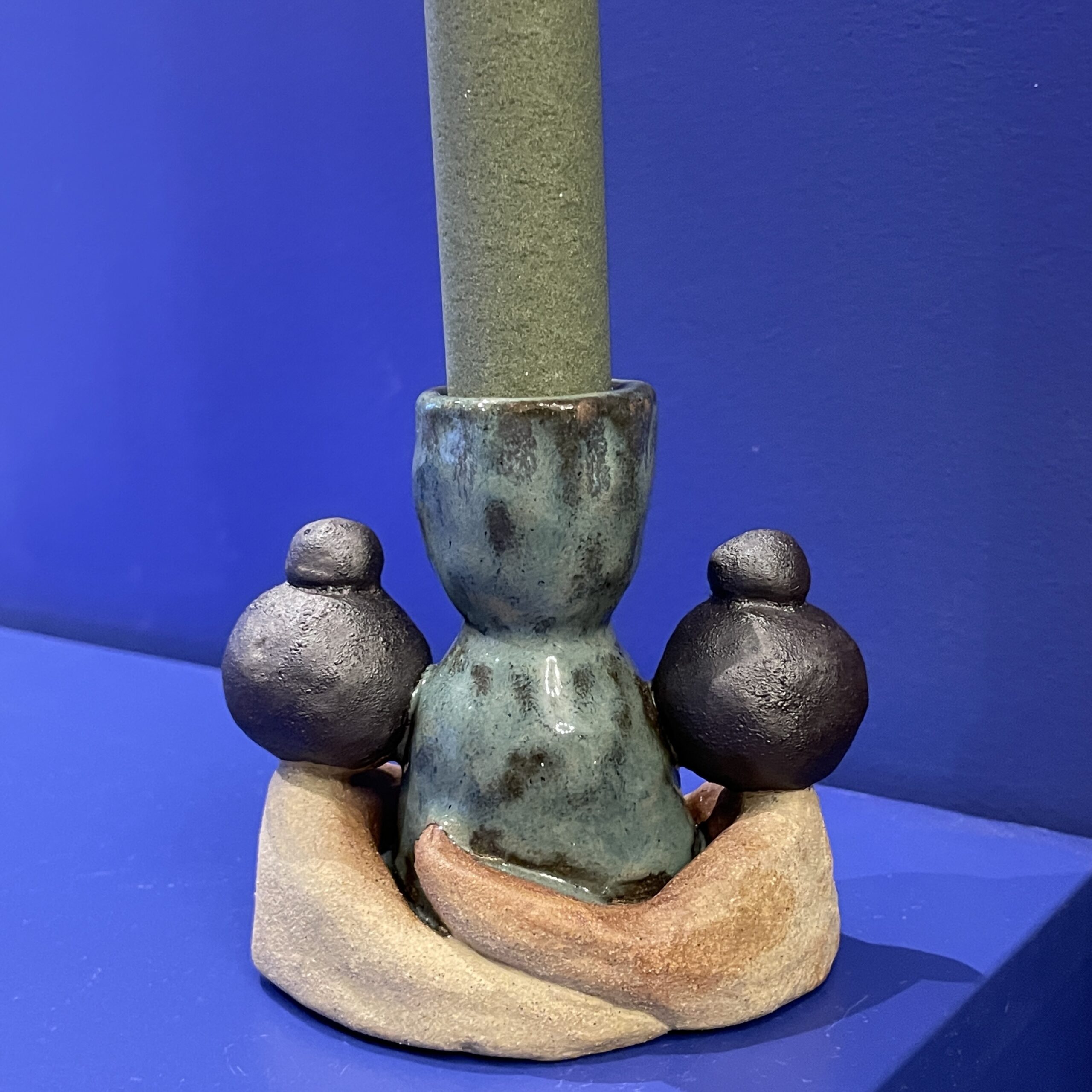 Stagen er håndlavet i stentøjsler og dekoreret med glasur.