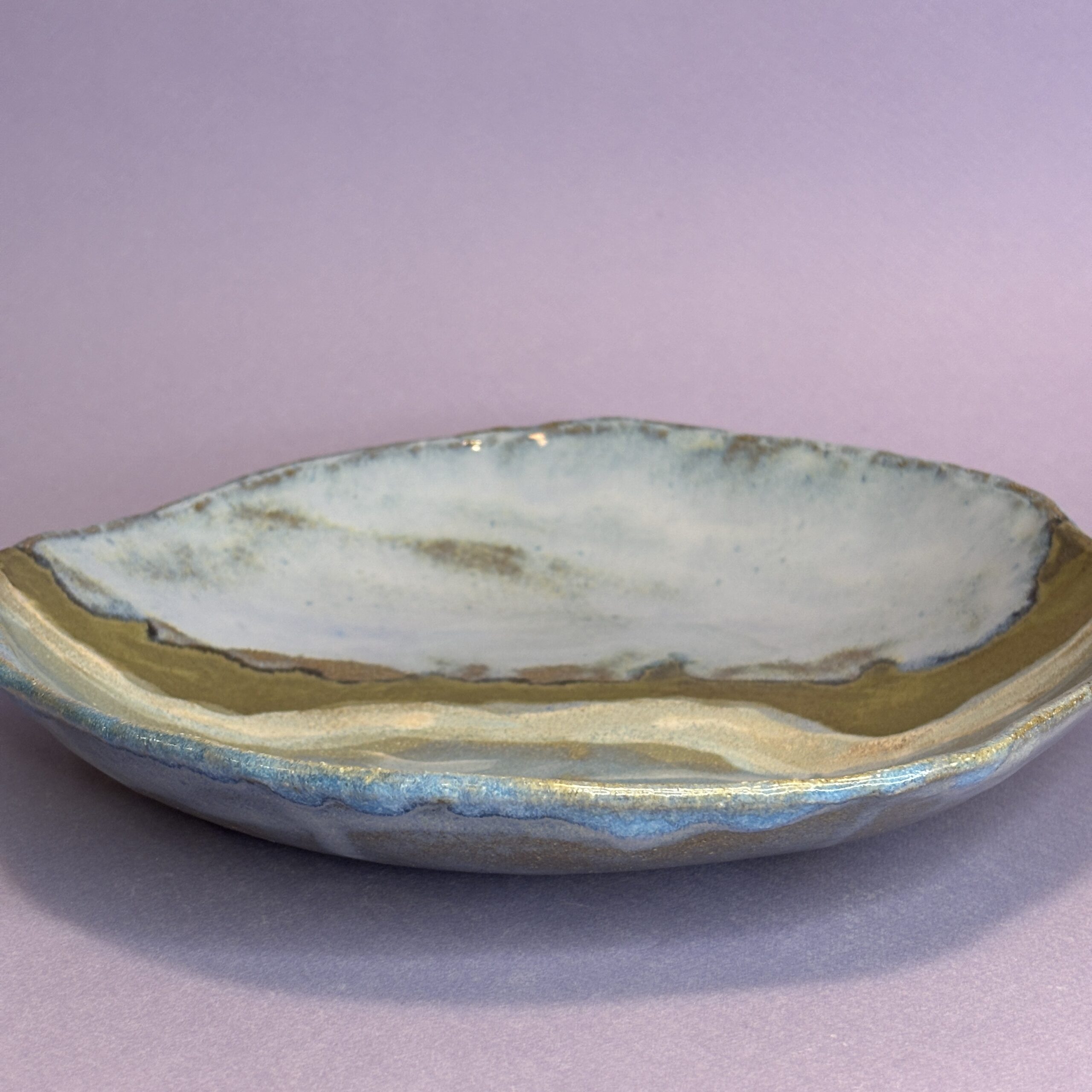 Skålen er modelleret i stentøjsler og dekoreret med glasur.