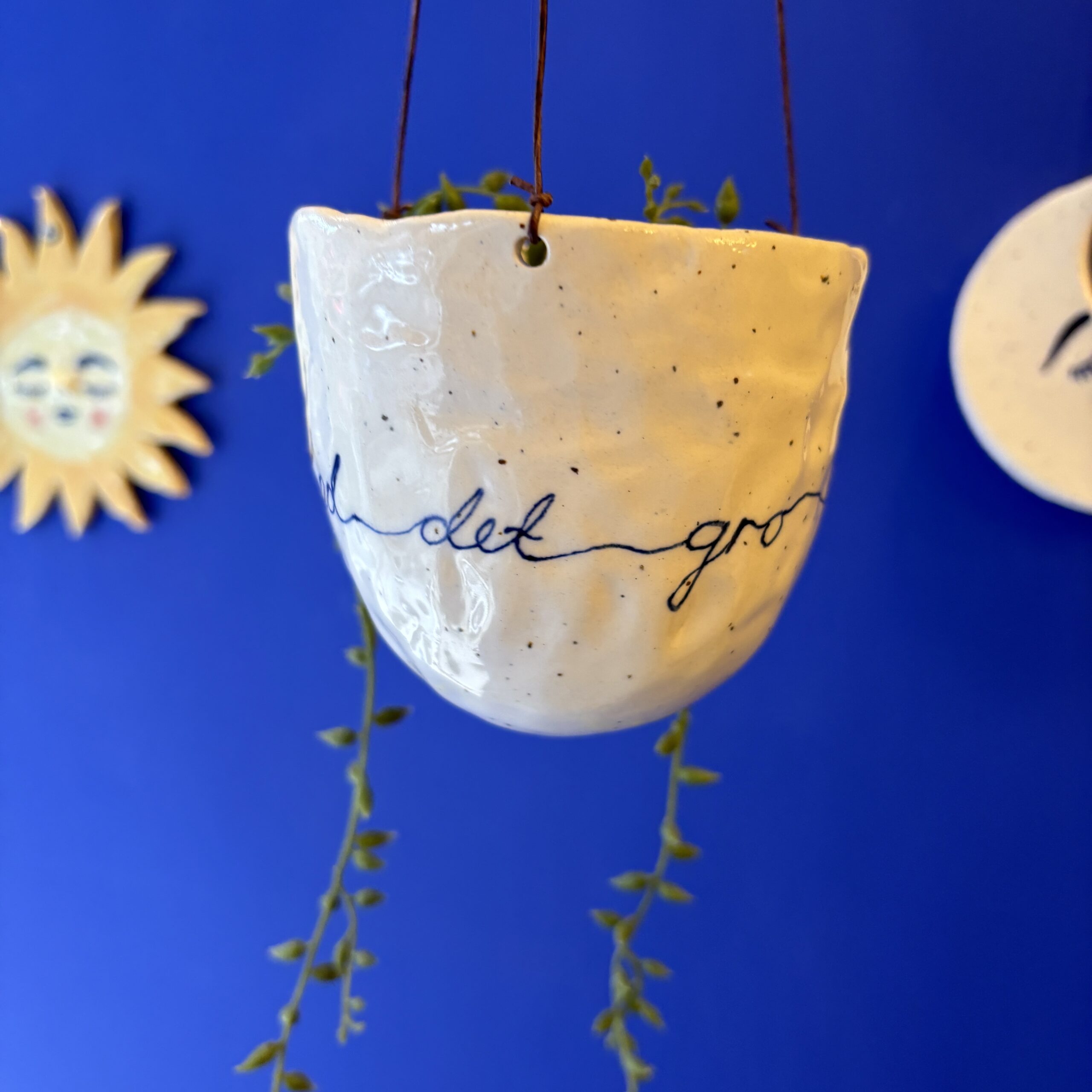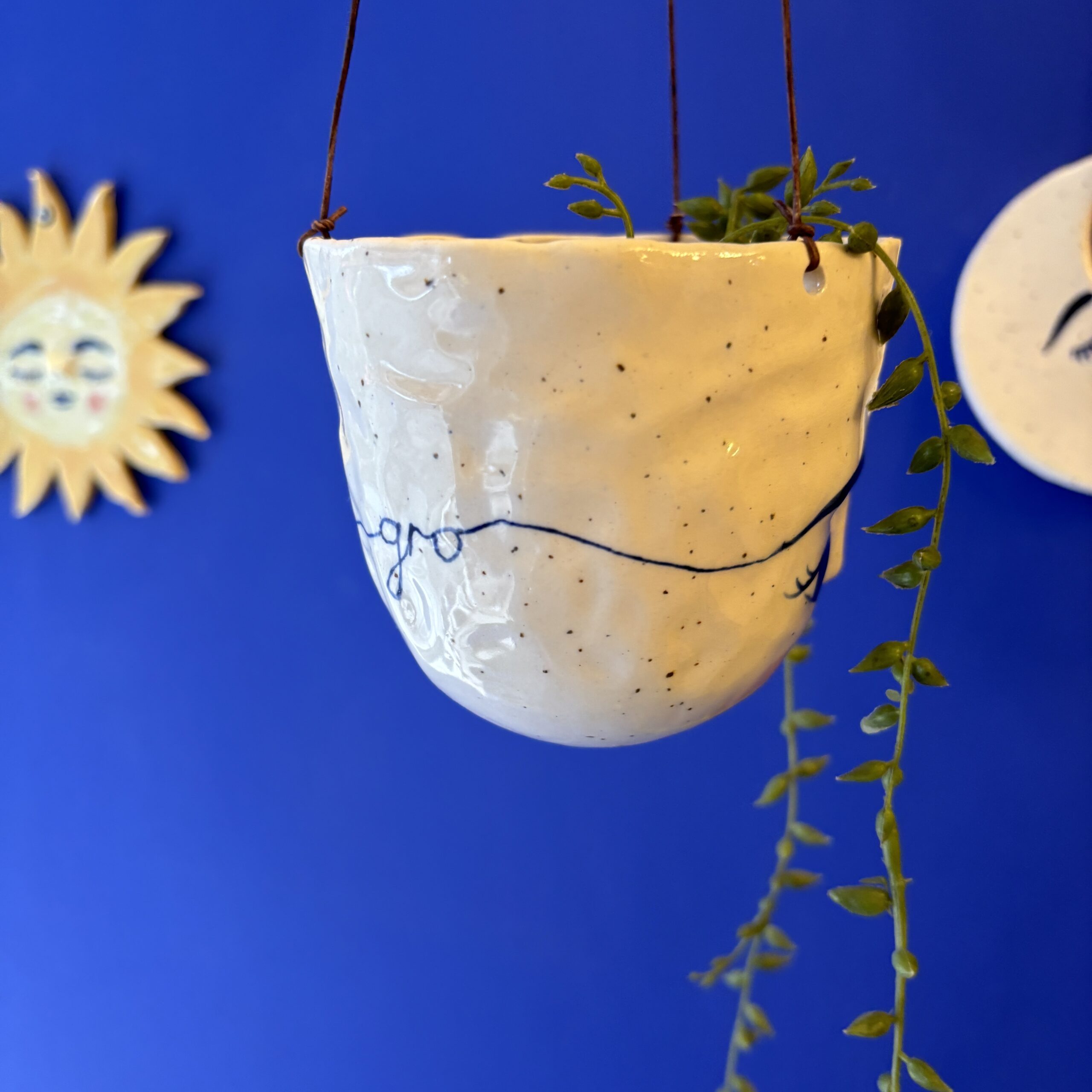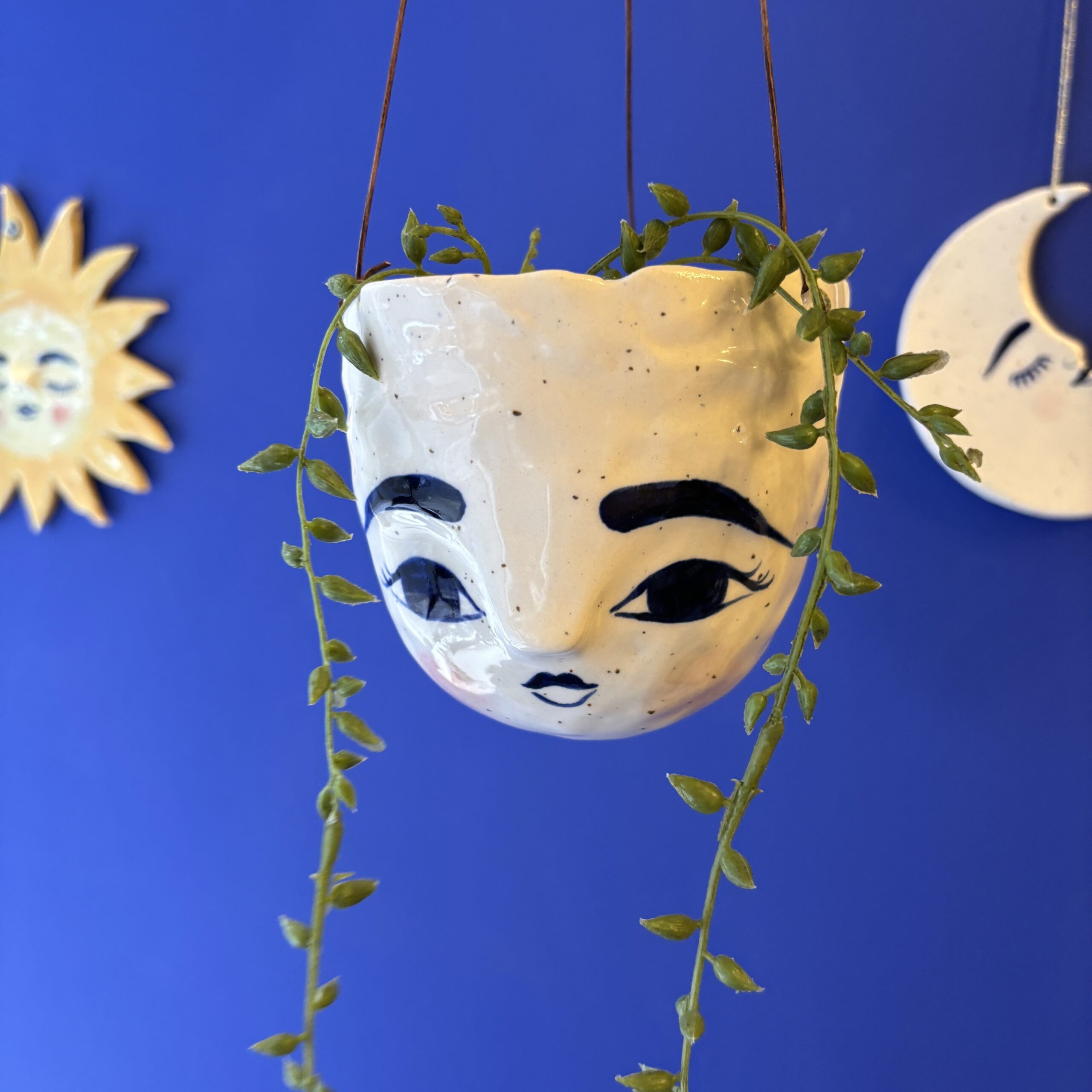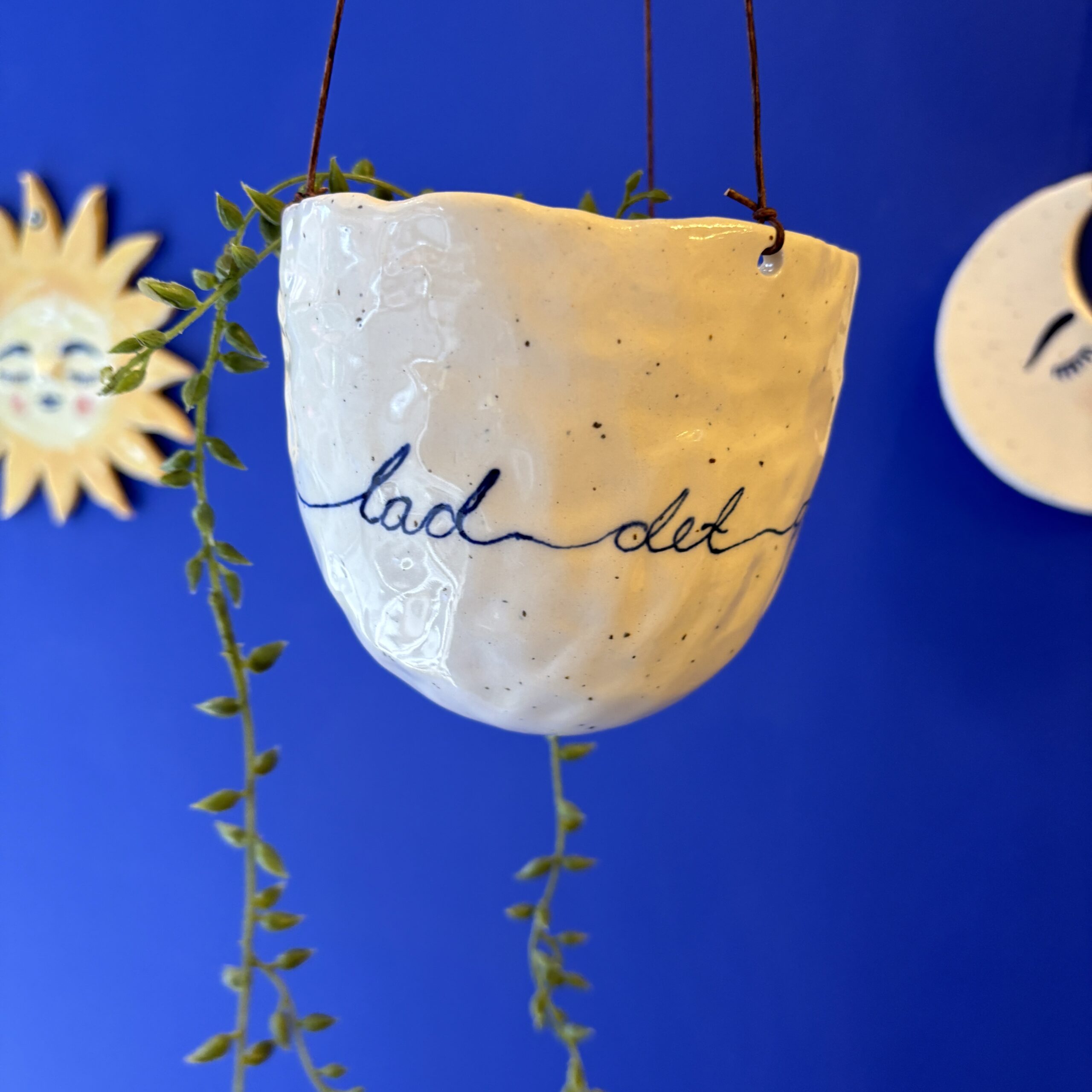 Hængepotte med yndigt ansigt – hæng potten i vinduet eller fra loftet i en krog. En potte der skaber hygge og stemning i hjemmet.