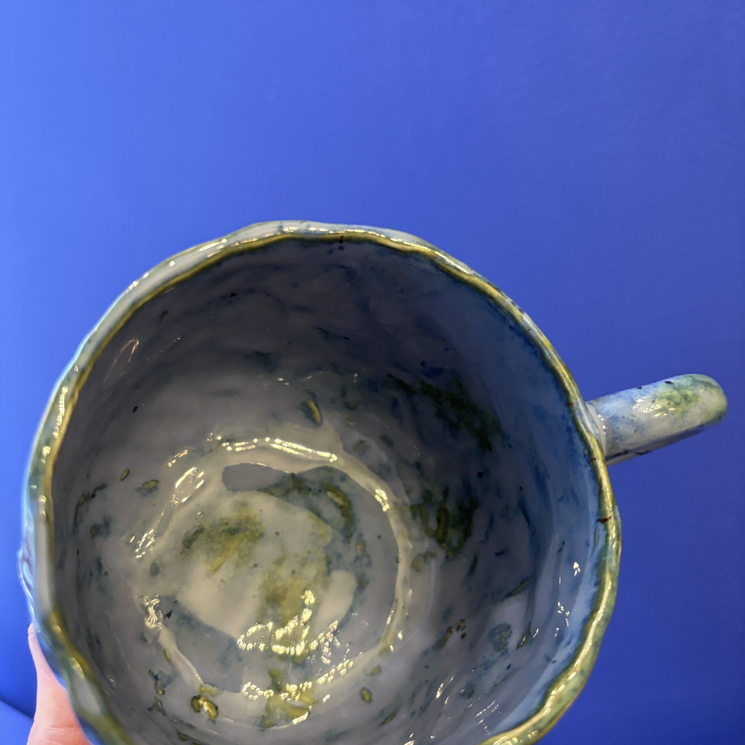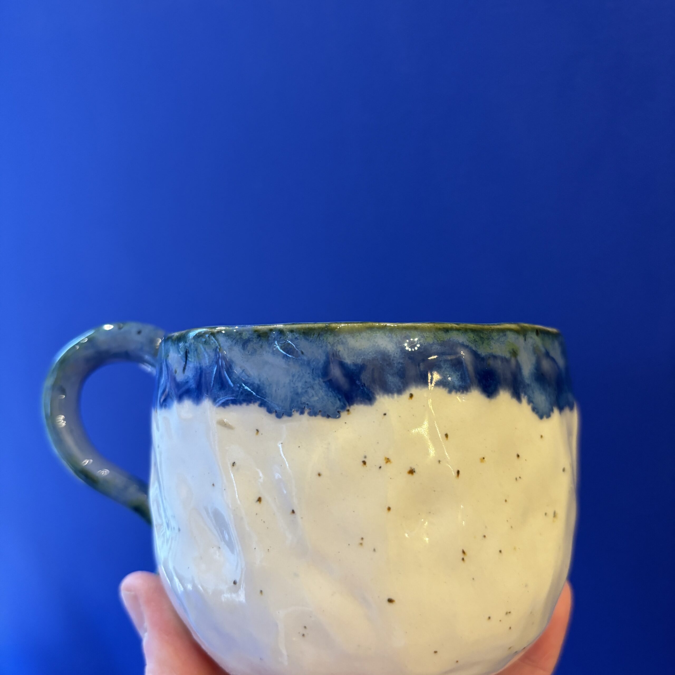 Koppen er håndlavet i stentøjsler og dekoreret med glasur.