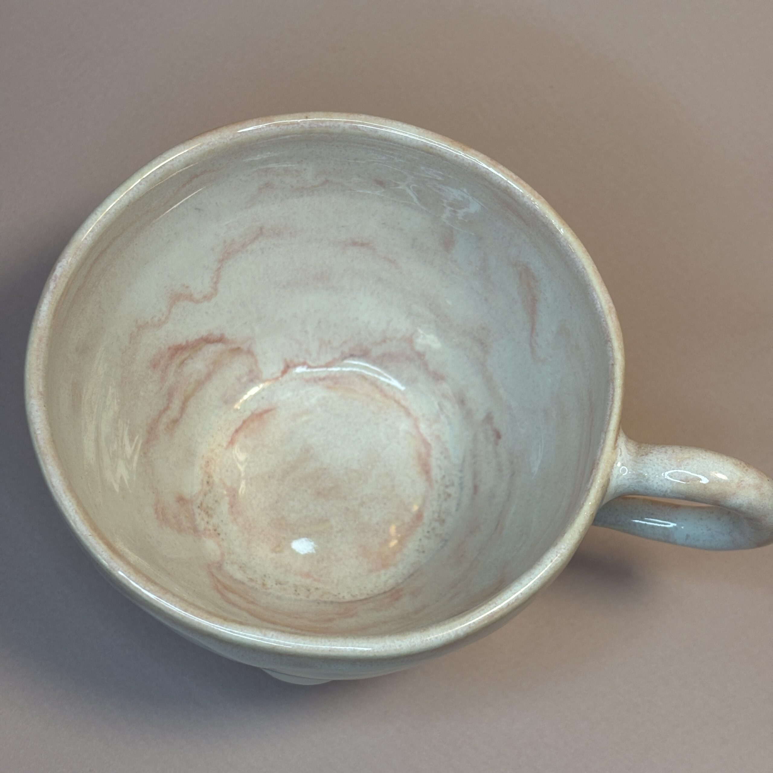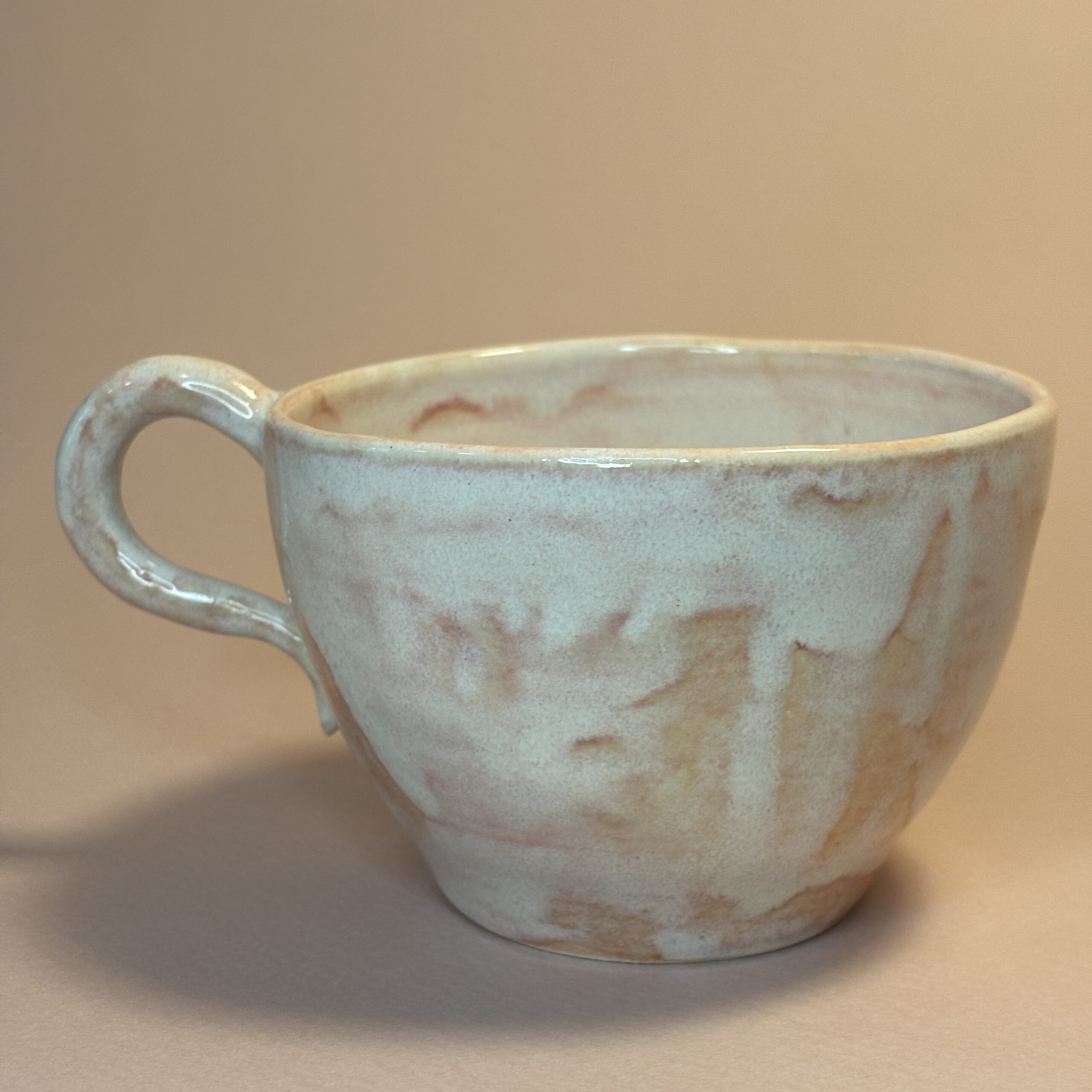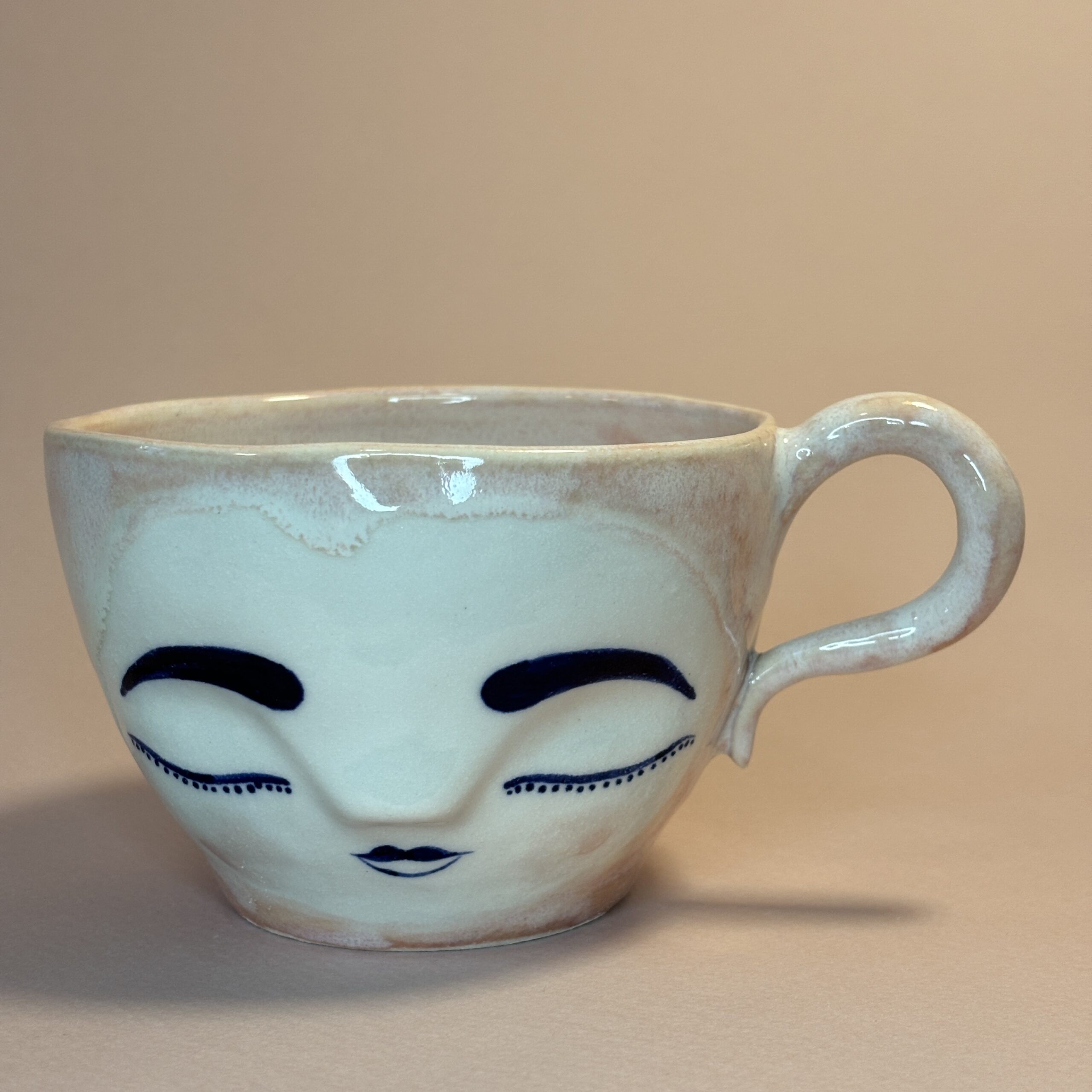 Koppen er håndlavet i porcelæn og dekoreret med glasur.