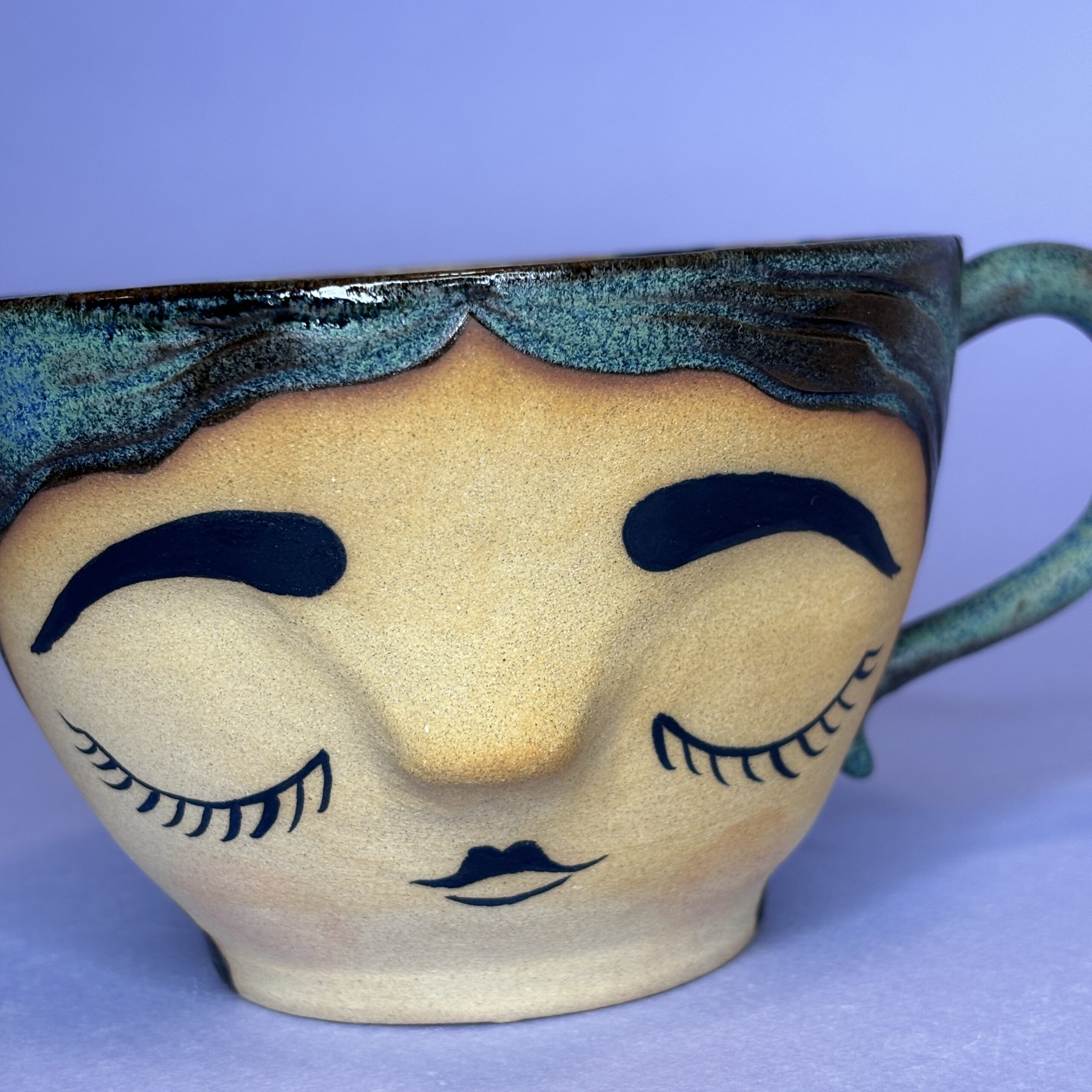Ansigtskop med eget udtryk og massere af personlighed. Lad dine hænder hvile på kinderne og mærk roen og forbindelsen til hende.