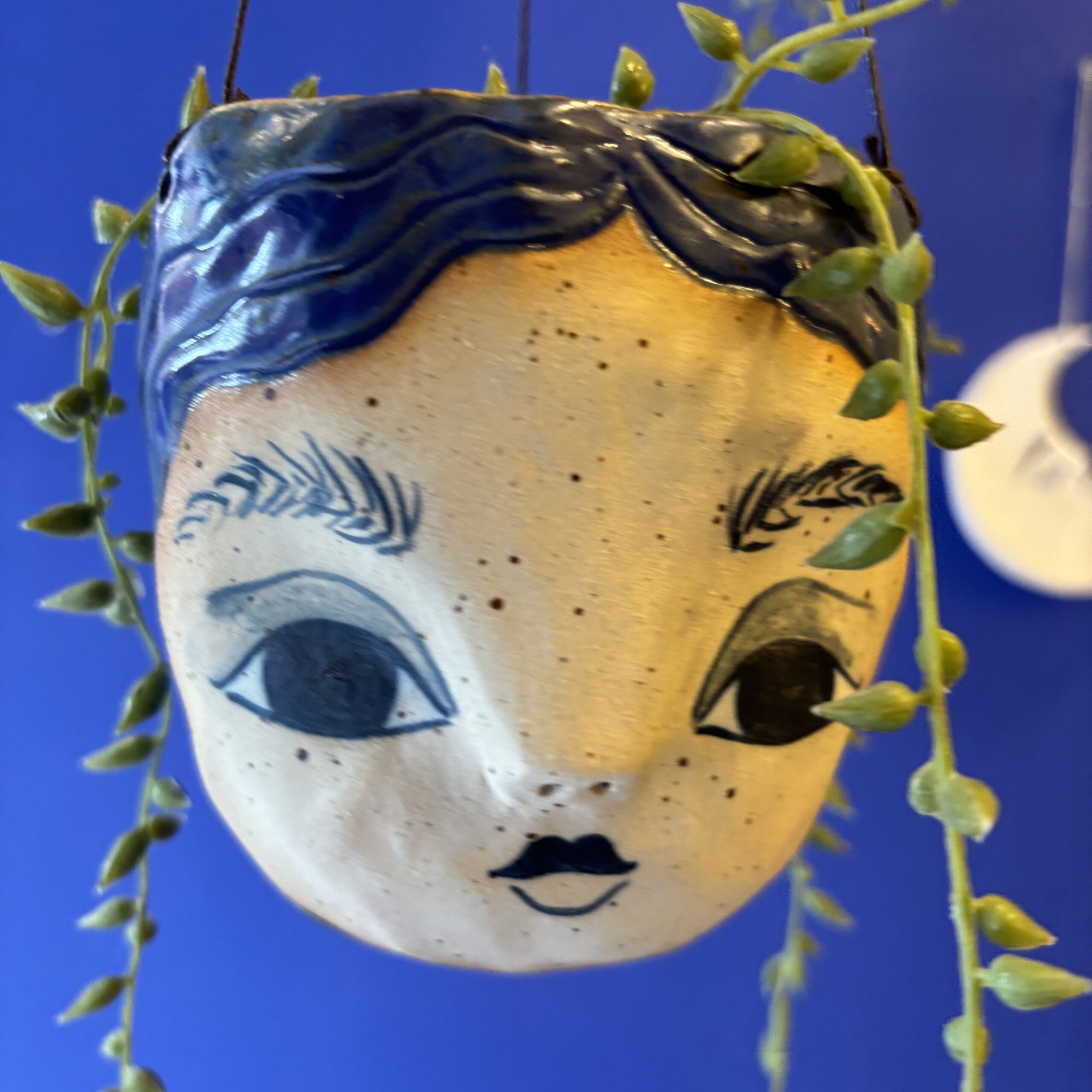 Hængepotte med yndigt ansigt – hæng potten i vinduet eller fra loftet i en krog. En potte der skaber hygge og stemning i hjemmet.