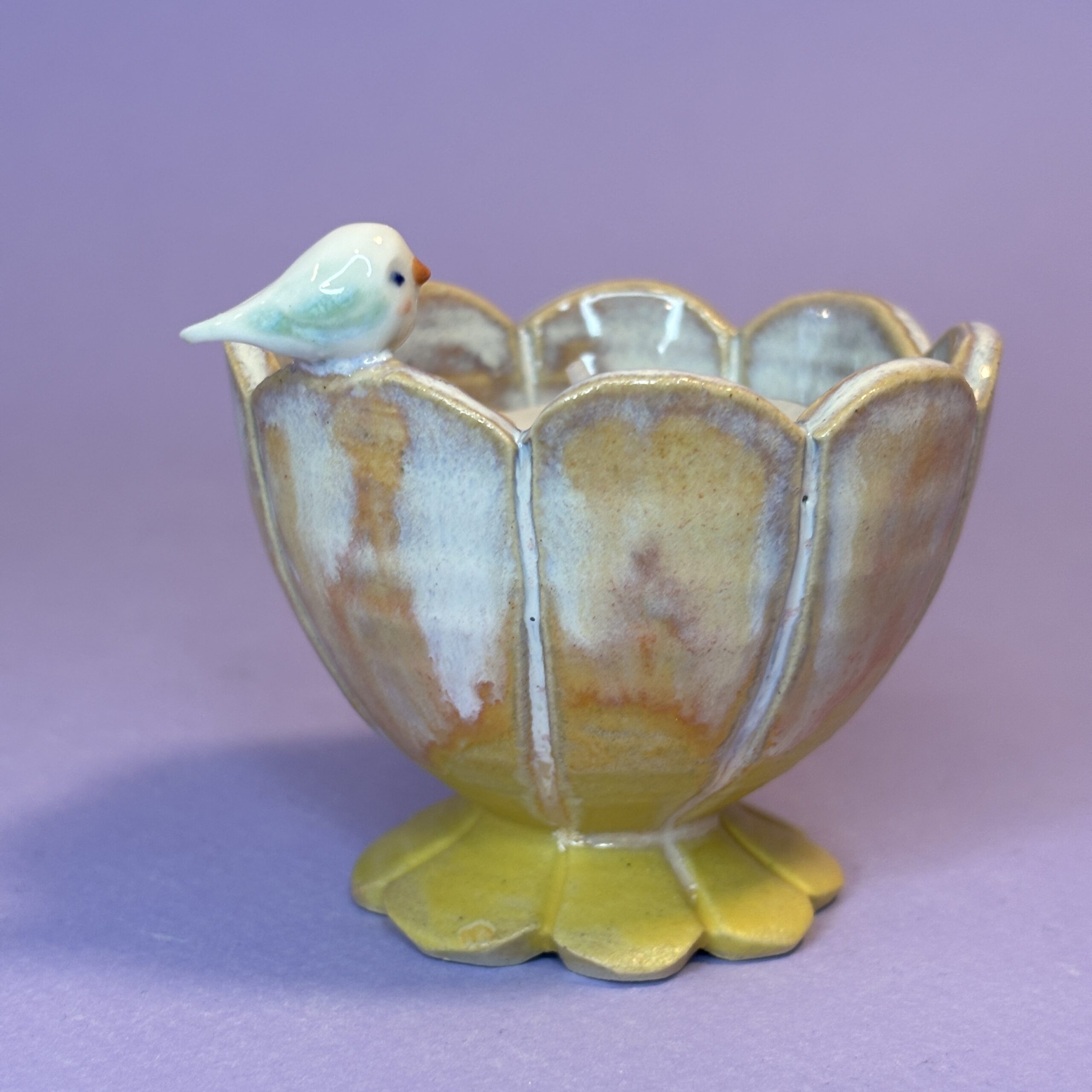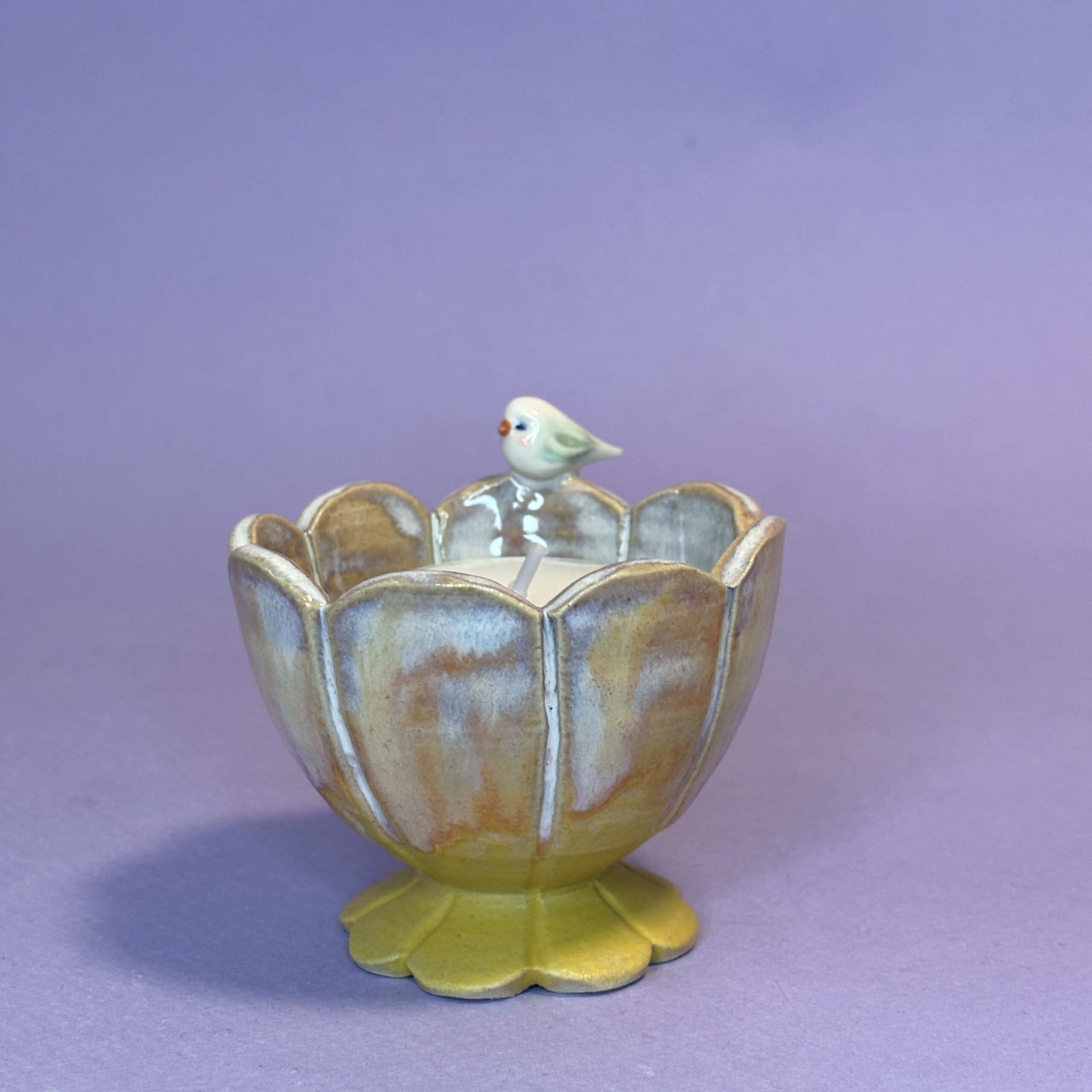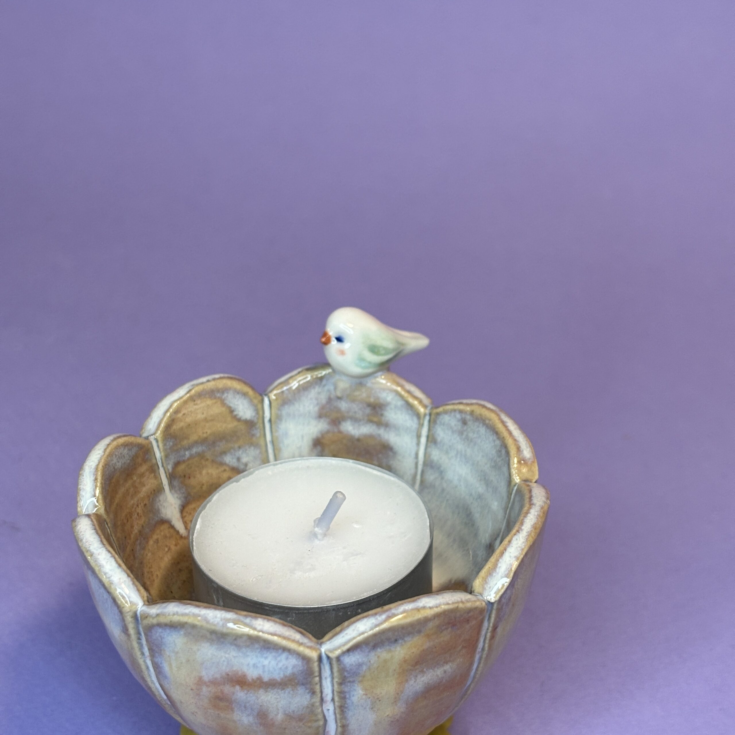 Elegant keramikskål med lille fugl, der bringer lyset ind i dit hjem. Lad fuglen i stilhed vogte over lysets flamme. Lysestagen skaber øjeblikke af nærvær og hygge ved spisebordet, i vindueskarmen eller som en smuk detalje på en stak bøger. Perfekt som stemningsskaber på mørke aftener eller som en meningsfuld gave, der symboliserer lys og nærvær.