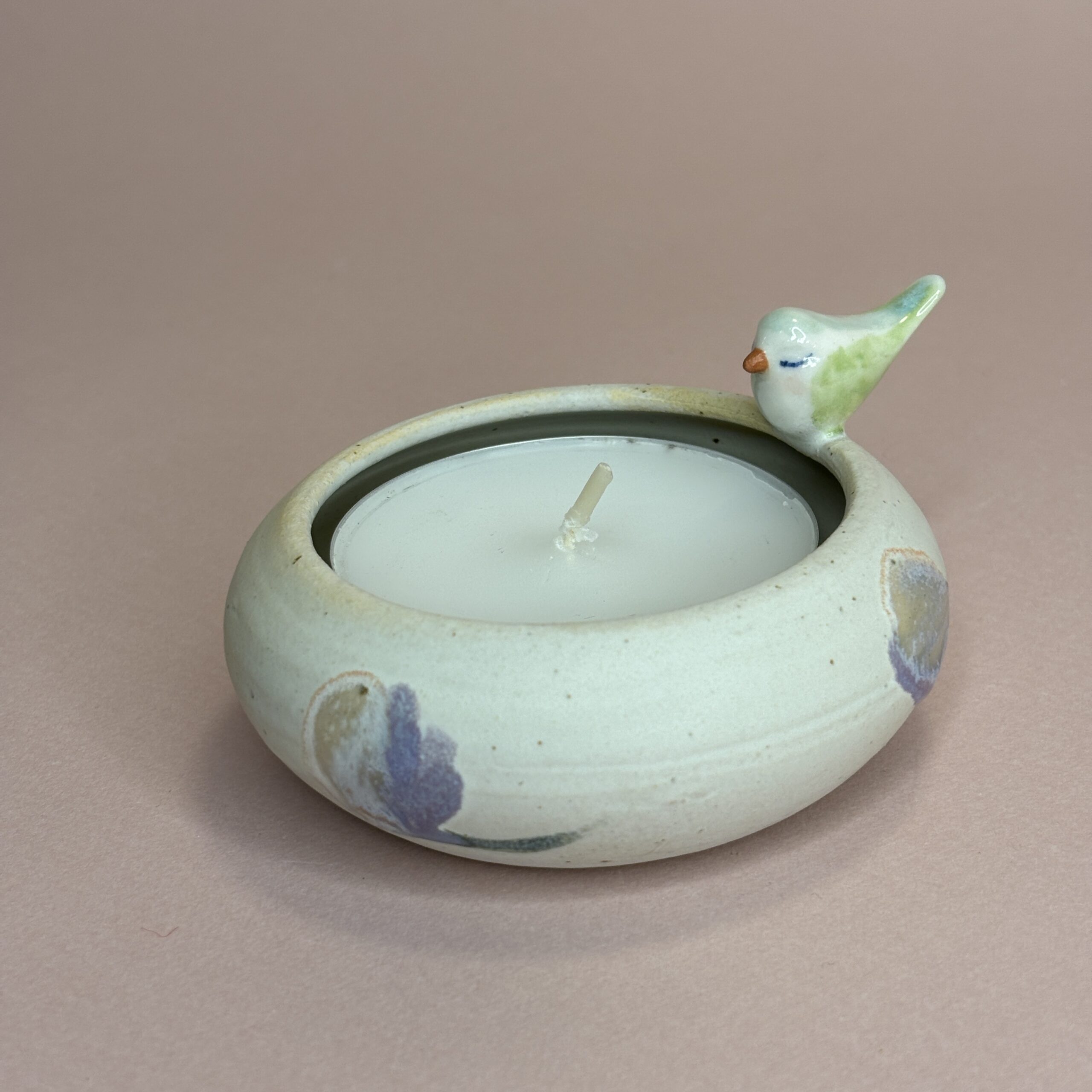 Elegant keramikskål med lille fugl, der bringer lyset ind i dit hjem. Lad fuglen i stilhed vogte over lysets flamme. Lysestagen skaber øjeblikke af nærvær og hygge ved spisebordet, i vindueskarmen eller som en smuk detalje på en stak bøger. Perfekt som stemningsskaber på mørke aftener eller som en meningsfuld gave, der symboliserer lys og nærvær.