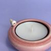 Fyrfadsstagen er hånddrejet i stentøjsler og dekoreret med glasur. Rummer et stort fyrfadslys.