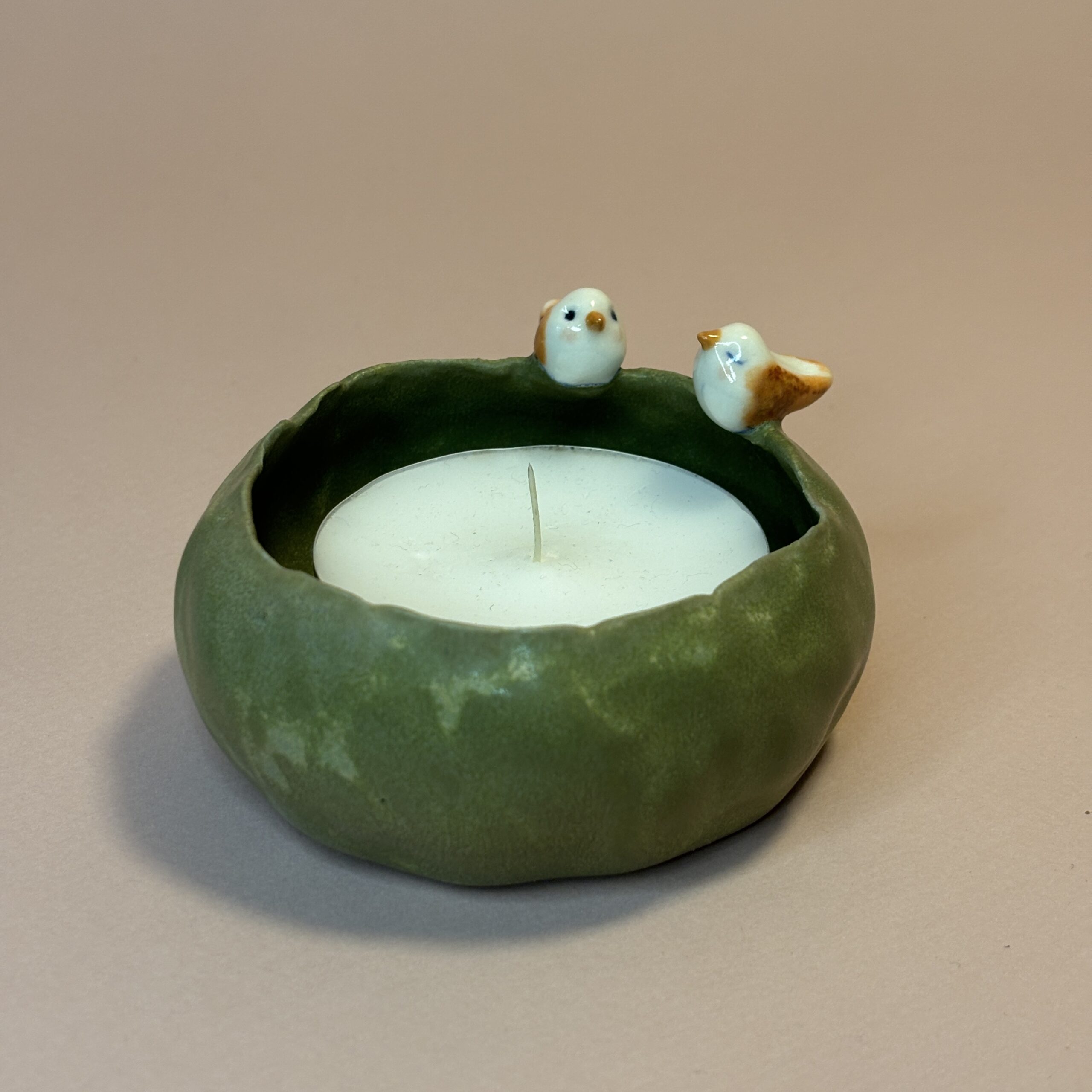 Elegant keramikskål med små fugle, der bringer lyset ind i dit hjem. Lad fuglene i stilhed vogte over lysets flamme. Lysestagen skaber øjeblikke af nærvær og hygge ved spisebordet, i vindueskarmen eller som en smuk detalje på en stak bøger. Perfekt som stemningsskaber på mørke aftener eller som en meningsfuld gave, der symboliserer lys og nærvær.