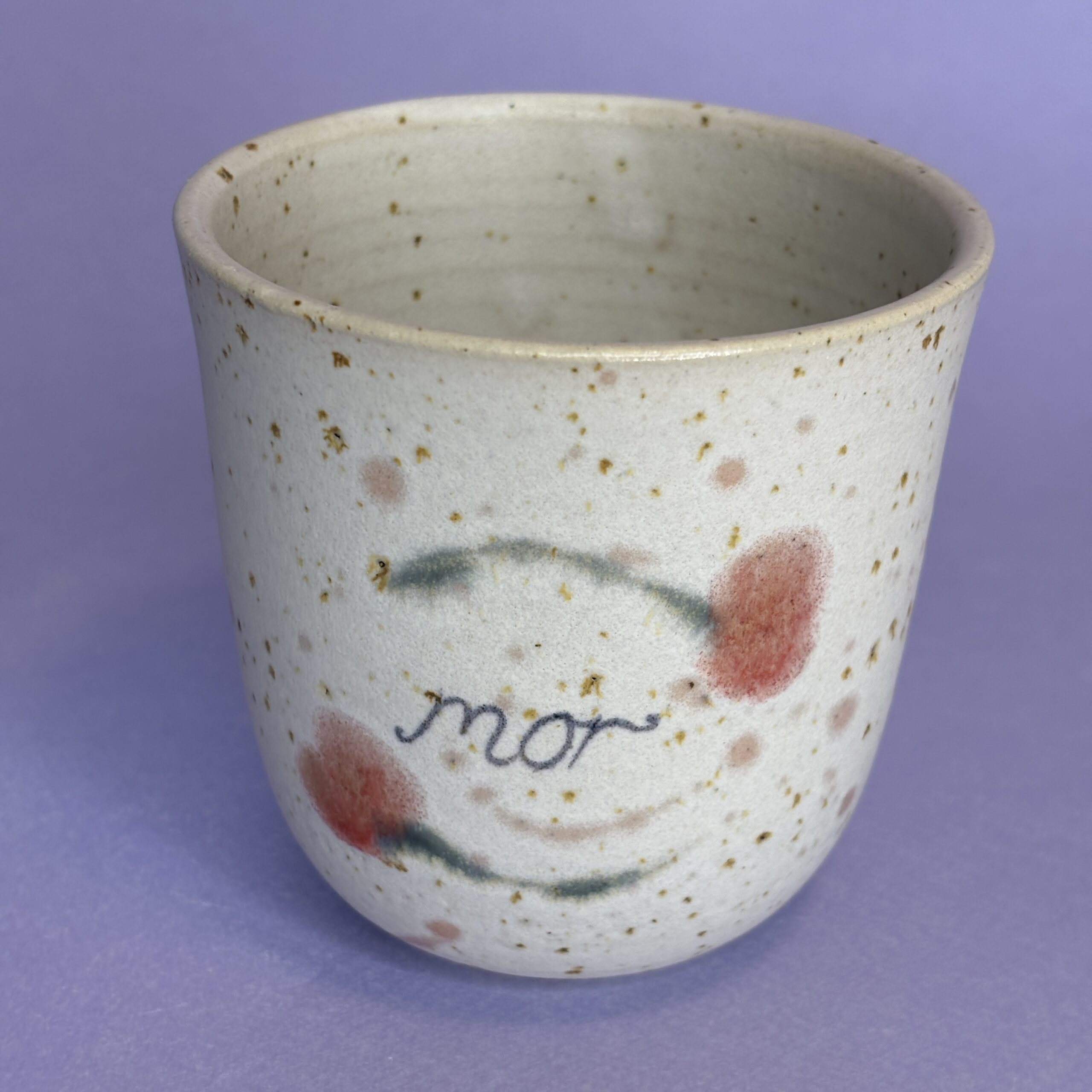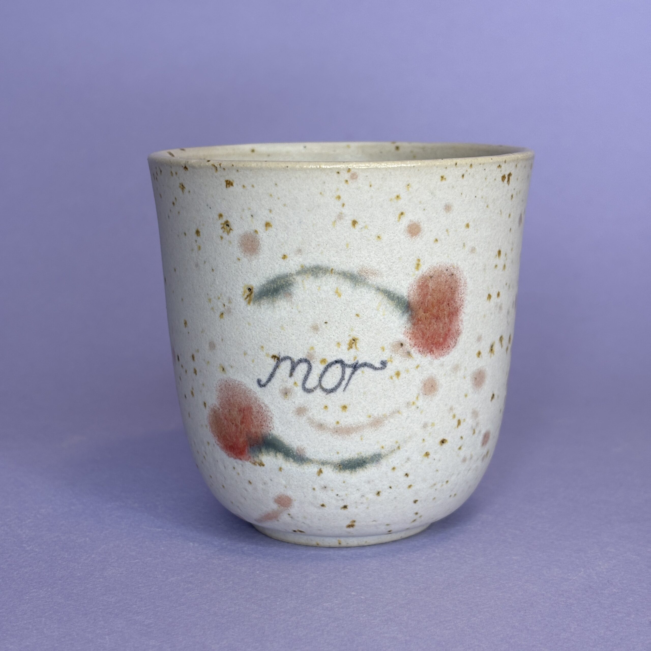 Koppen er drejet i stentøjsler og dekoreret med glasur.
