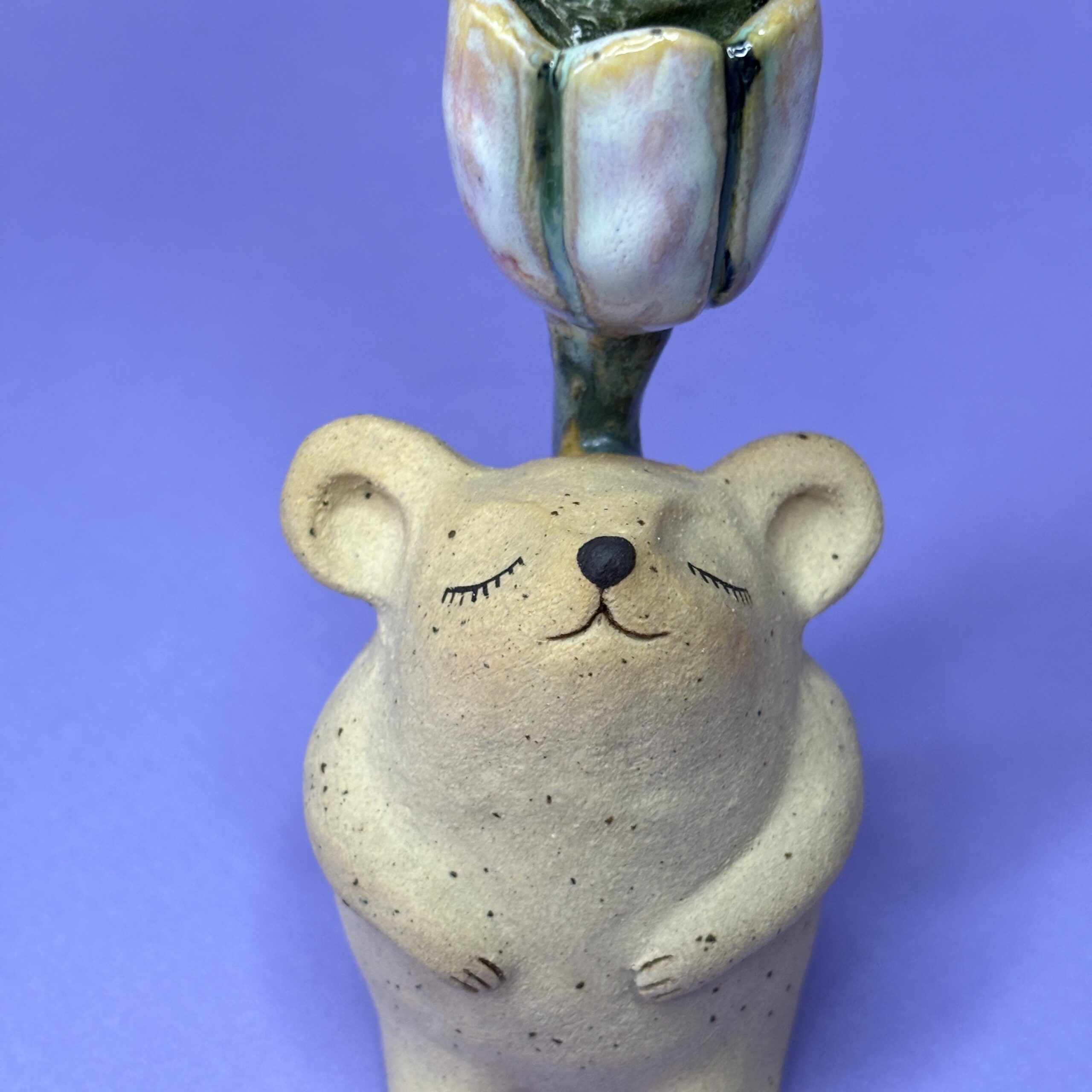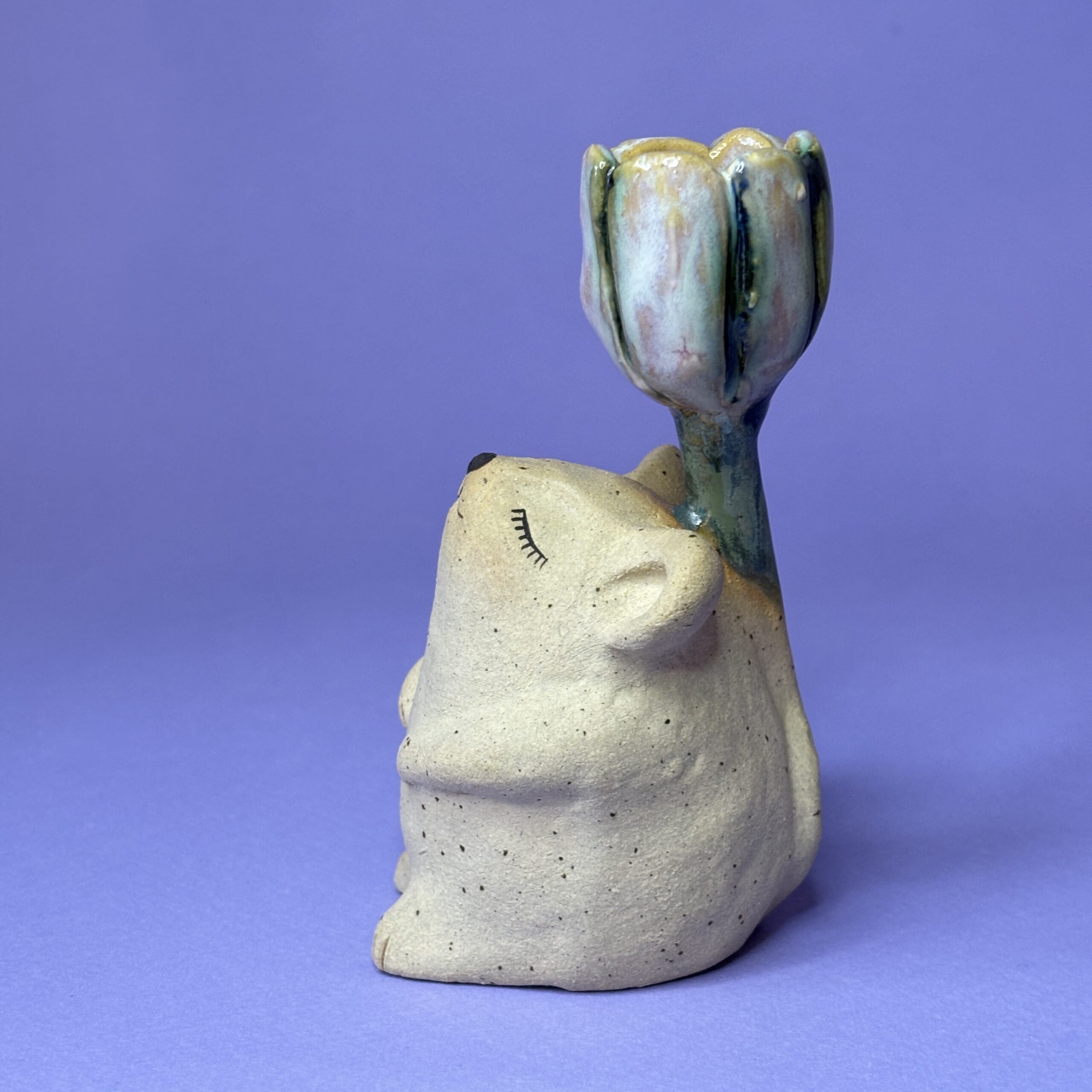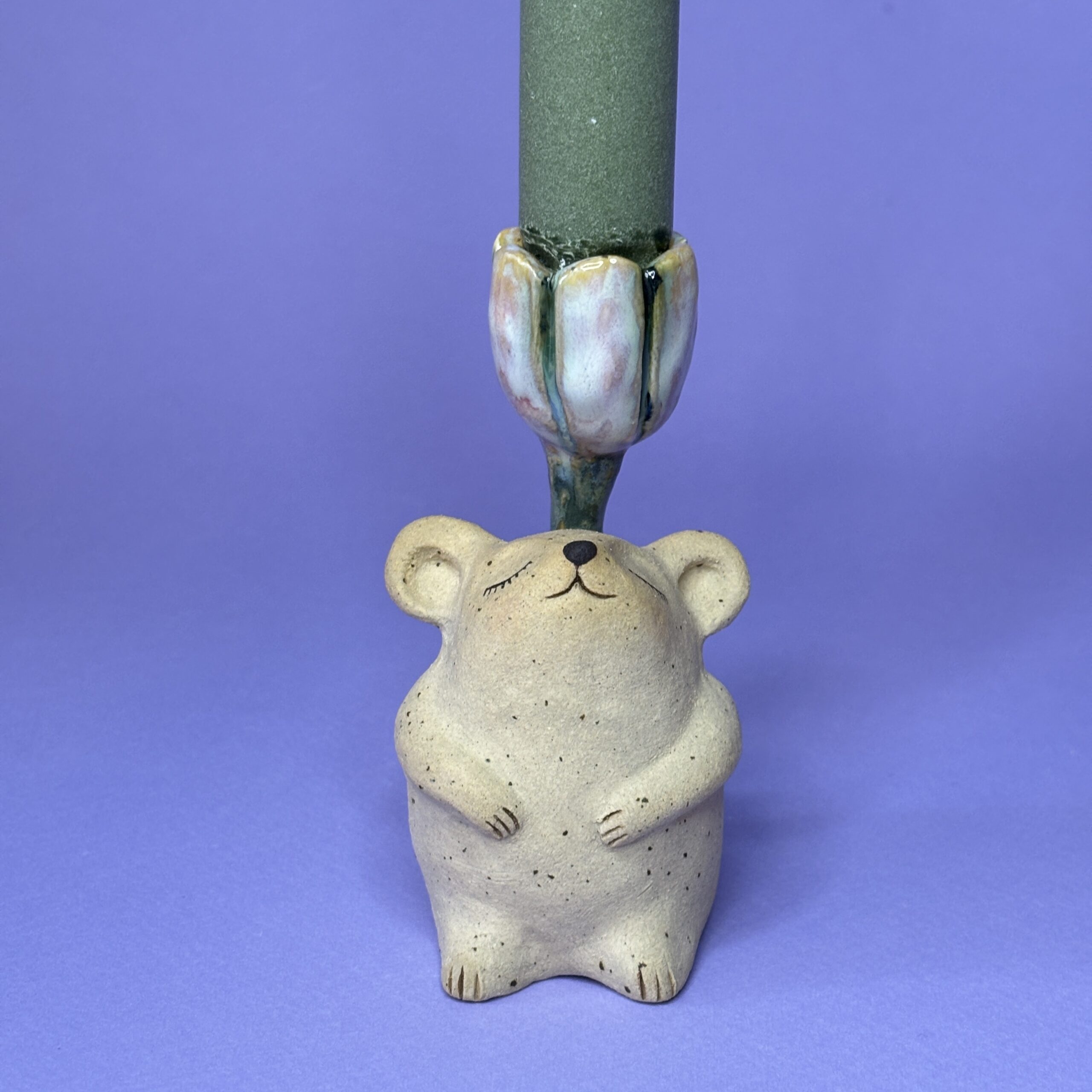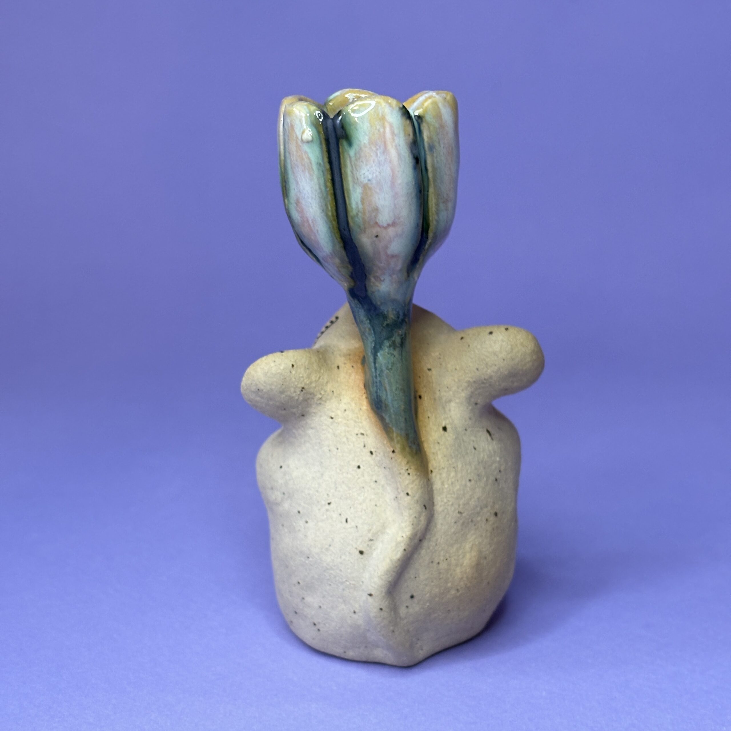 Stagen er håndlavet i stentøjsler og dekoreret med glasur.