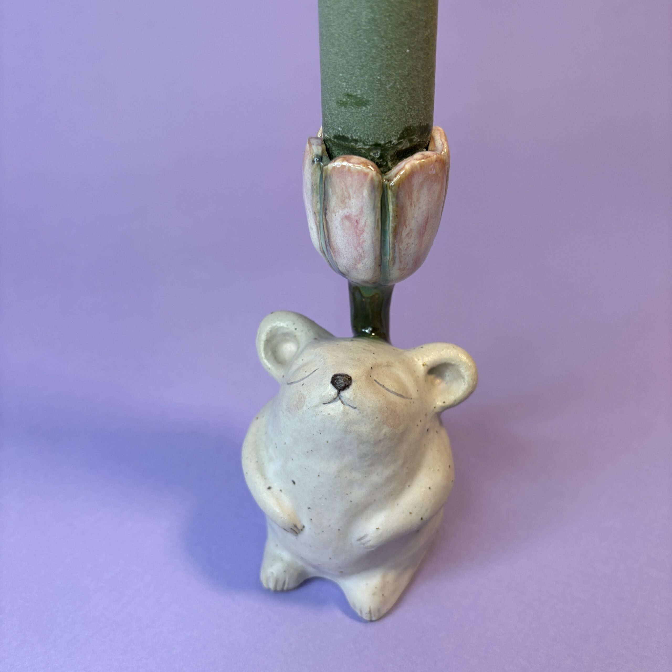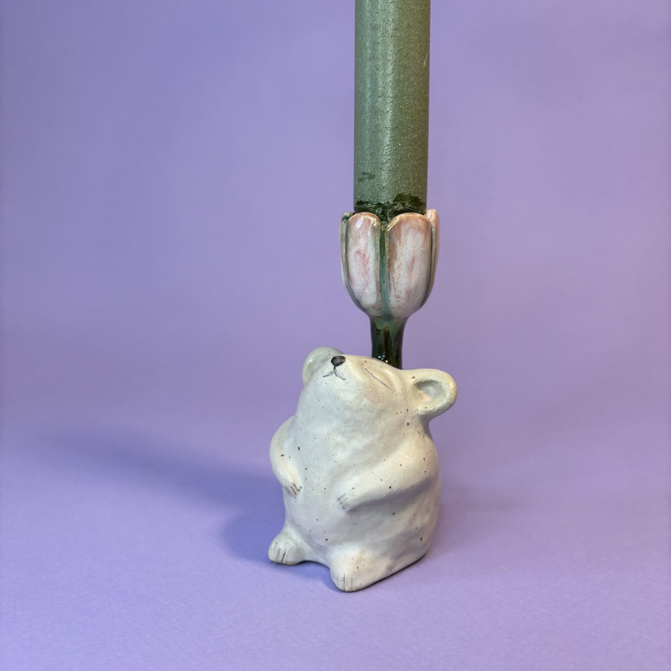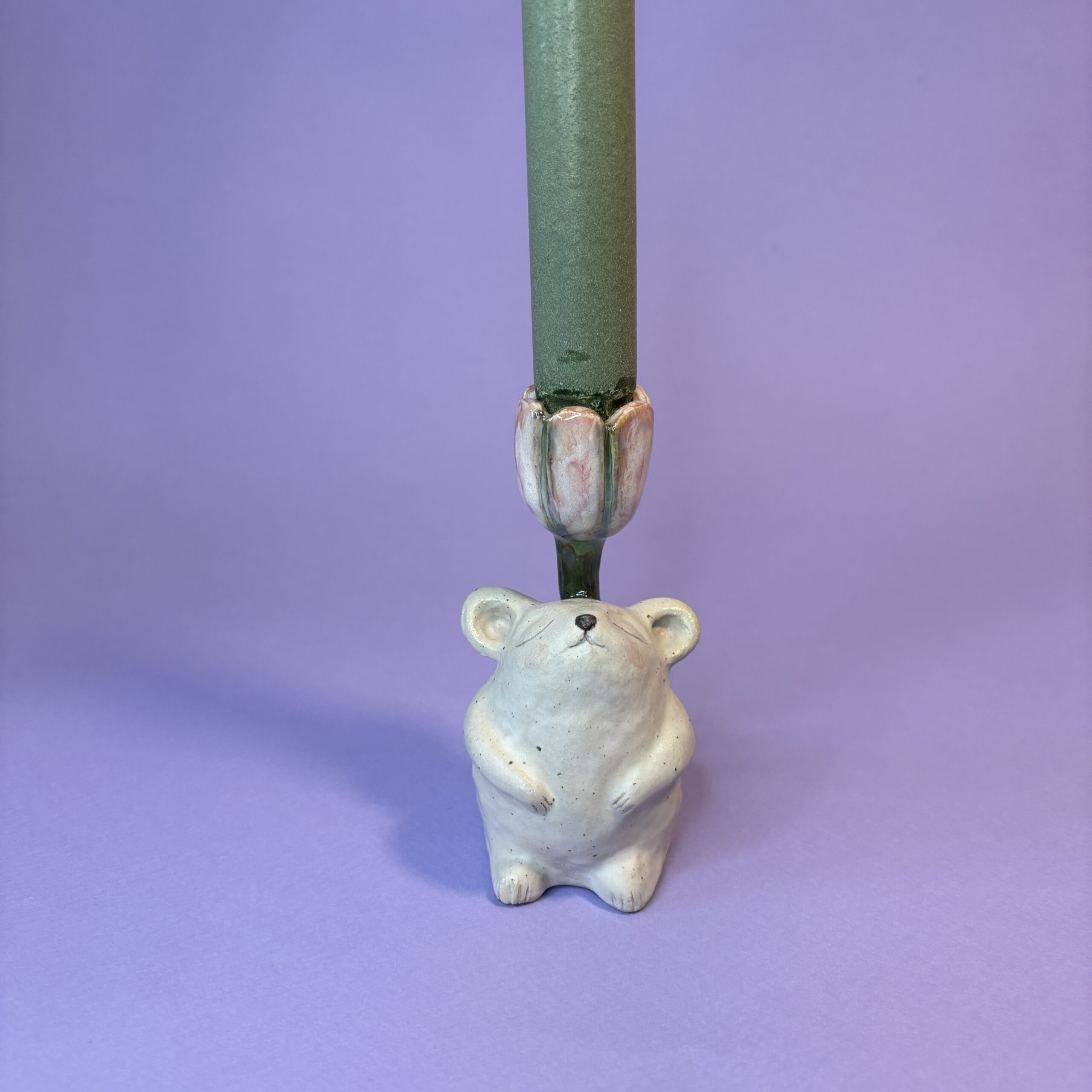 Den lille mus har søgt ly under blomsten og nyder en rolig stund i skyggen, hvor verden står lidt stille.