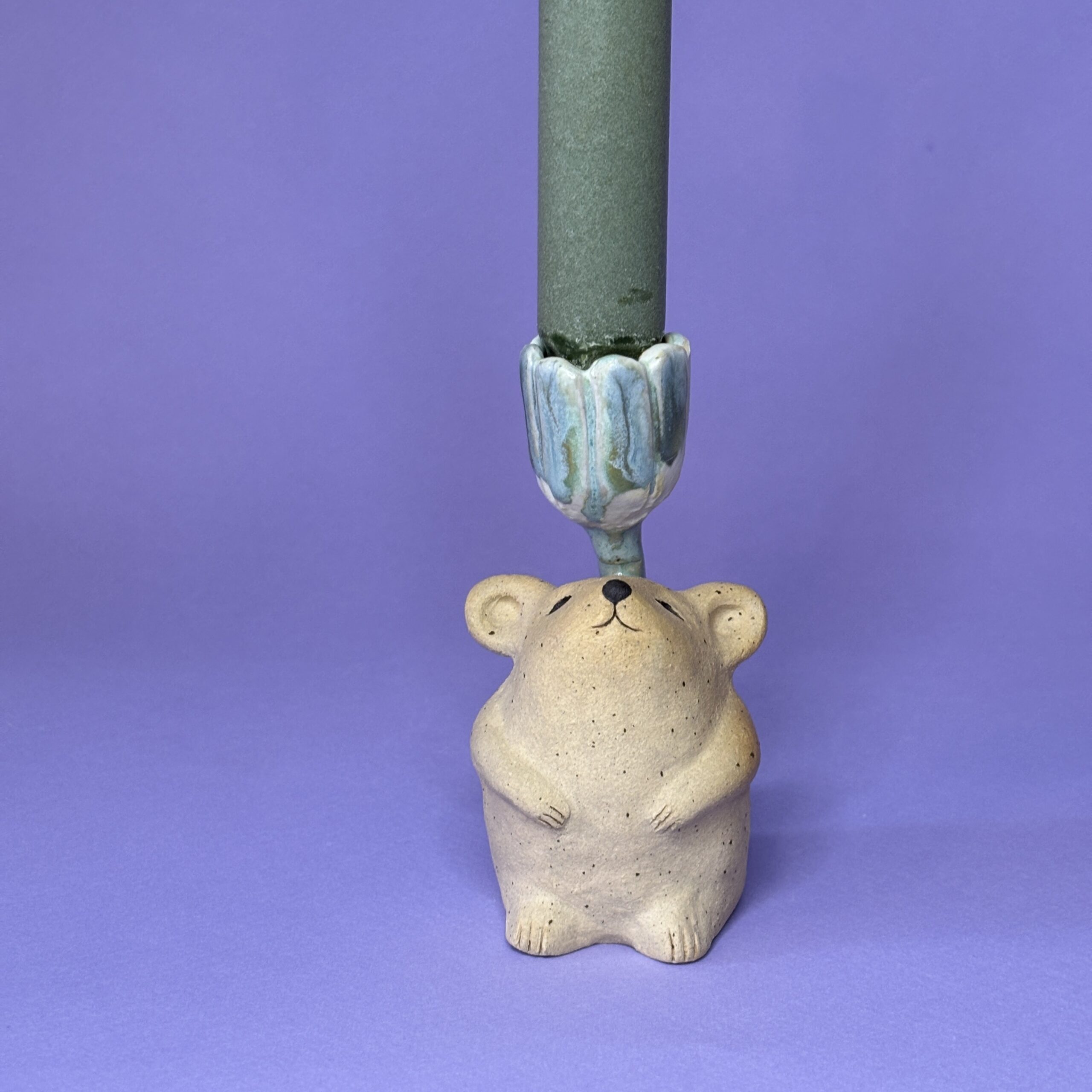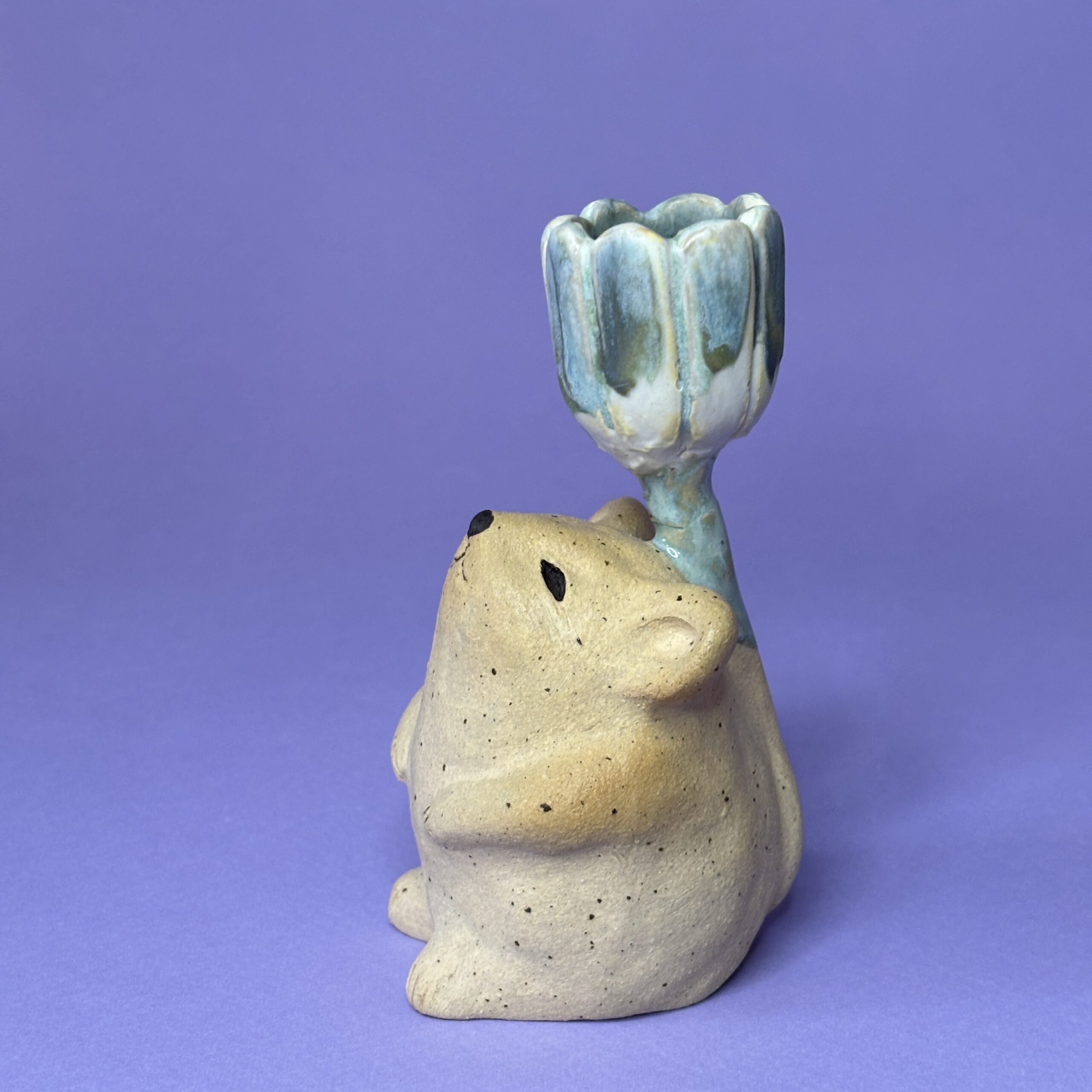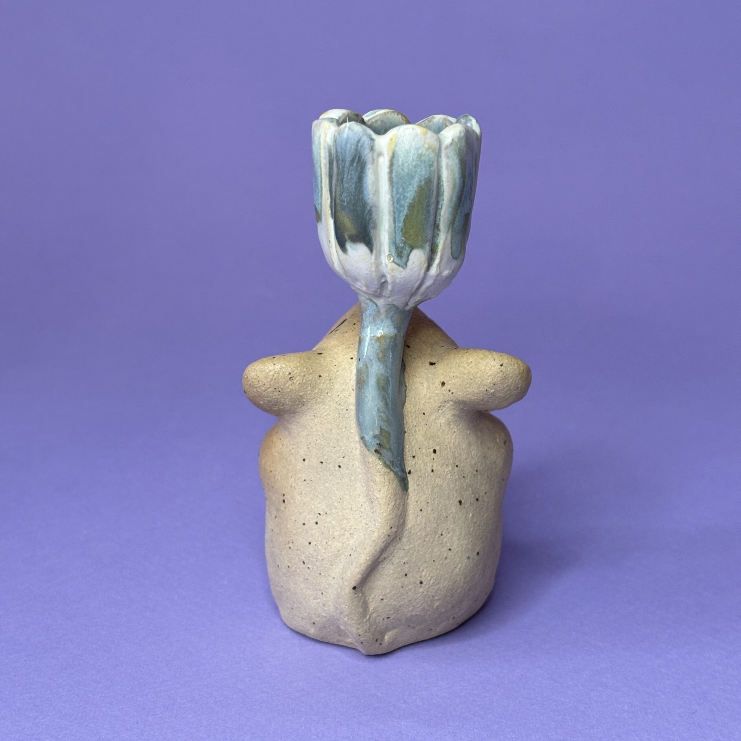 Stagen er håndlavet i stentøjsler og dekoreret med glasur.