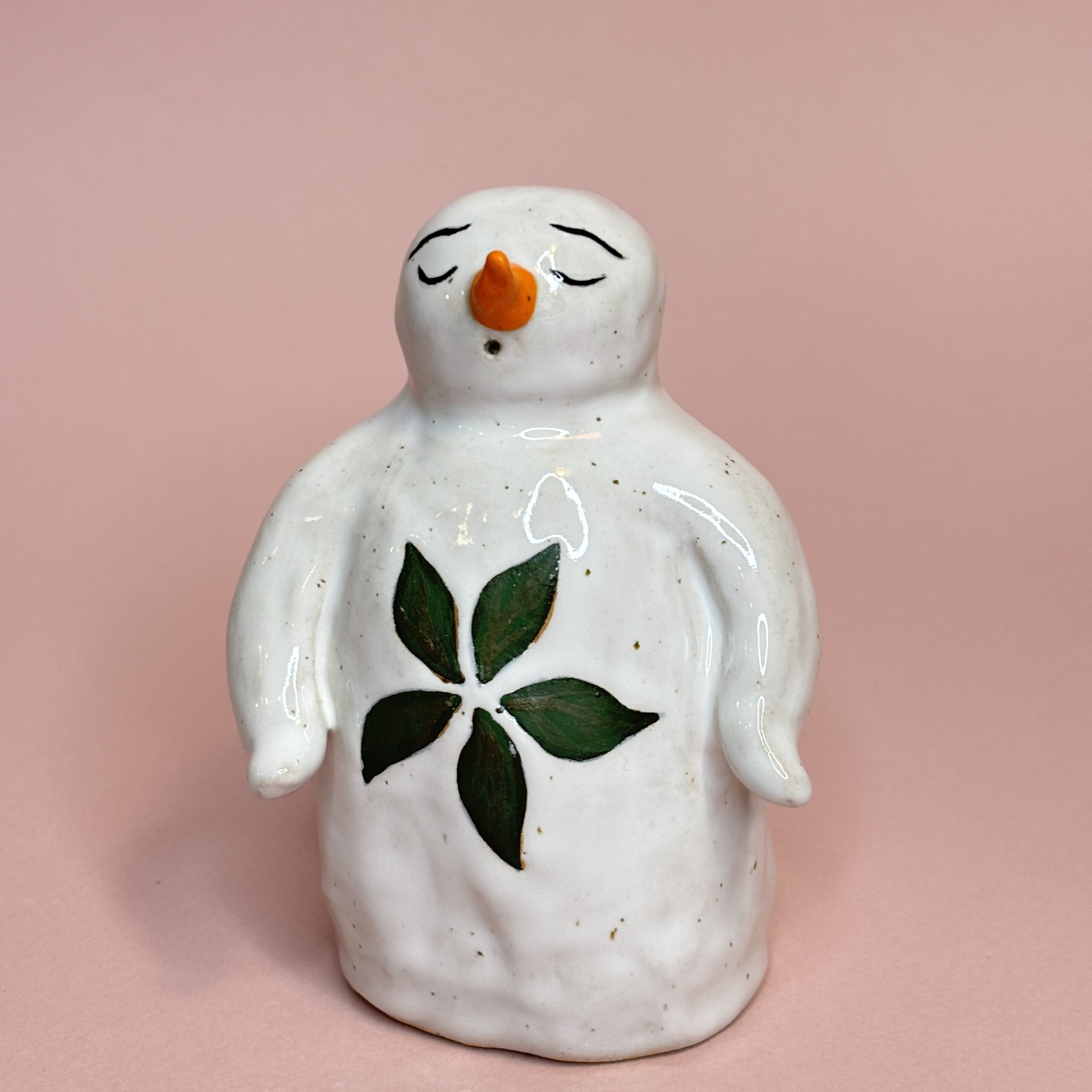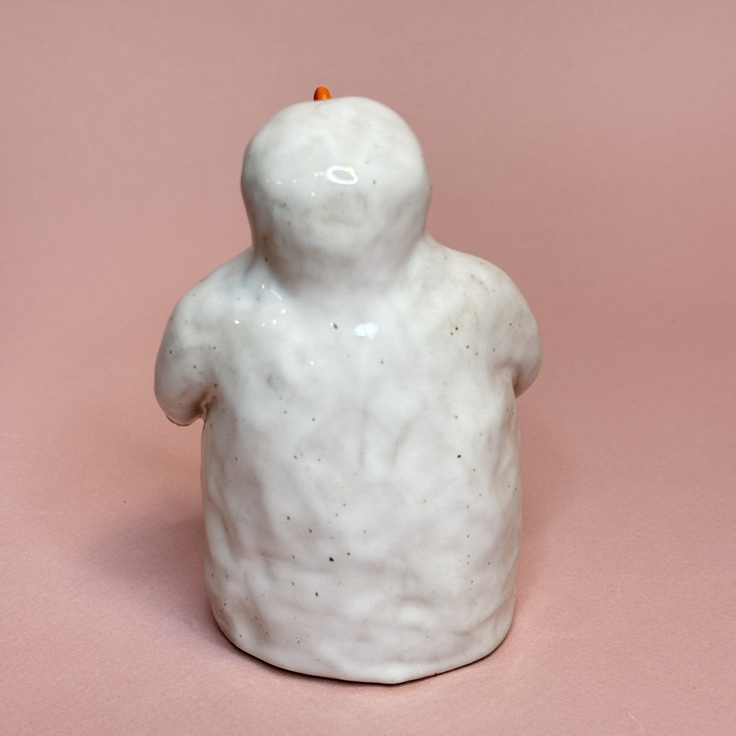 Snemanden er håndmodelleret i stentøjsler og dekoreret med glasur.