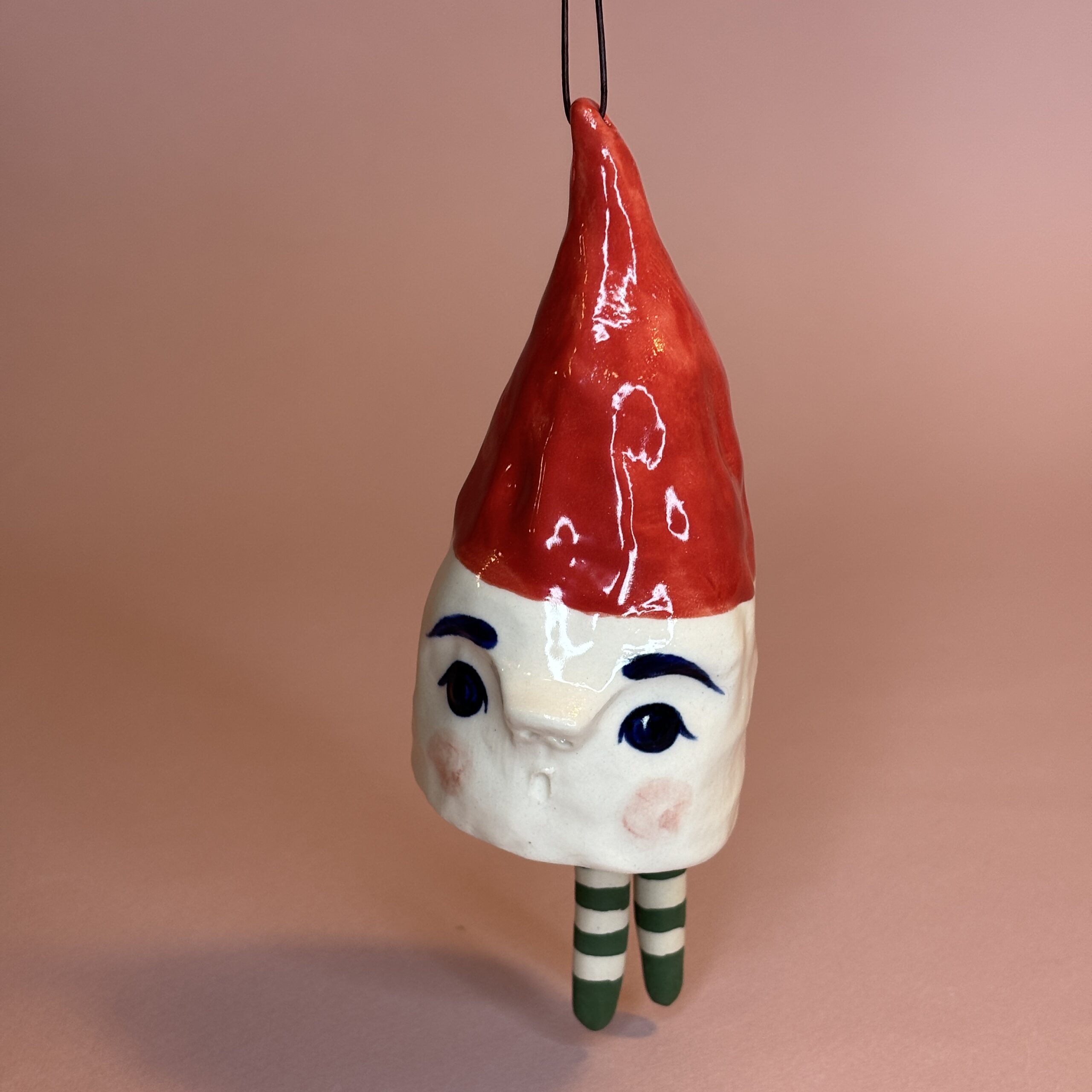 Klokken er håndmodelleret i stentøjsler og dekoreret med glasur. Nissen kan hænges på juletræet, i vinduet, på væggen, en knage eller lign., men kan også pynte på julebordet eller en hylde.