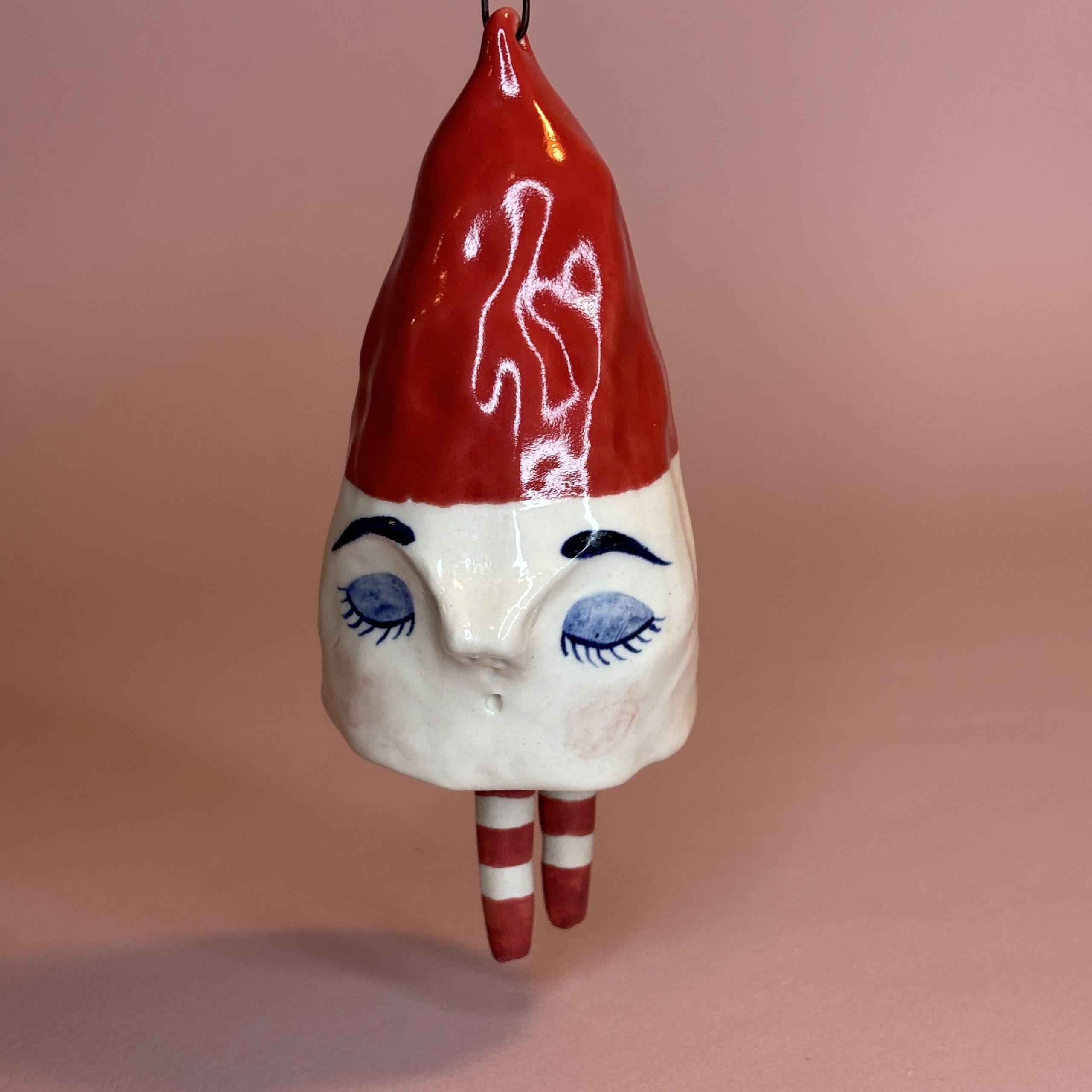 Klokken er håndmodelleret i stentøjsler og dekoreret med glasur. Nissen kan hænges på juletræet, i vinduet, på væggen, en knage eller lign., men kan også pynte på julebordet eller en hylde.