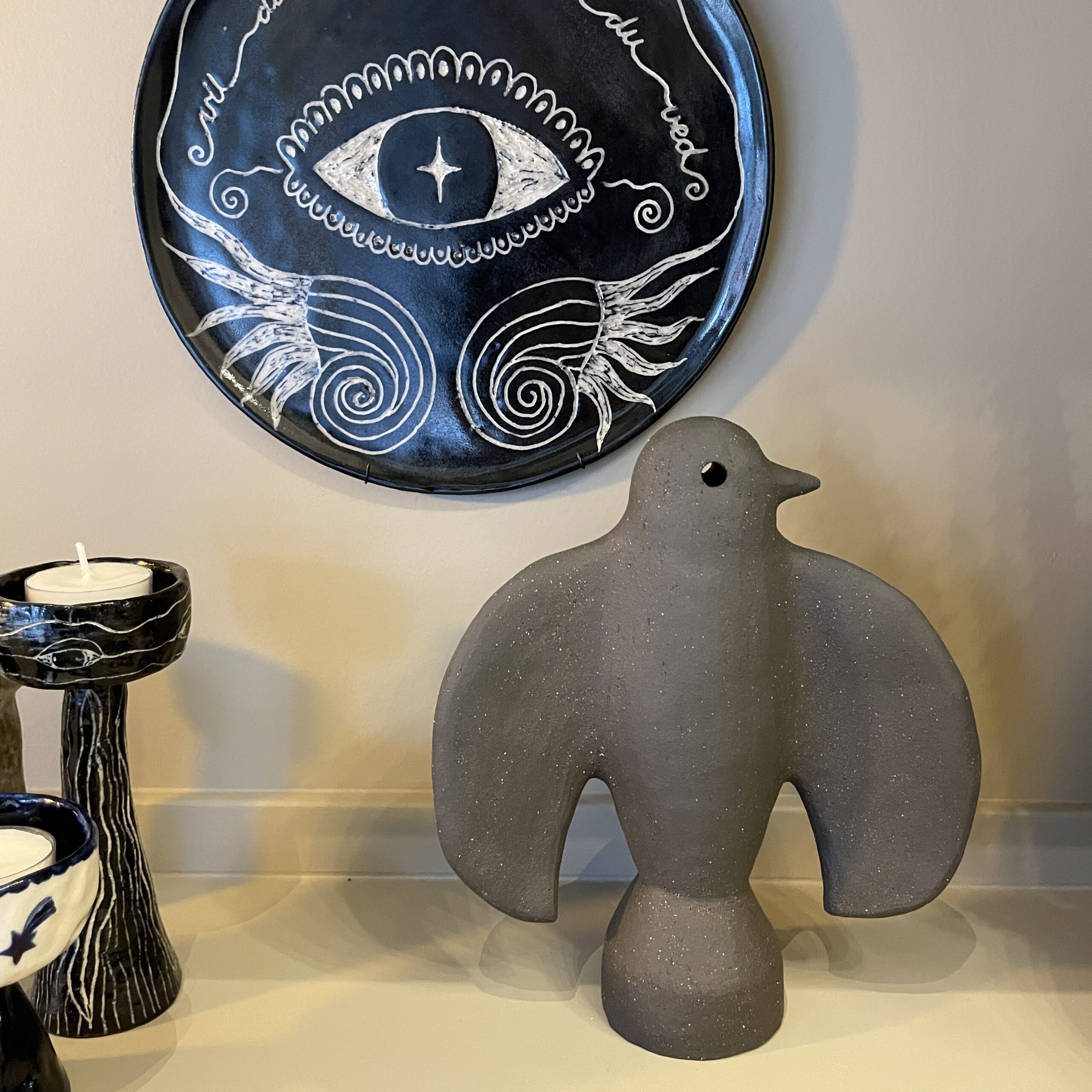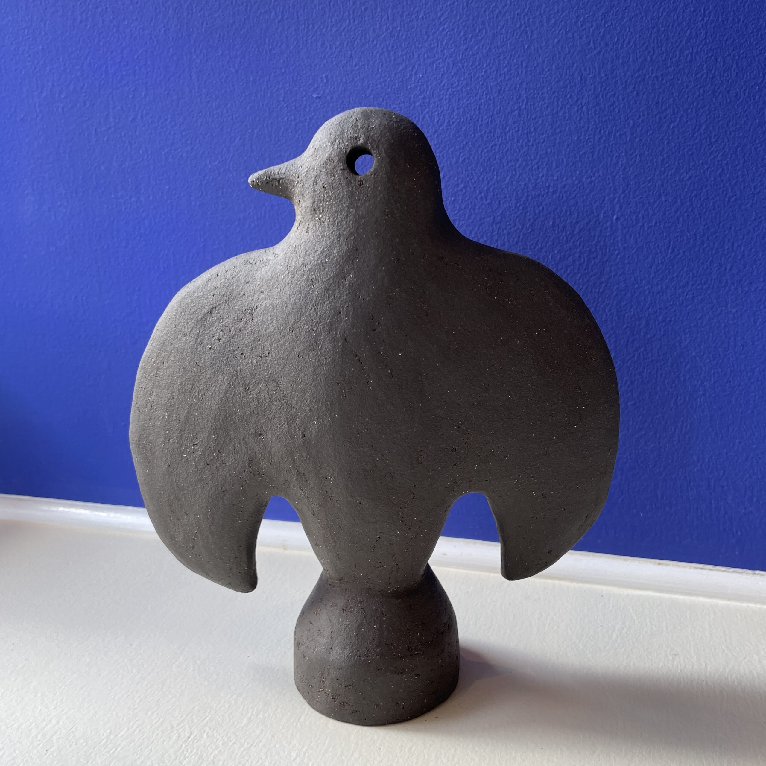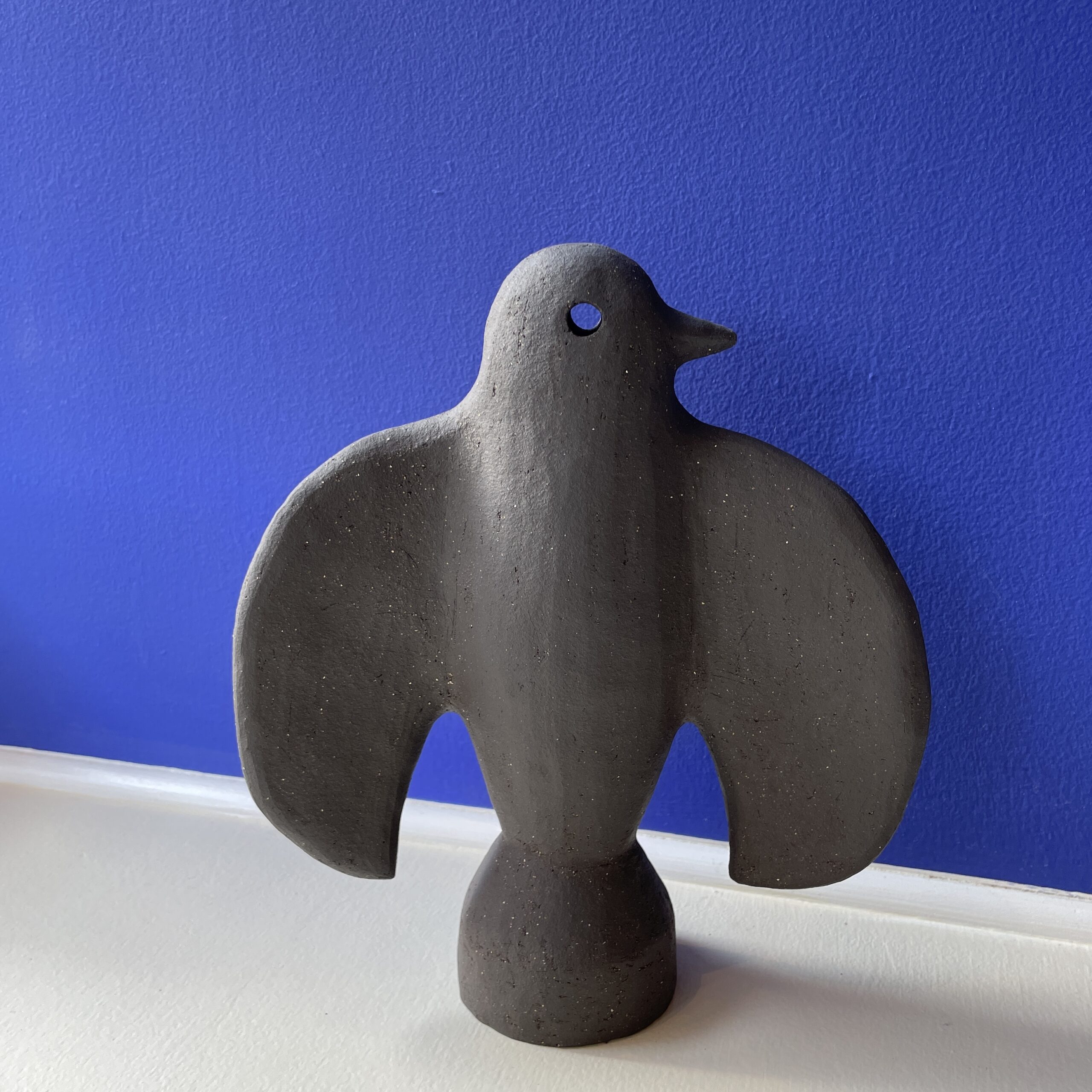 Figuren er lavet af sort stentøjsler. Hovedet er bevægeligt.