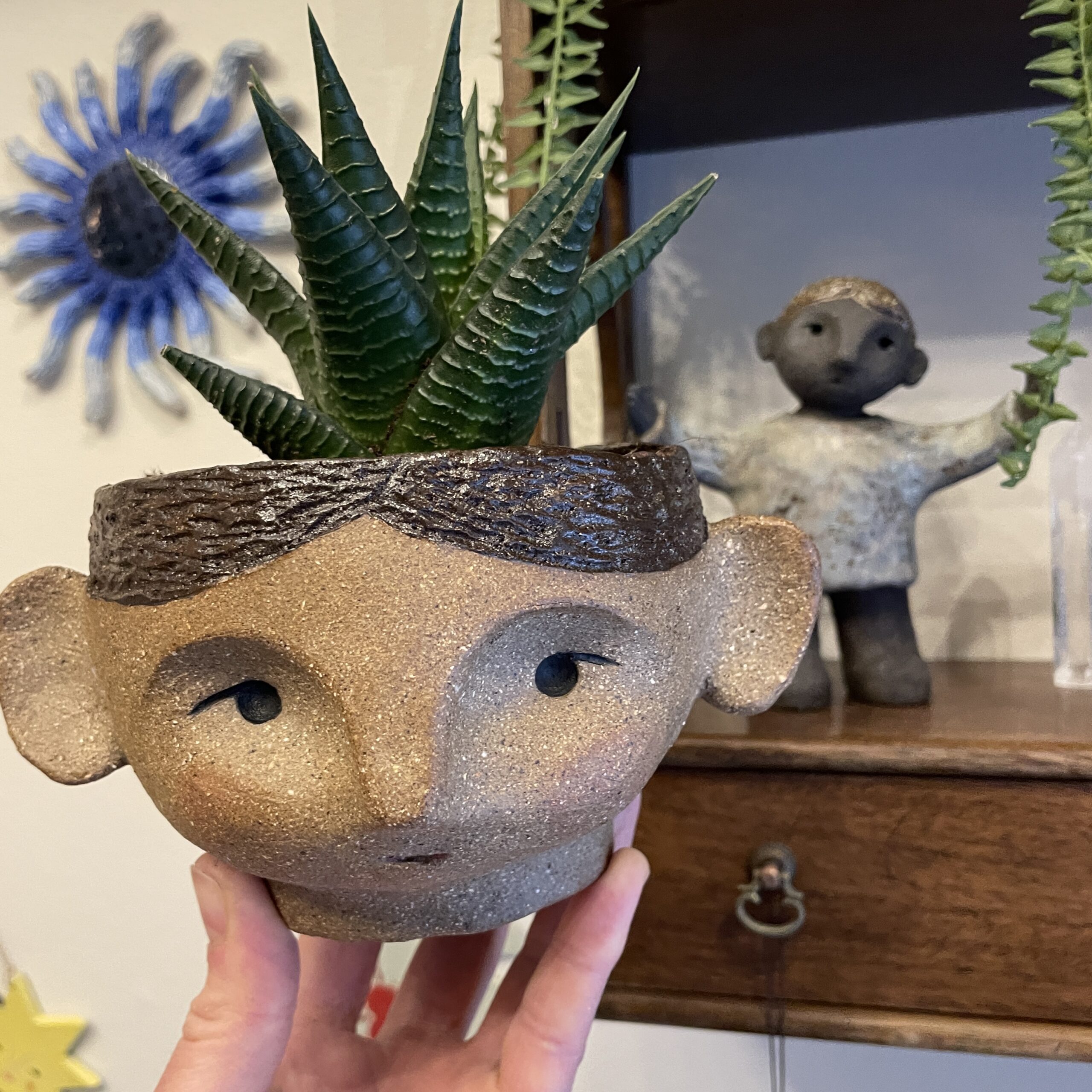 Potte med udtryksfuldt ansigt.