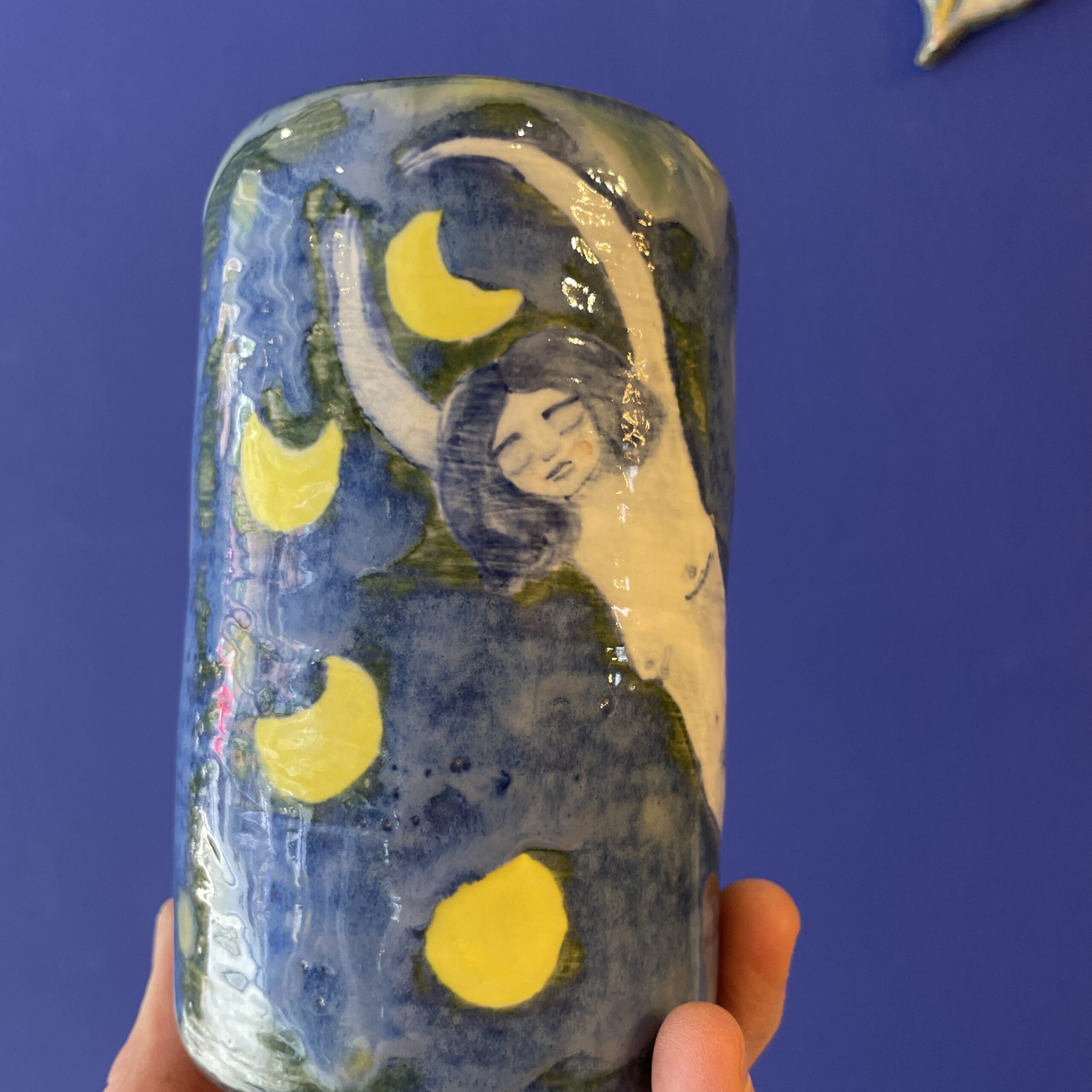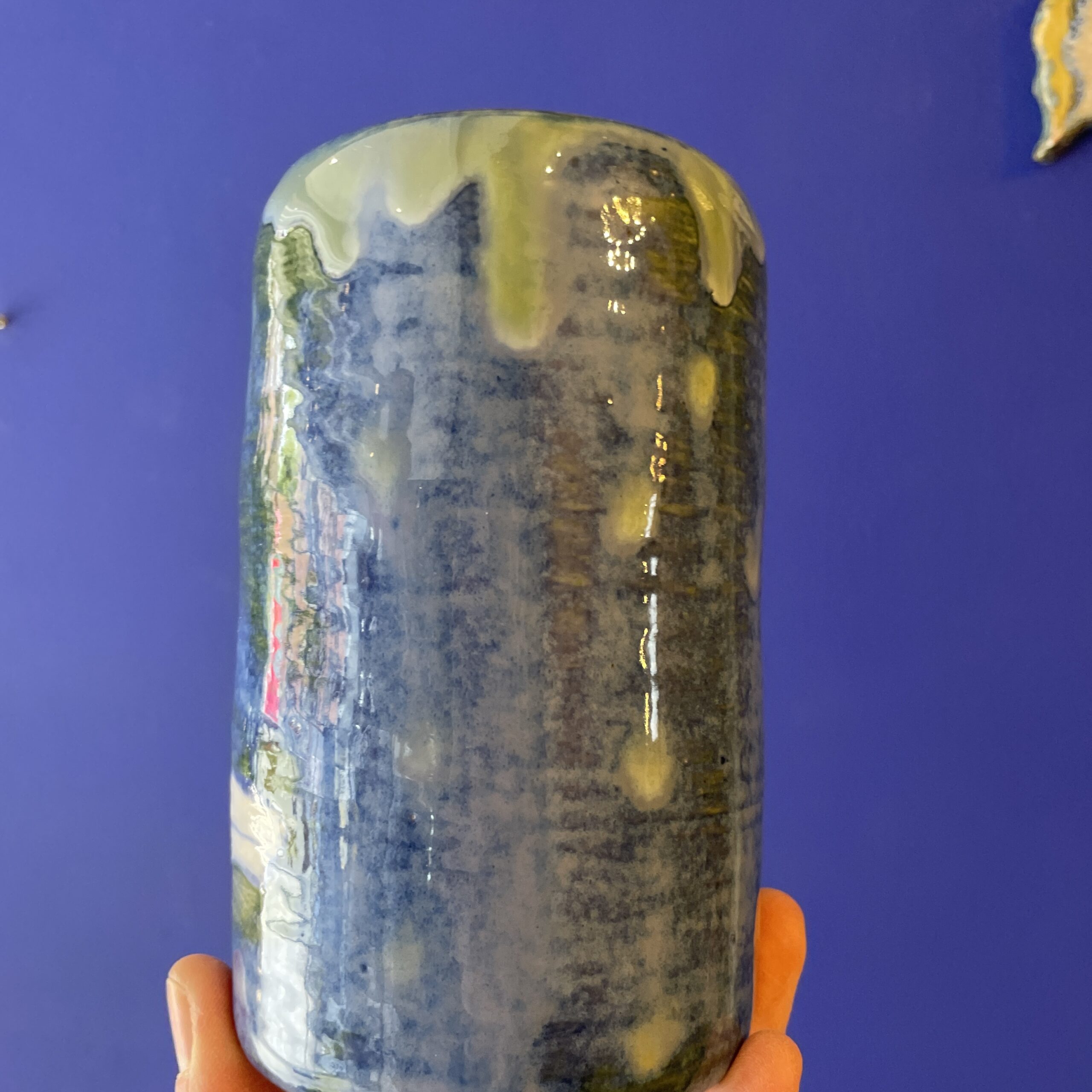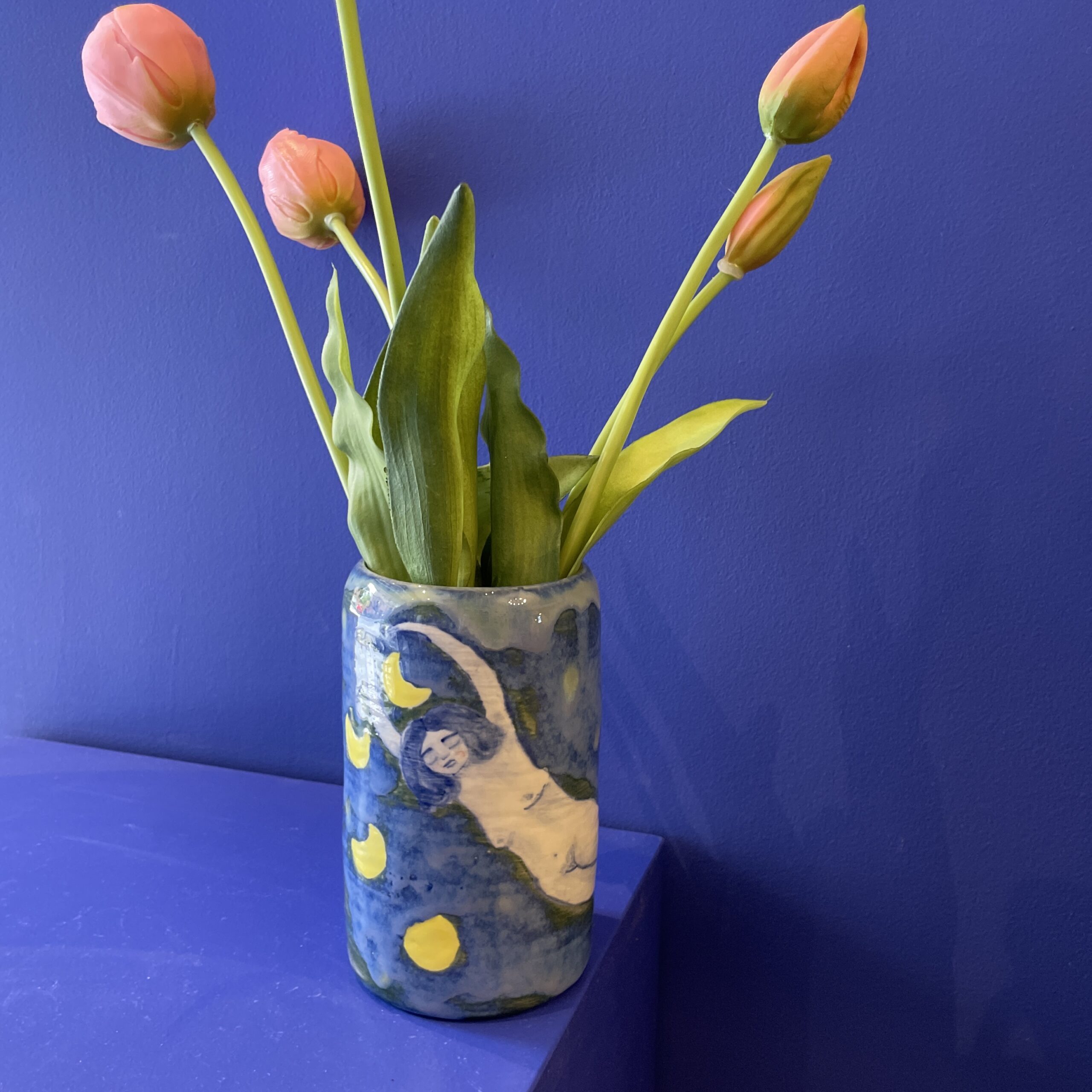 Vasen er lavet i stentøjsler og dekoreret med glasur.
