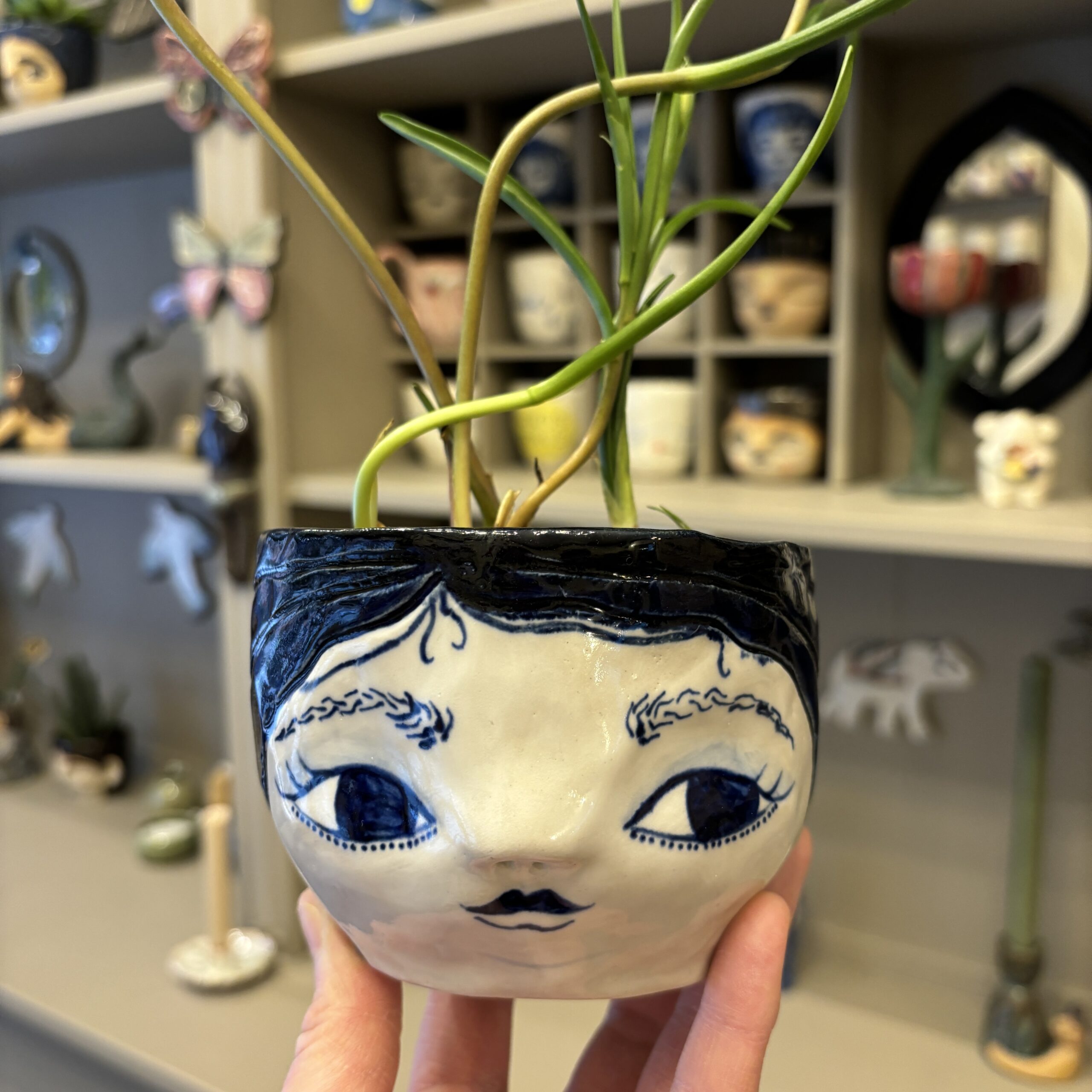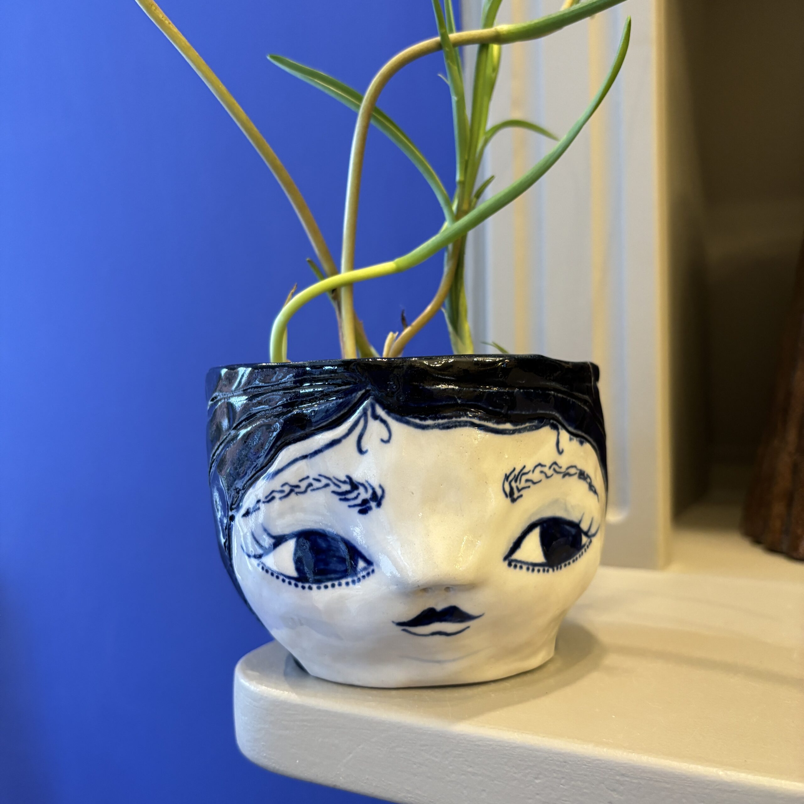 Ansigtspotte med et nysgerrigt blik – skaber hygge og stemning i hjemmet.